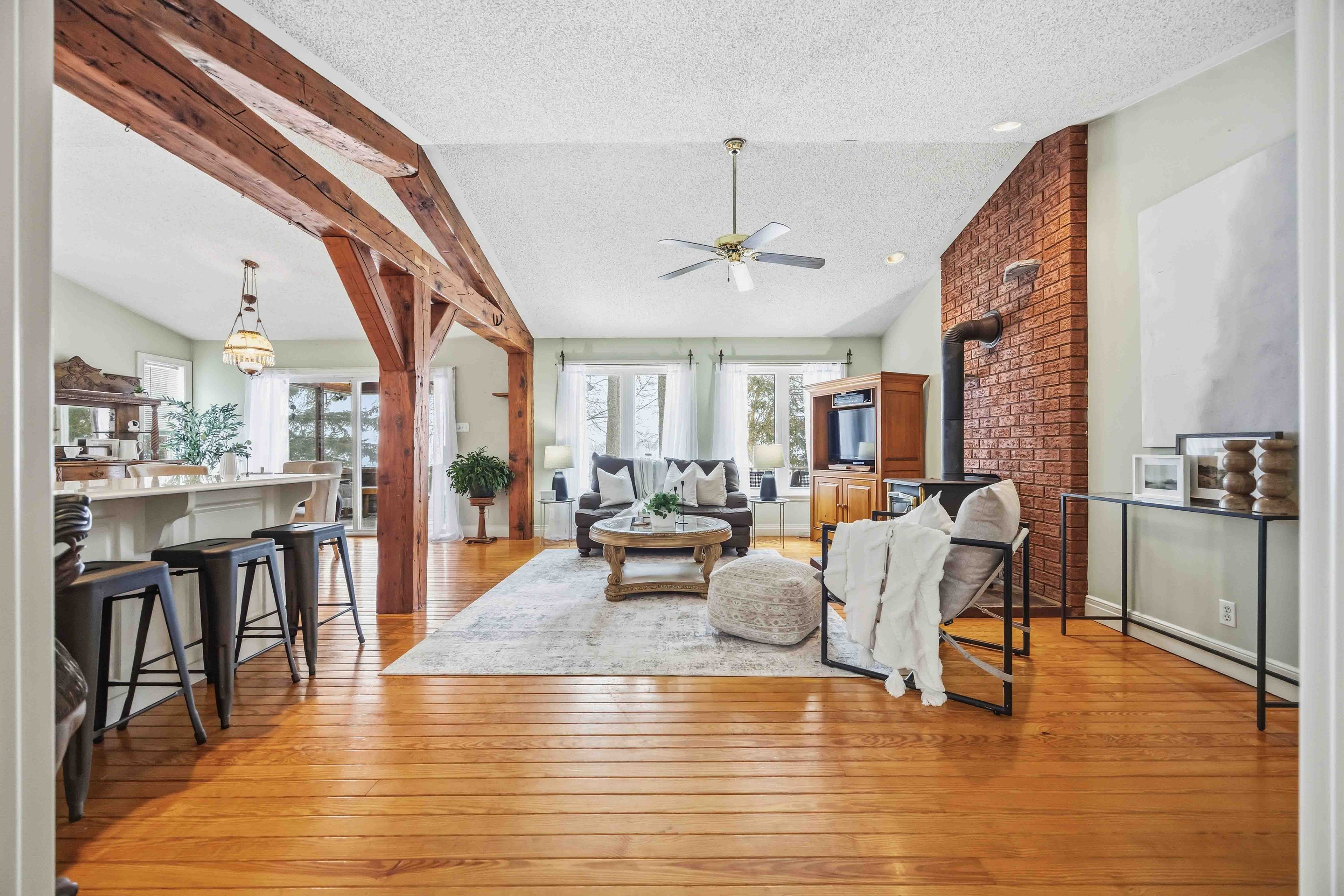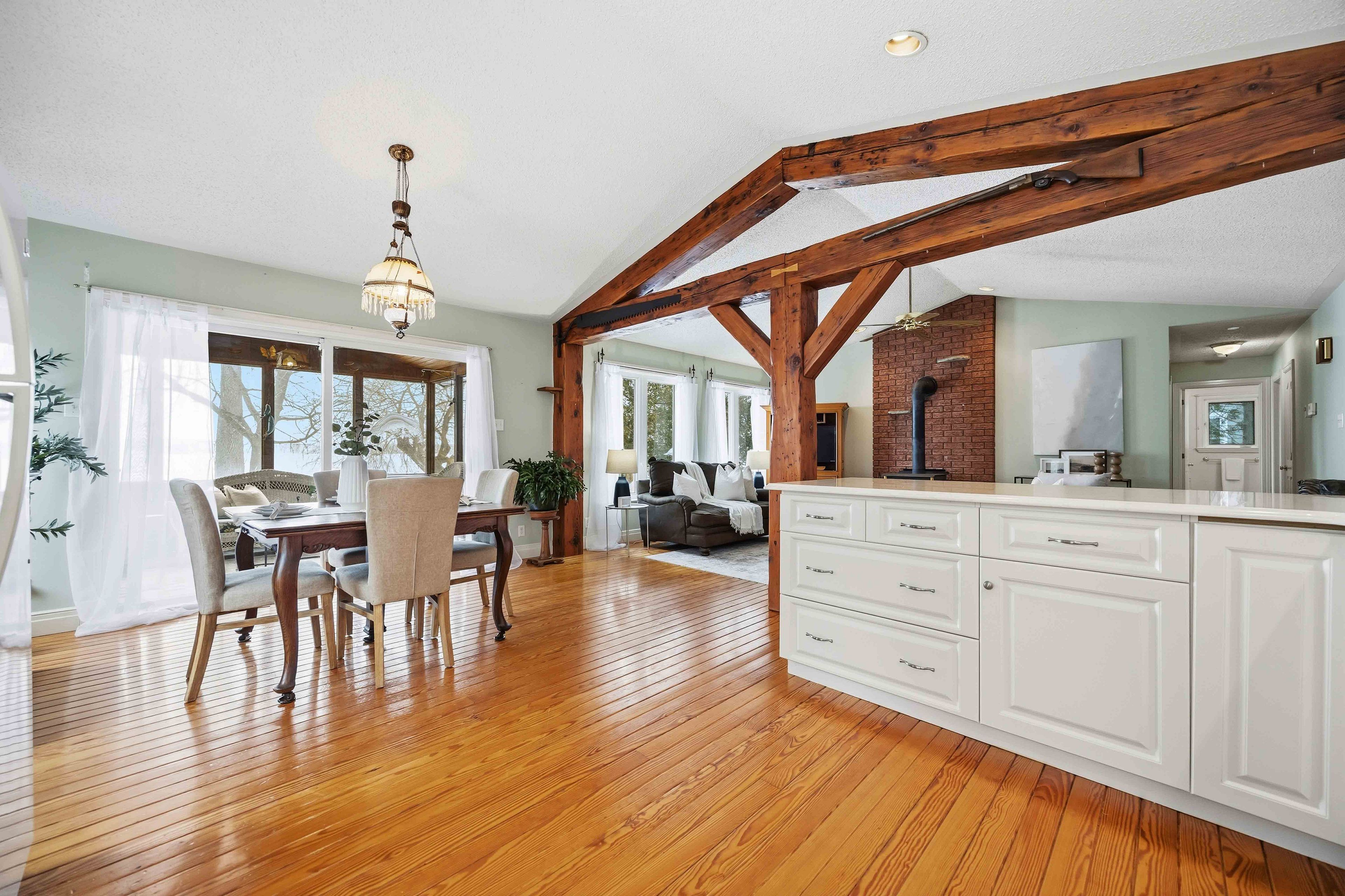 Waterfront living can be yours! Wake up to sparkling water views, spend long summer days out on the lake with family and friends, and enjoy peaceful winter mornings curled up by the wood stove. This rare find on the east shores of lake scugog offers a lifestyle that feels like a year-round retreat. Inside, you're greeted by a bright, inviting open-concept layout starting from the spacious foyer that leads into the large great room, kitchen, and dining area. Vaulted ceilings, hardwood floors, and picture-perfect water views create a warm, airy space ideal for family gatherings, everyday living, and entertaining guests. The dining area flows naturally into the screened-in sunroom, a welcoming spot for morning coffee, reading, or simply watching the world drift by on the lake. The home also features three generously sized bedrooms. The primary retreat includes his-and-hers closets and a walkout to a private deck overlooking the water - the perfect place to enjoy your morning coffee, take an afternoon siesta, or unwind with sunset cocktails. A large main bathroom sits just steps from the primary suite, and the laundry room off the foyer with direct access to the double garage makes daily living easy and convenient. The location is exceptional - just 20 minutes to port perry or lindsay, and 30 minutes to the 407, offering the perfect blend of quiet country waterfront living with easy city access for commuters or weekend outings. Whether you're entertaining friends, pursuing hobbies, or simply relaxing by the water, this property invites you to slow down, savour the scenery, and create memories that last a lifetime. Property is legally described as two separate lots - one on each side of the private laneway - each with waterfront. Lot with house (west side): 100 ft x 145 ft and lot with workshop and well (east side): 100 ft x 102 ft