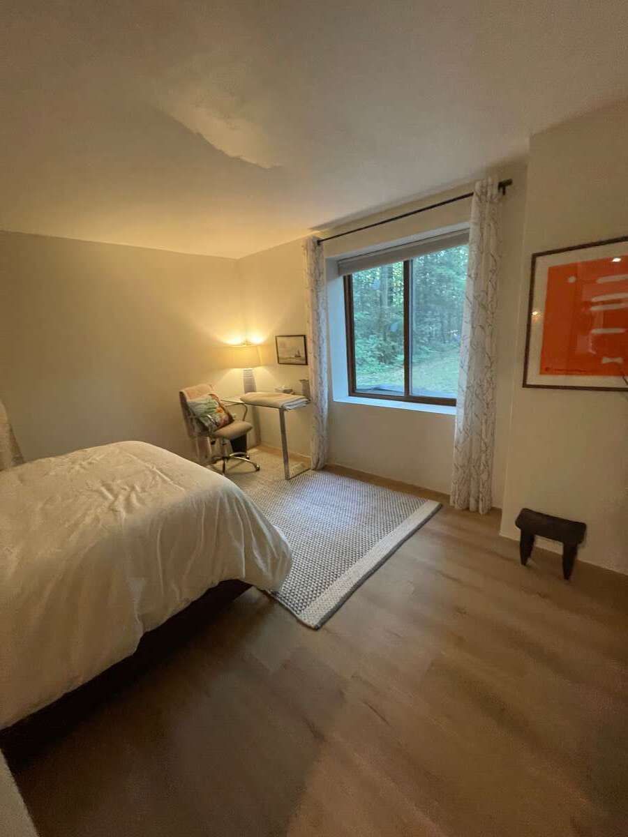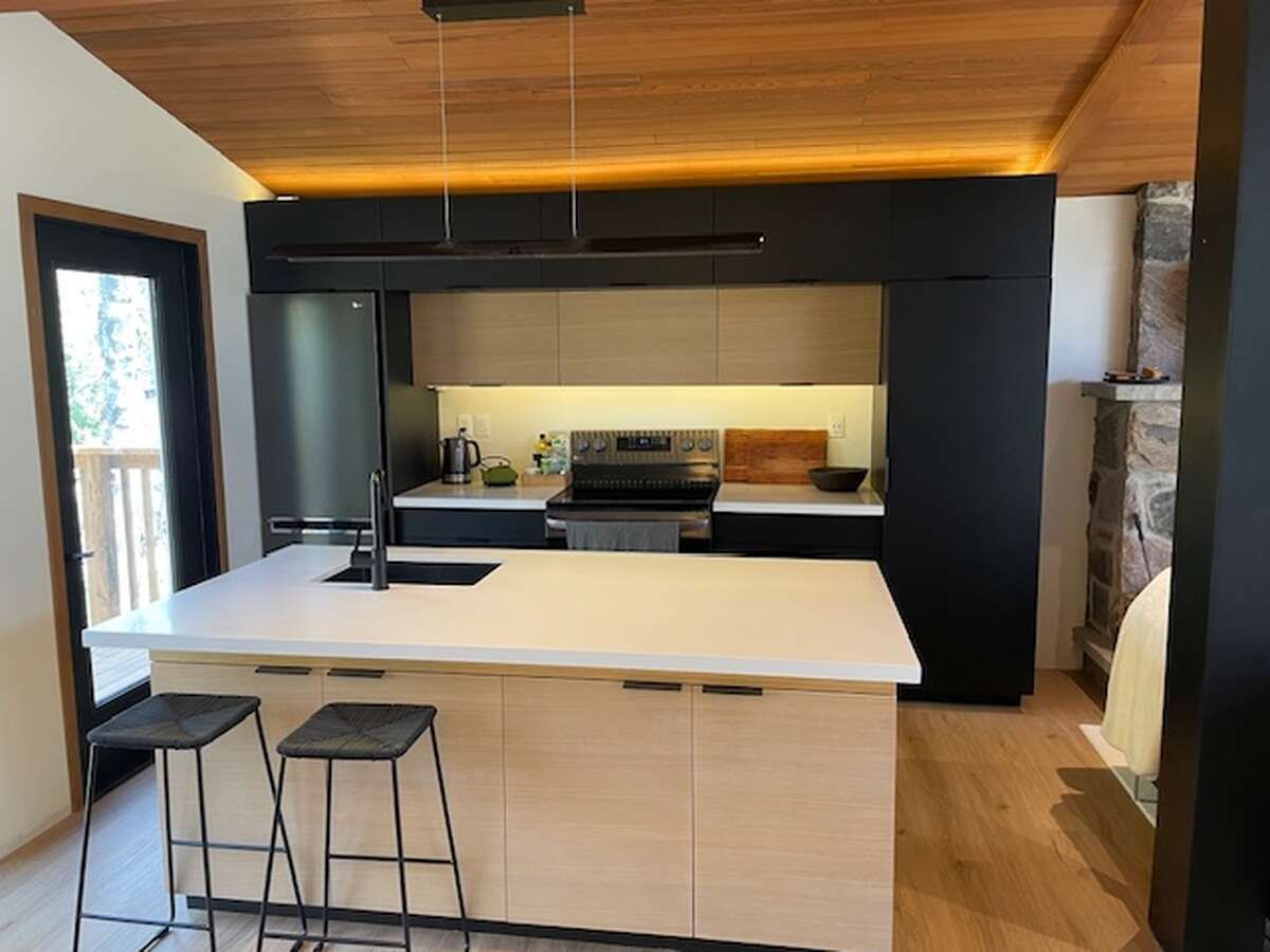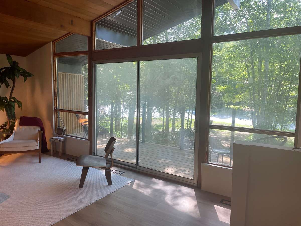 For more info on this property, please click the brochure button. Welcome to this mid-century modern four-season home, just a short walk from the sandy shores of wasaga beach. Nestled on a quiet cul-de-sac and surrounded by mature trees, this 90' x 187' lot offers a peaceful and private setting with easy access to forest trails, biking paths, and outdoor recreation. This property is ideal for those seeking a full-time residence, a tranquil weekend retreat, or a high-end investment opportunity. This fully renovated property blends original charm with thoughtful upgrades. The interior features preserved 1970s cedar ceilings (15ft high), natural materials, and clean architectural lines. Slab on grade construction. No basement. Main level: entry, office, 1 bdrm, 1 full bath with steam shower, and family room with f/p, bar/sink. Second level: kitchen/dining, living room with f/p, 2 bdrms, 1 full bath/tub and laundry. Large windows offering calming views of the trees and natural surroundings. Recent upgrades include a new steel roof (2021), 80,000 btu gas furnace (2025), central a/c (2022), updated plumbing, and full electrical rewire with new panel (2022). Kitchen and dining area feature custom cabinetry, quartz countertops and new appliances incl. Bosch extra quiet dishwasher. Private, fully treed half-acre lot includes a firepit, natural landscaping, and offers a 5 minute walk to the beach via quiet, private pathways. Designed with inspiration from japanese minimalism and scandinavian warmth, the home offers calm, curated spaces throughout, making it a rare opportunity in one of wasaga beach's most desirable locations.
