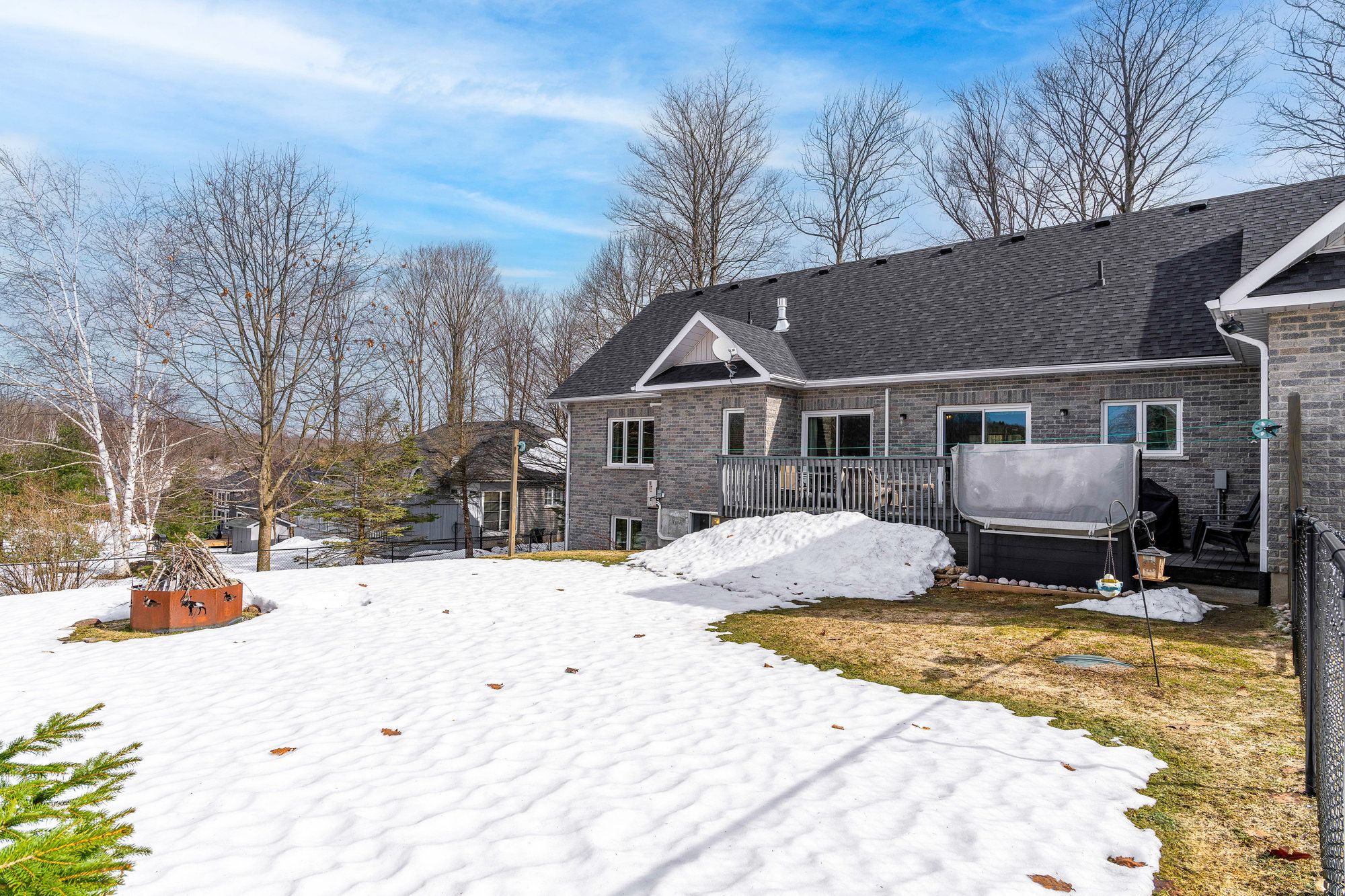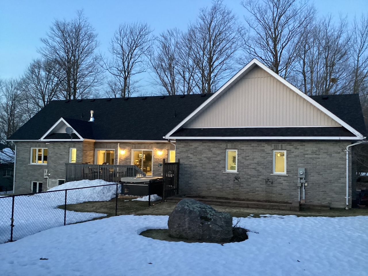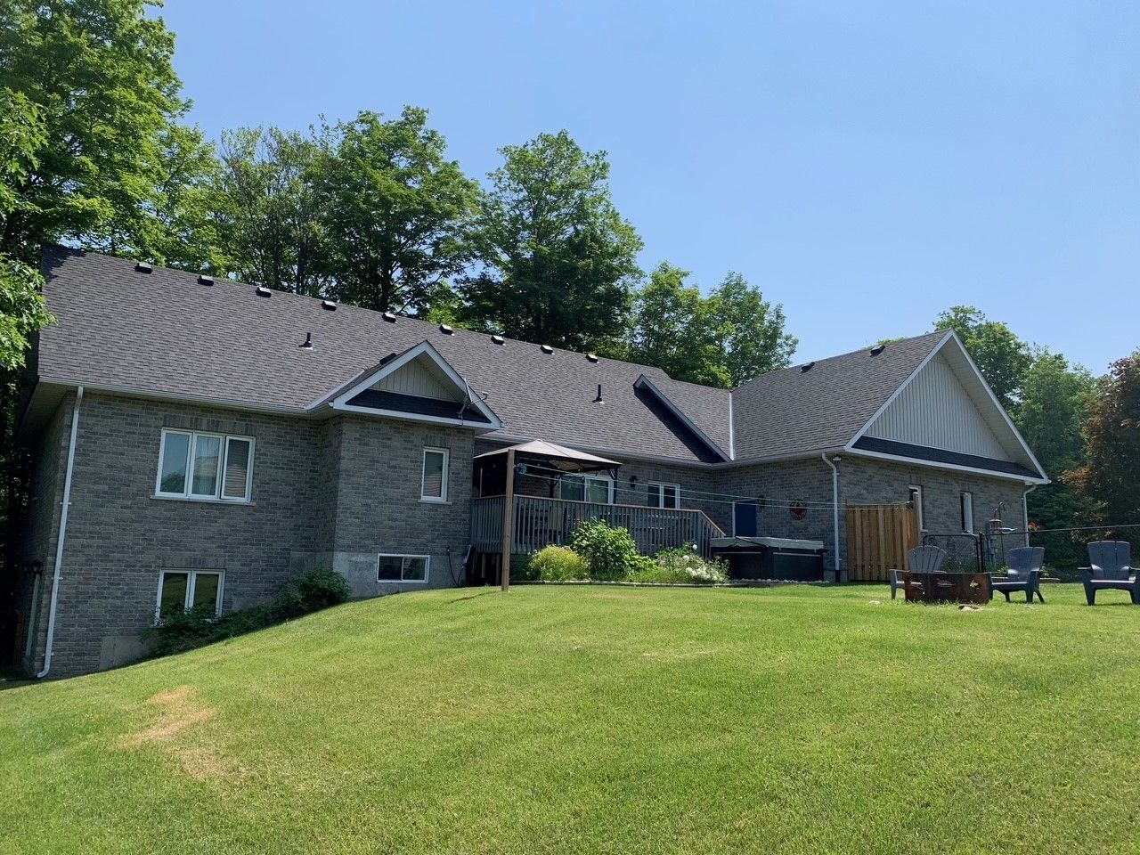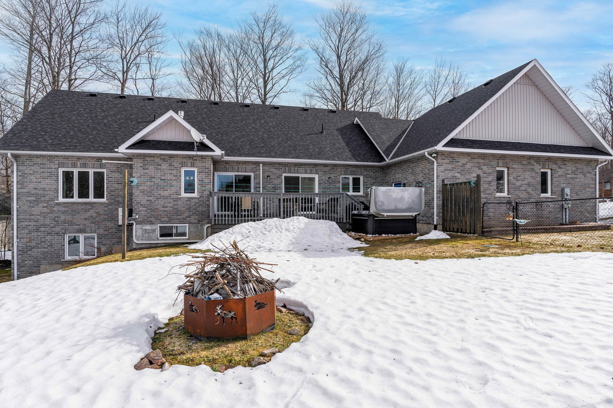 Tucked away on a picturesque, tree-lined half-acre lot in the desirable community of moonstone, this stunningly renovated bungalow offers the perfect blend of modern elegance and country charm. With substantial renovations and upgrades since 2021, this move-in-ready home is an absolute showpiece. The main floor boasts soaring vaulted ceilings, an open-concept layout flooded with natural light, and in-floor radiant heating throughout for year-round comfort. The completely renovated kitchen is a chef's dream, seamlessly connecting to the dining area, where a beautiful gas fireplace sets the perfect ambiance. Step outside to the expansive deck with a hot tub and fully fenced yard, ideal for entertaining or unwinding under the stars. This home offers three spacious bedrooms on the main level, as well as a home office--an ideal setup for remote work. Additional updates include renovated bathrooms (main floor 2024, primary ensuite 2025), a new roof (2024), and a new heat pump (2025). The fully finished lower level is built for enjoyment, featuring a rec room, bar, bedroom, 3 pc. Bathroom, with a walkout that offers potential for a separate basement suite entrance. Completing the home is an oversized, insulated three-car garage with in-floor radiant heating, perfect for extra storage or workshop space. Located just five minutes from st. Louis moonstone ski hills, this incredible home offers four-season recreation at your doorstep. Don't miss this rare opportunity to own a beautifully designed retreat in one of the area's most sought-after locations!