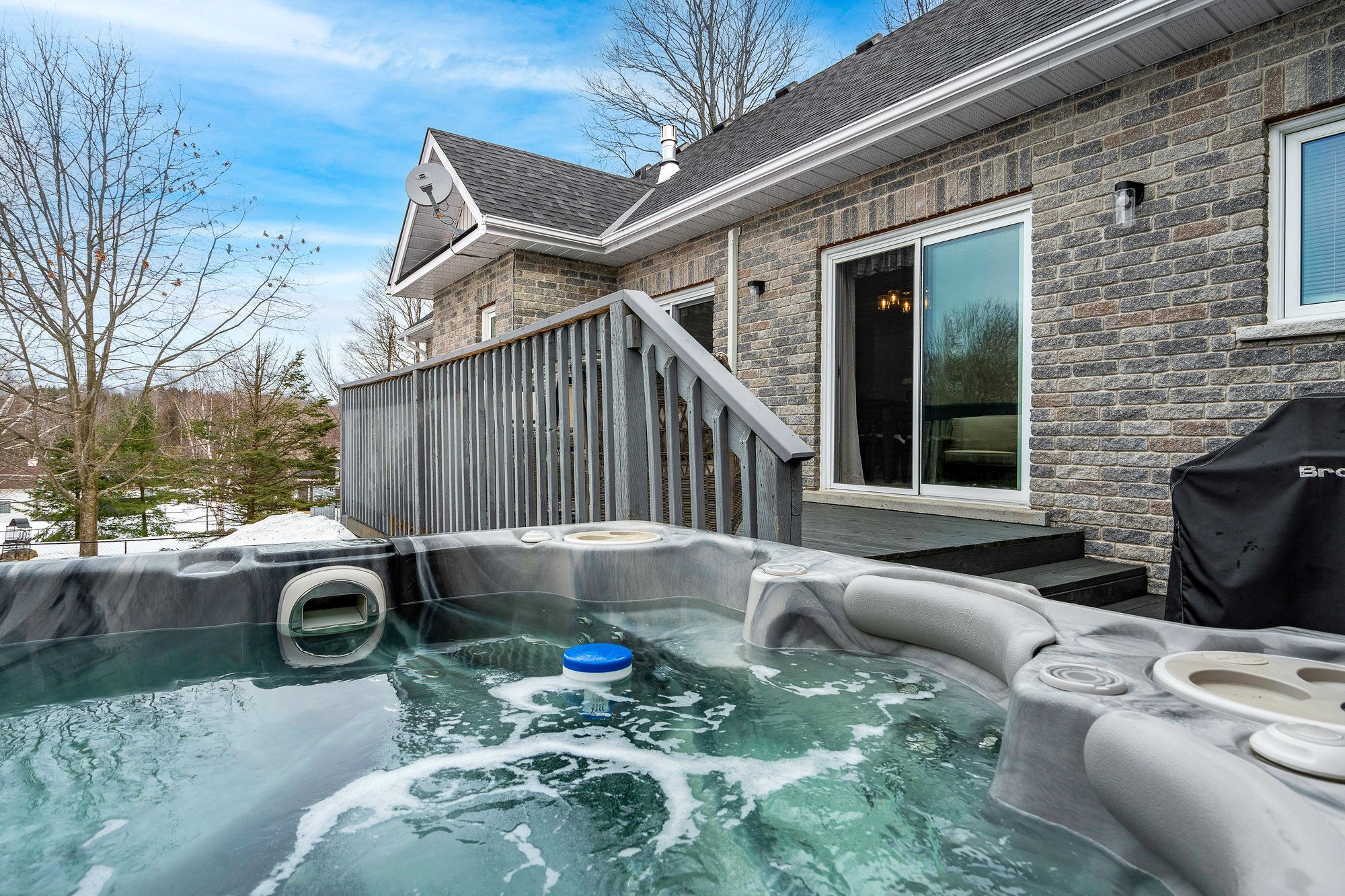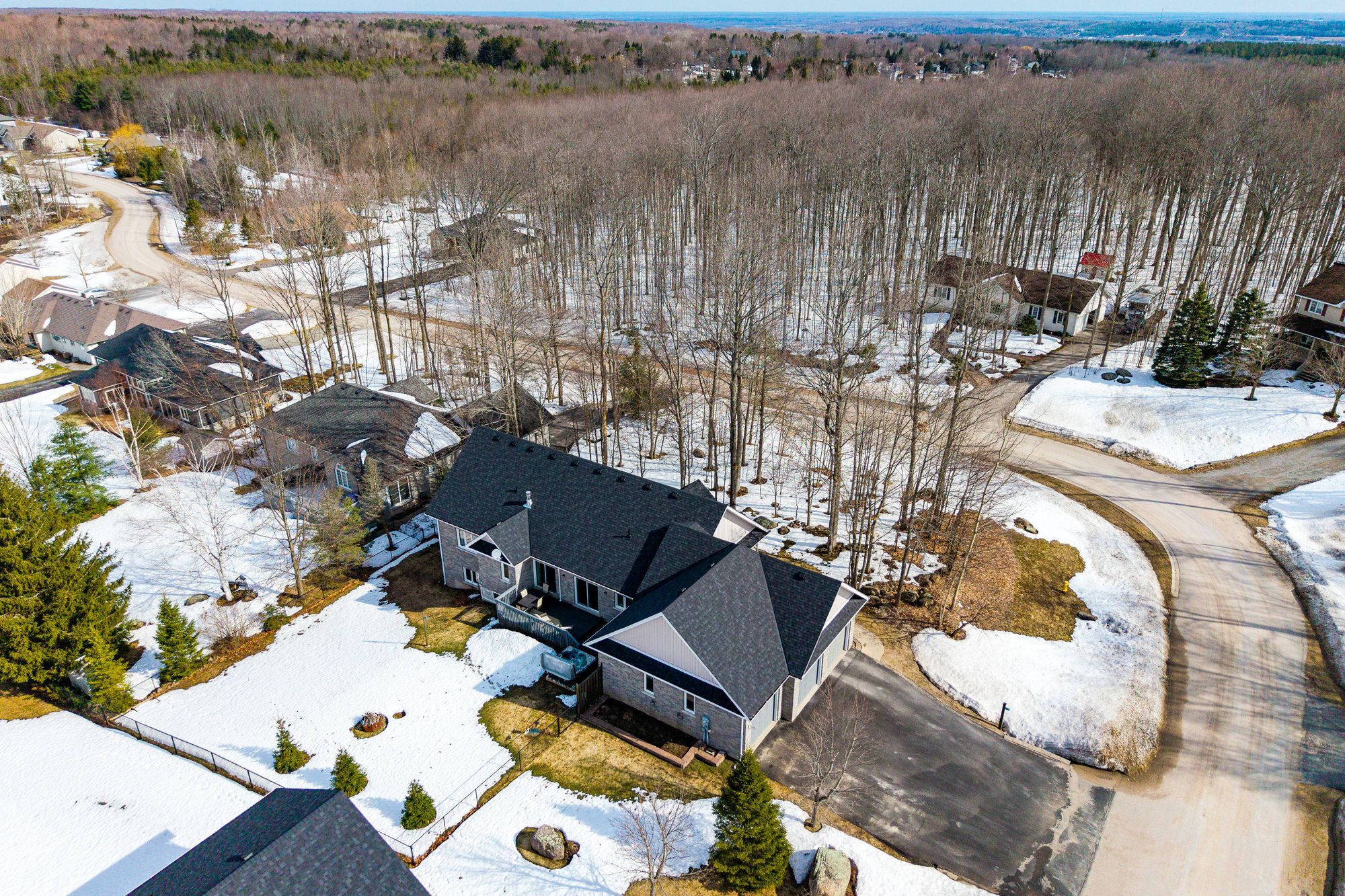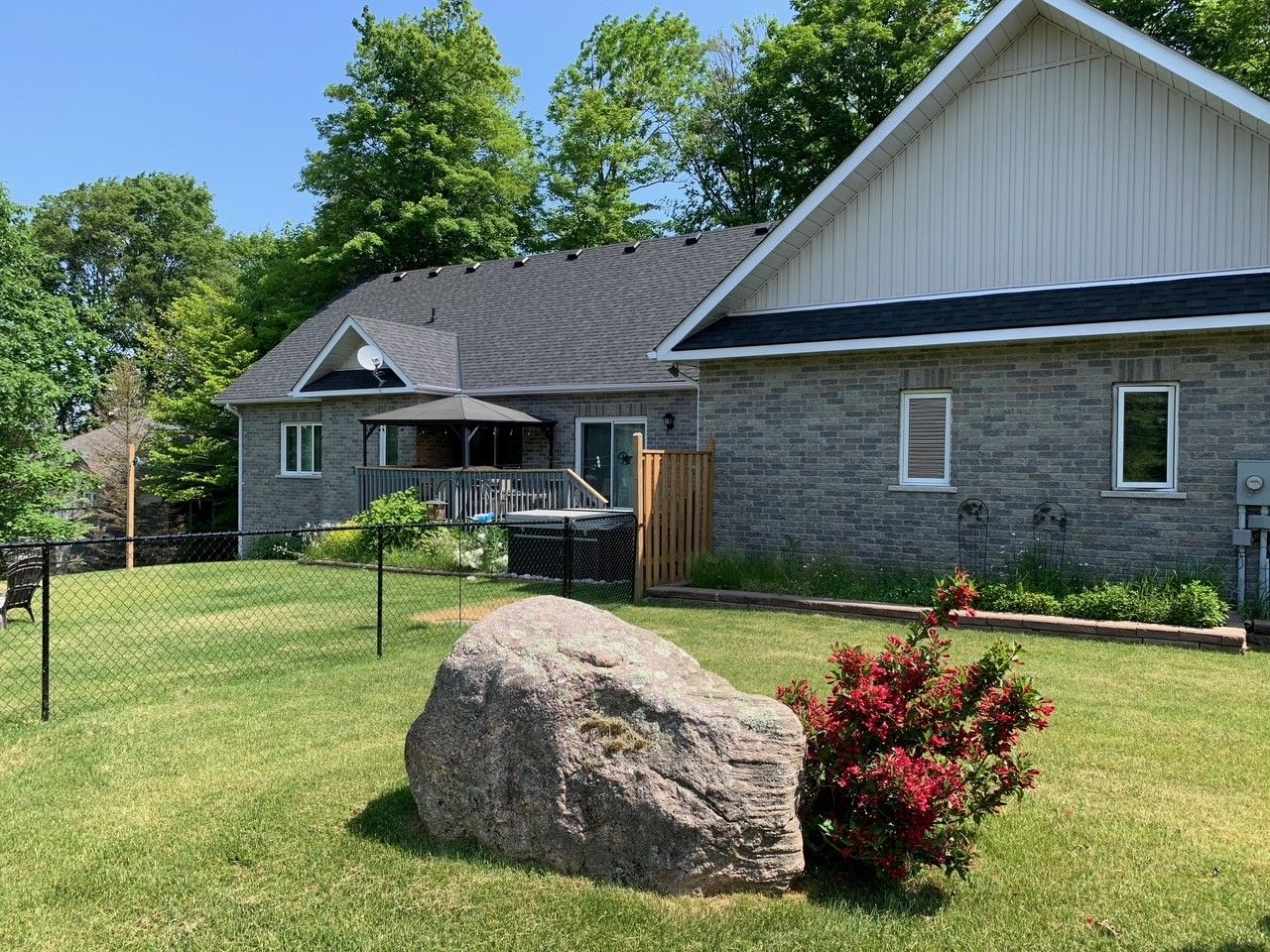 Tucked away on a picturesque, tree-lined half-acre lot in the desirable community of moonstone, this stunningly renovated bungalow offers the perfect blend of modern elegance and country charm. With substantial renovations and upgrades since 2021, this move-in-ready home is an absolute showpiece. The main floor boasts soaring vaulted ceilings, an open-concept layout flooded with natural light, and in-floor radiant heating throughout for year-round comfort. The completely renovated kitchen is a chef's dream, seamlessly connecting to the dining area, where a beautiful gas fireplace sets the perfect ambiance. Step outside to the expansive deck with a hot tub and fully fenced yard, ideal for entertaining or unwinding under the stars. This home offers three spacious bedrooms on the main level, as well as a home office--an ideal setup for remote work. Additional updates include renovated bathrooms (main floor 2024, primary ensuite 2025), a new roof (2024), and a new heat pump (2025). The fully finished lower level is built for enjoyment, featuring a rec room, bar, bedroom, 3 pc. Bathroom, with a walkout that offers potential for a separate basement suite entrance. Completing the home is an oversized, insulated three-car garage with in-floor radiant heating, perfect for extra storage or workshop space. Located just five minutes from st. Louis moonstone ski hills, this incredible home offers four-season recreation at your doorstep. Don't miss this rare opportunity to own a beautifully designed retreat in one of the area's most sought-after locations!