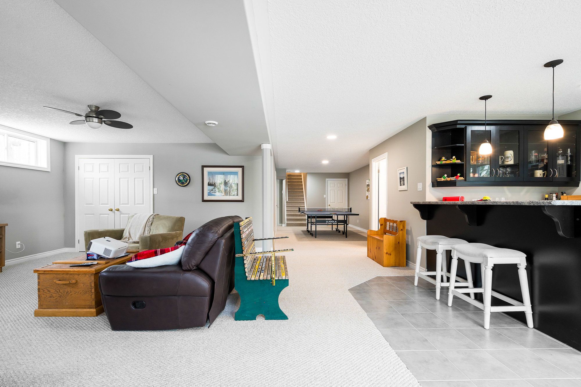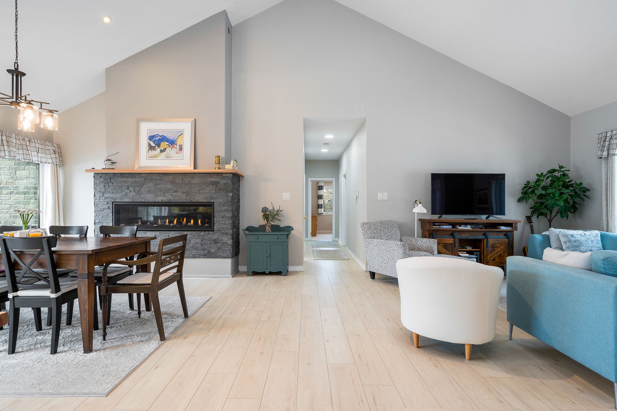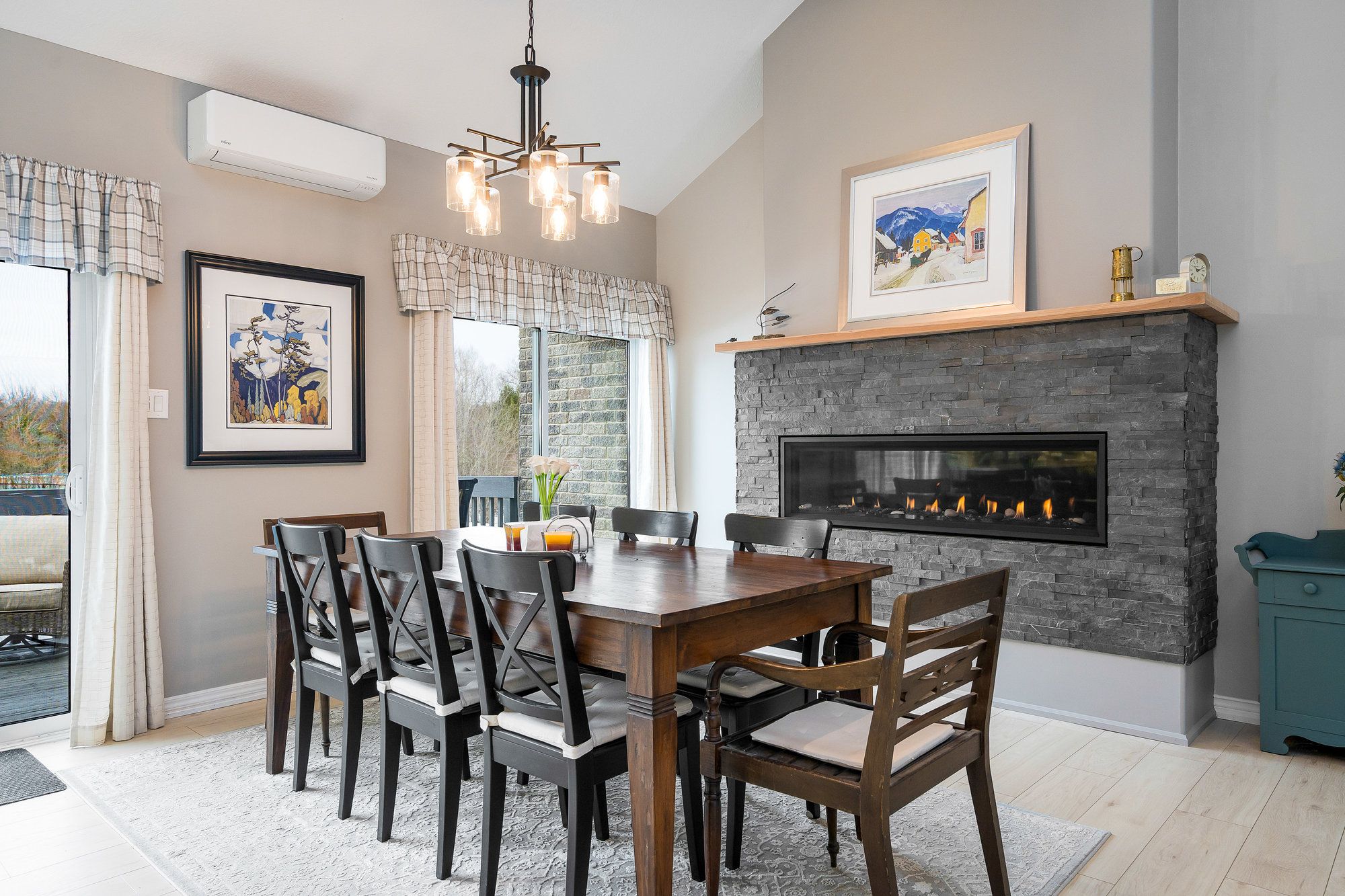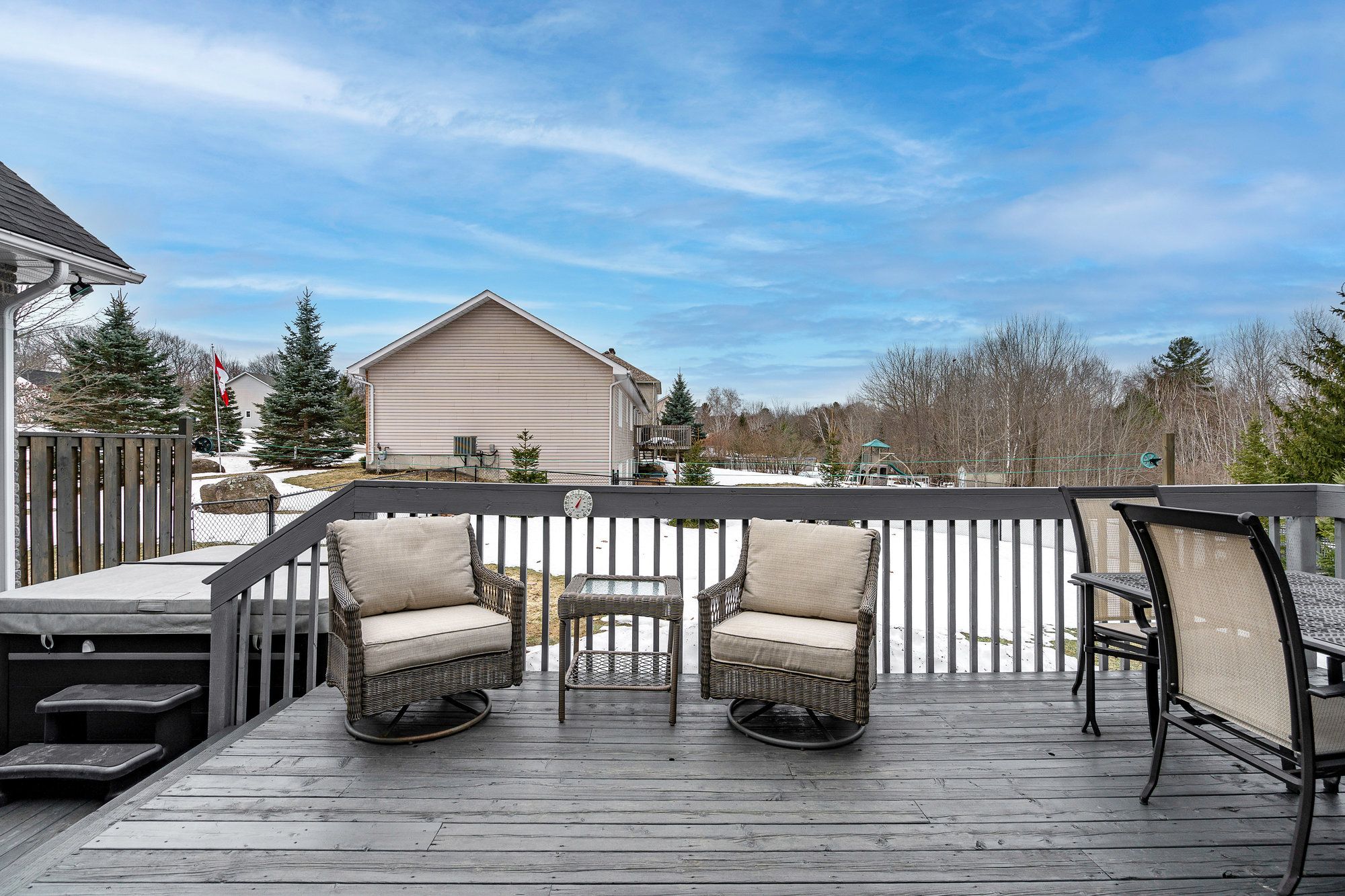Tucked away on a picturesque, tree-lined half-acre lot in the desirable community of moonstone, this stunningly renovated bungalow offers the perfect blend of modern elegance and country charm. With substantial renovations and upgrades since 2021, this move-in-ready home is an absolute showpiece. The main floor boasts soaring vaulted ceilings, an open-concept layout flooded with natural light, and in-floor radiant heating throughout for year-round comfort. The completely renovated kitchen is a chef's dream, seamlessly connecting to the dining area, where a beautiful gas fireplace sets the perfect ambiance. Step outside to the expansive deck with a hot tub and fully fenced yard, ideal for entertaining or unwinding under the stars. This home offers three spacious bedrooms on the main level, as well as a home office--an ideal setup for remote work. Additional updates include renovated bathrooms (main floor 2024, primary ensuite 2025), a new roof (2024), and a new heat pump (2025). The fully finished lower level is built for enjoyment, featuring a rec room, bar, bedroom, 3 pc. Bathroom, with a walkout that offers potential for a separate basement suite entrance. Completing the home is an oversized, insulated three-car garage with in-floor radiant heating, perfect for extra storage or workshop space. Located just five minutes from st. Louis moonstone ski hills, this incredible home offers four-season recreation at your doorstep. Don't miss this rare opportunity to own a beautifully designed retreat in one of the area's most sought-after locations!
