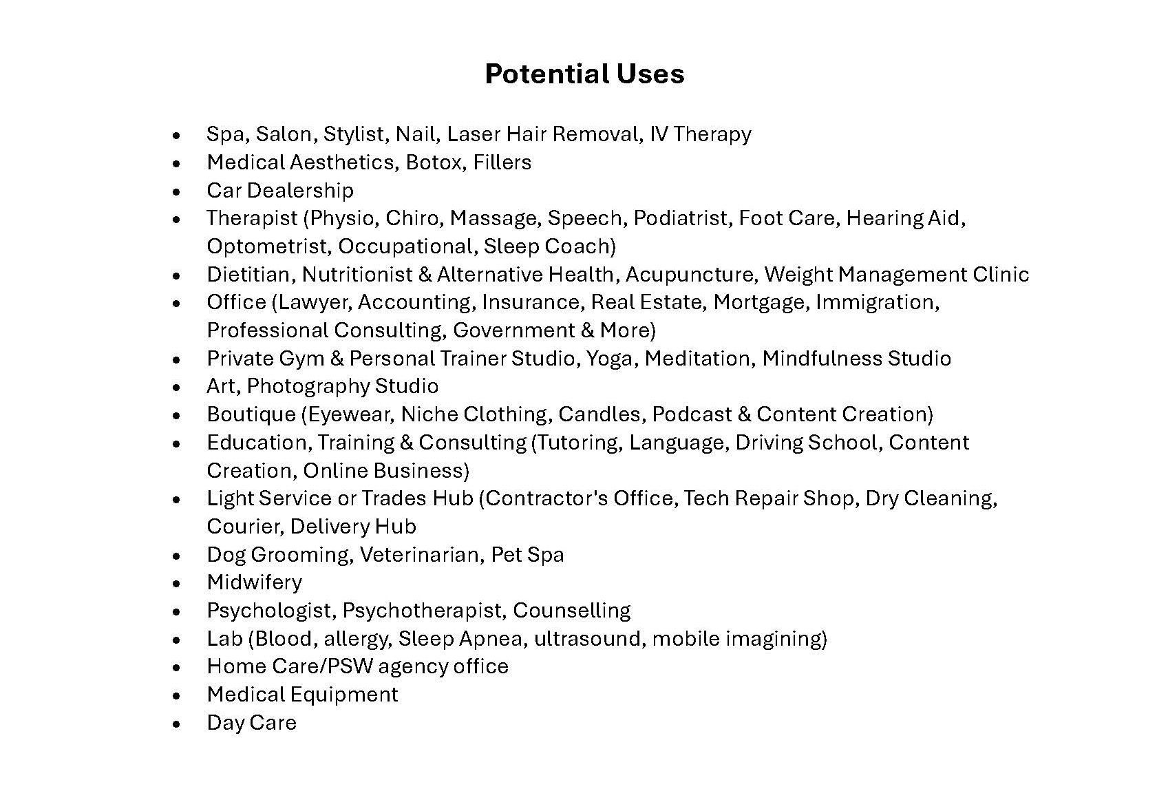 Situate your business adjacent to a very busy road! Existing family practice/physicians and health team to remain as attached neighbors. High traffic major artery road! Other neighboring business include a chiropractor, pet's depot & grooming, furniture store, auto parts store, auto repair shop, & more! On hwy 46/brock rd n in the upscale & growing town of puslinch, very strategically located between highway 401 & the city of guelph. Unit is approximately 500 sqft in the lower level with entrance door located directly across & just a few steps to the back parking lot, dimensions are approximately 21 by 25 feet, ready for your finishings. Roughed in bathroom & some framing already completed in unit b. Shared spaces unit a & c are already finished, ready for your business's quick opening! Flexible lease length terms! 3 units available, one at the lower level facing parking lot, one on the second floor facing the road, and the 3rd is shared space for a counselor! Your own parking spots will be designated for your practice & customers/clients in the parking lot. Available for immediate occupancy. See second photo for potential uses.