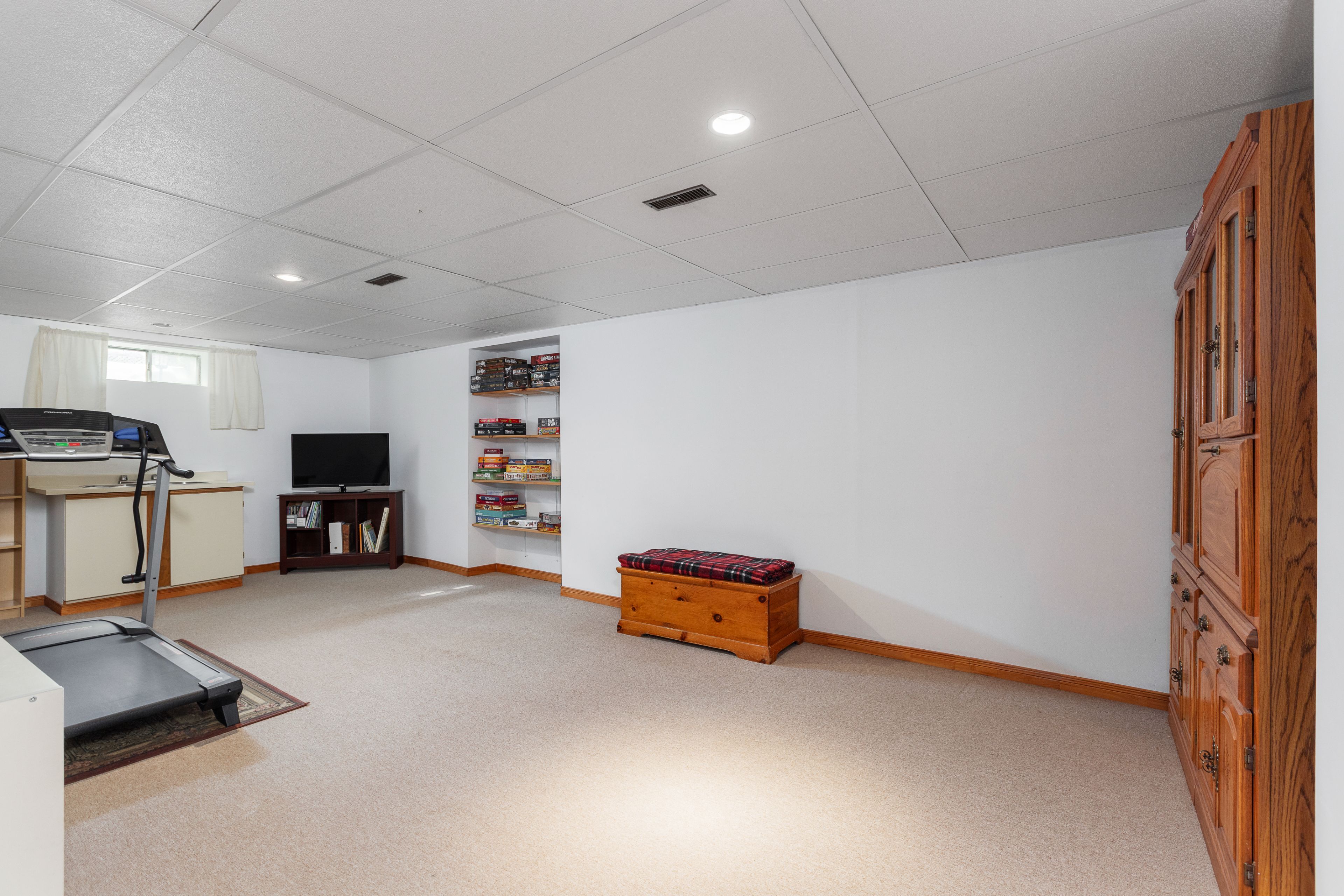 • Generous lower level recreation room with potential for customization.