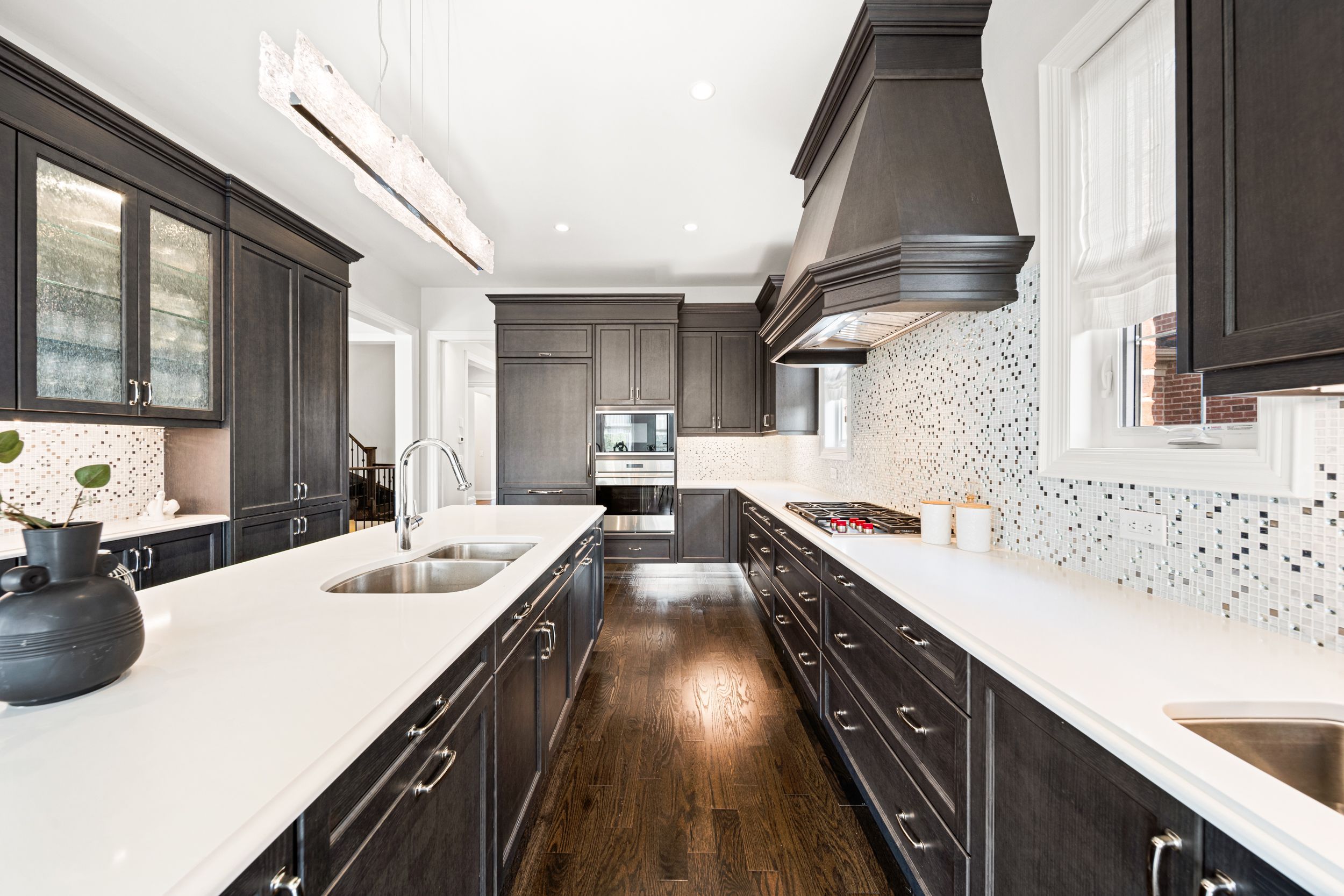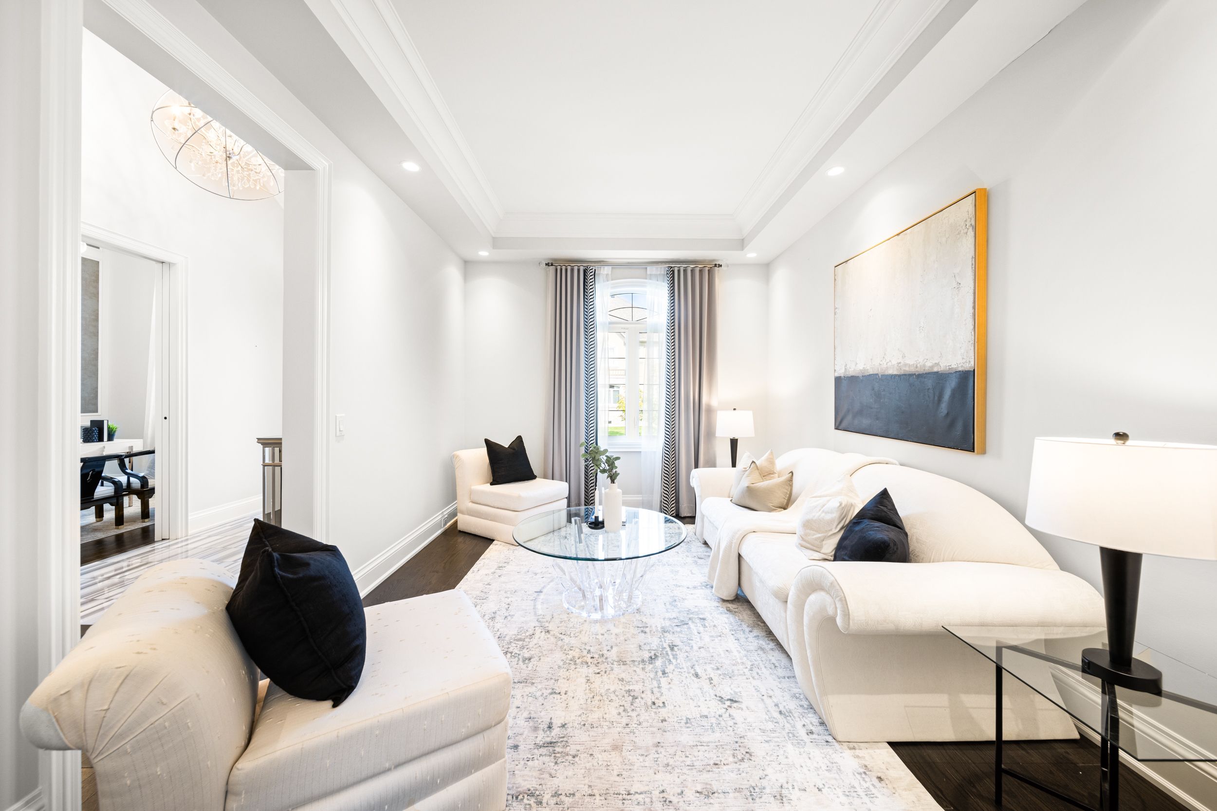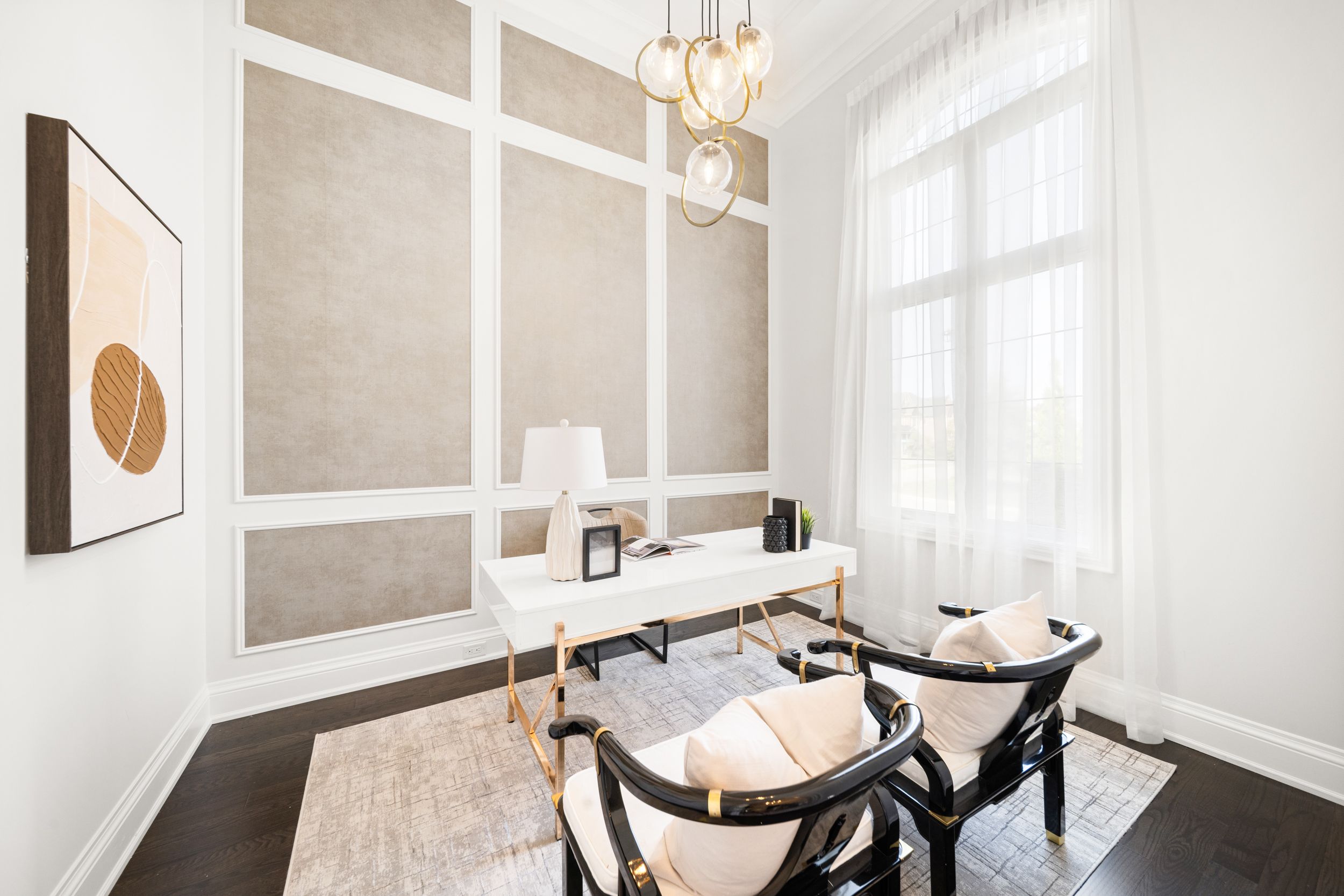 Located in the heart of king city, this beautiful bungaloft offers more than 6,900 square feet of finished living space in a community prized for its parks, trails, excellent schools, and quick access to the king city go station. The home is introduced by a stone-and-stucco facade, a three-car garage, and landscaped grounds with a terrace and rear patio overlooking the ravine. Inside, soaring ceilings, hardwood floors, and detailed millwork set an elegant tone. The front foyer rises two storeys, leading to a series of principal rooms defined by coffered ceilings: a paneled office, a formal living and dining room, and a family room anchored by a gas fireplace. At the centre of the main level, the kitchen is fitted with dark-stained cabinetry, quartz counters, and a full suite of wolf and sub-zero appliances. The adjoining breakfast area opens directly to the terrace. A main-floor primary suite with a spa-like ensuite and walk-in closet provides a private retreat, while a second bedroom with its own ensuite adds flexibility for family or guests. An elevator connects all three levels. The upper floor includes two additional bedrooms, a full bath, and a den well suited for children, extended family, or a separate study. The fully finished lower level is above grade, with oversized windows and french doors leading to the rear patio. This home includes total of 4 + 2 bed and 4 + 2 bath. Designed as a complete secondary living area, it includes a full kitchen with quartz counters and samsung appliances, a dining area, a large recreation room with fireplaces, two bedrooms, and additional baths. This thoughtful layout makes the property especially accommodating for multi-generational living. Every detail of this residence reflects quality and enduring design, offering a rare opportunity in one of king city's most desirable settings.