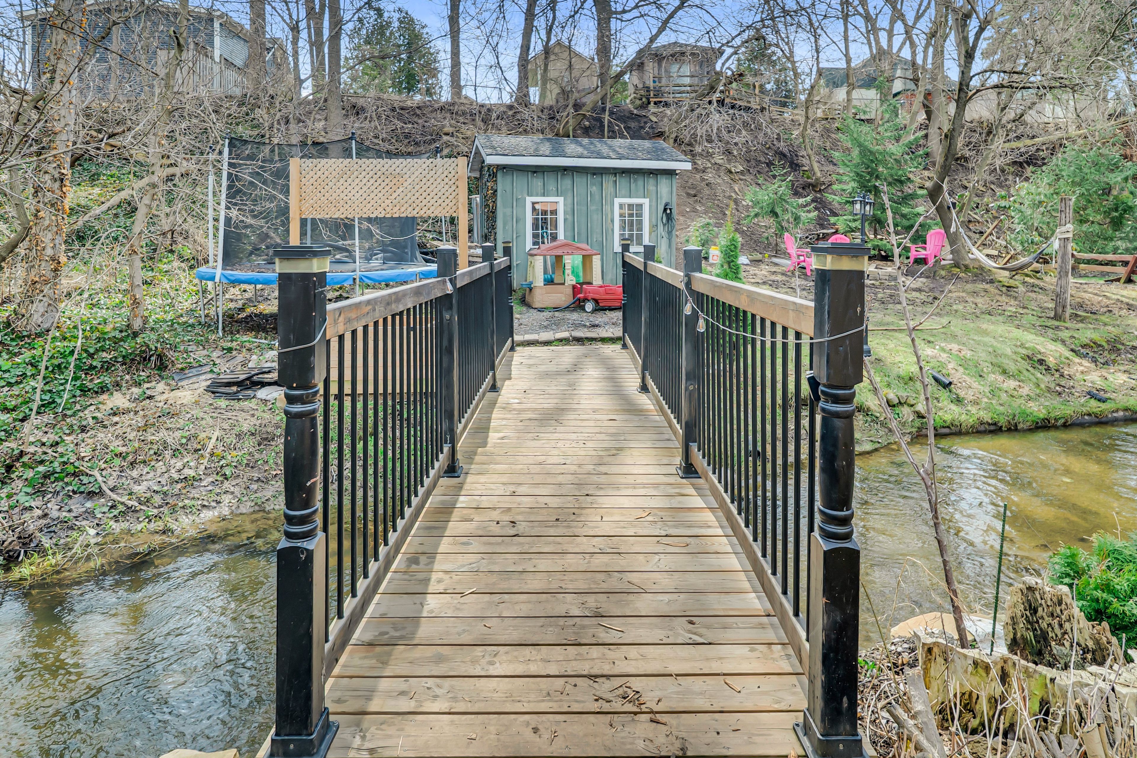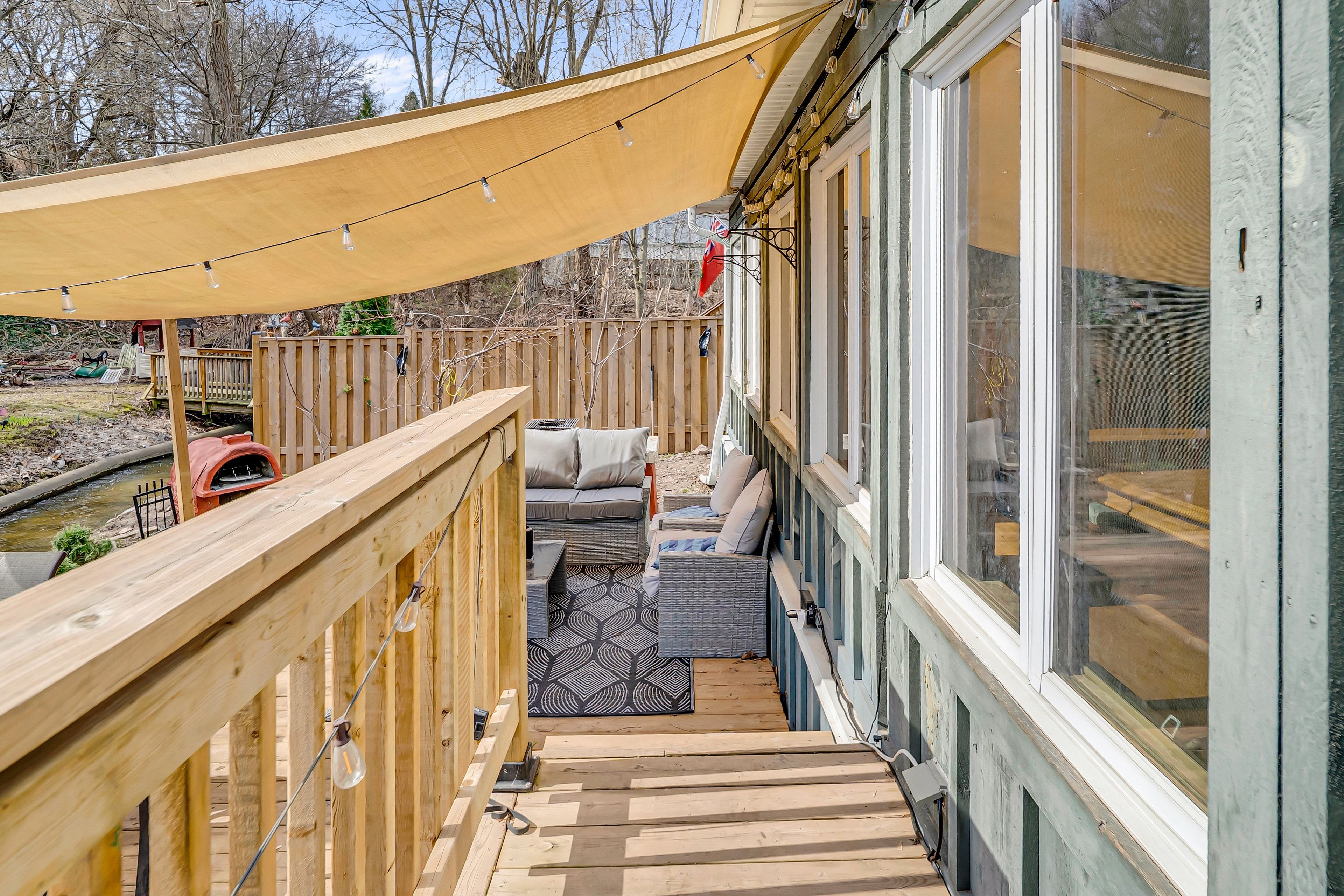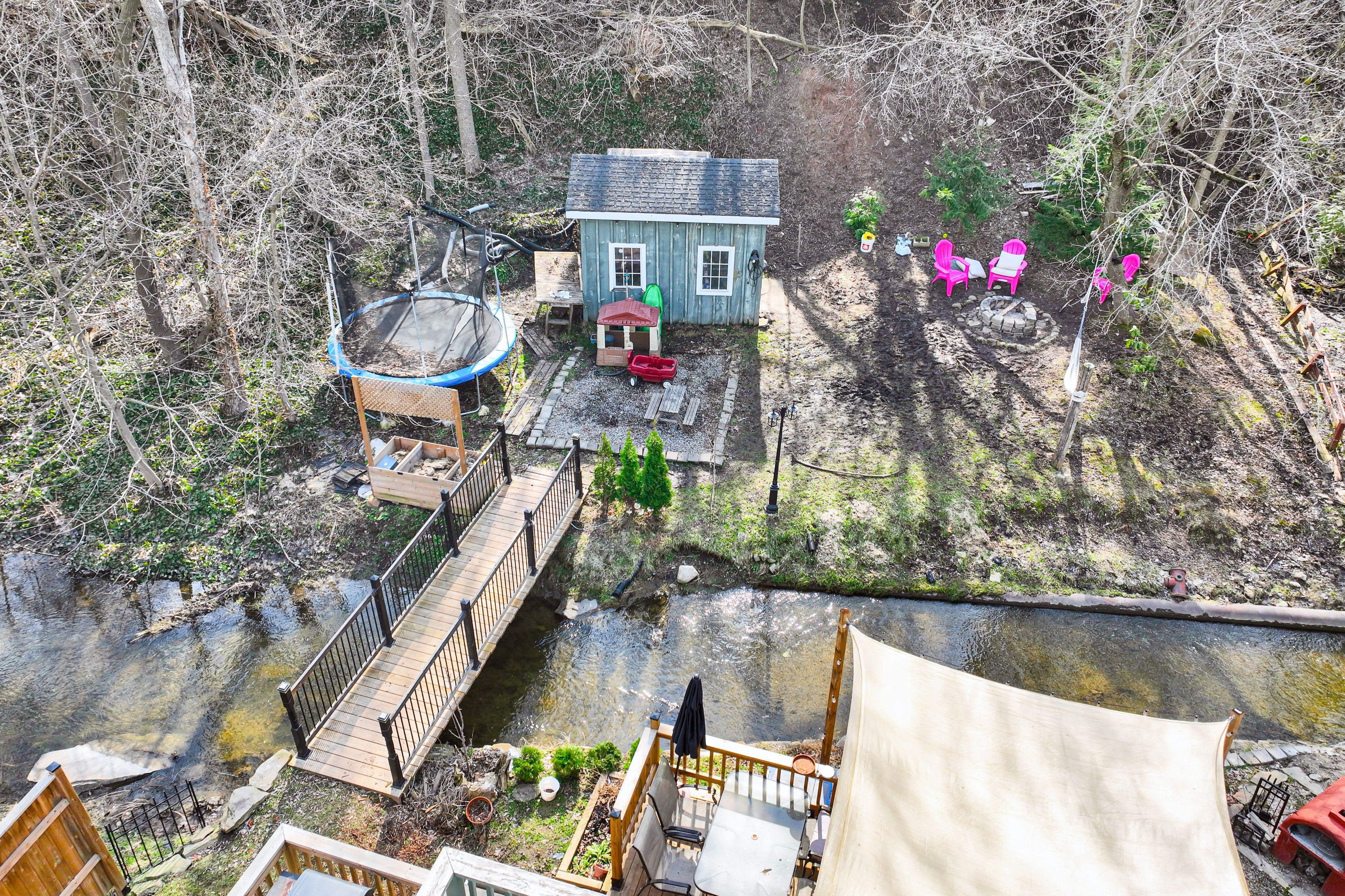 • Upgraded outdoor space with a firepit and wrap-around deck by the creek.