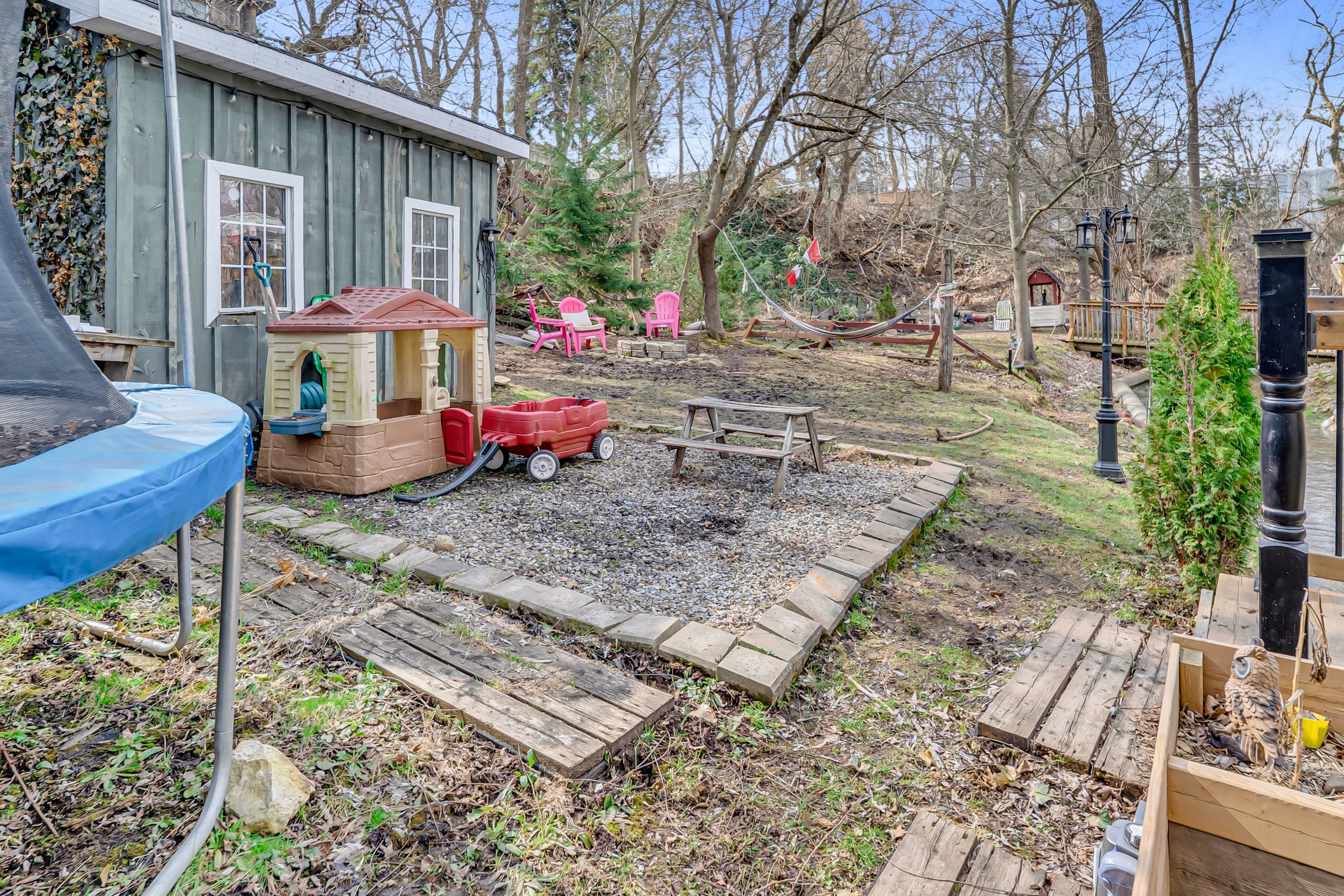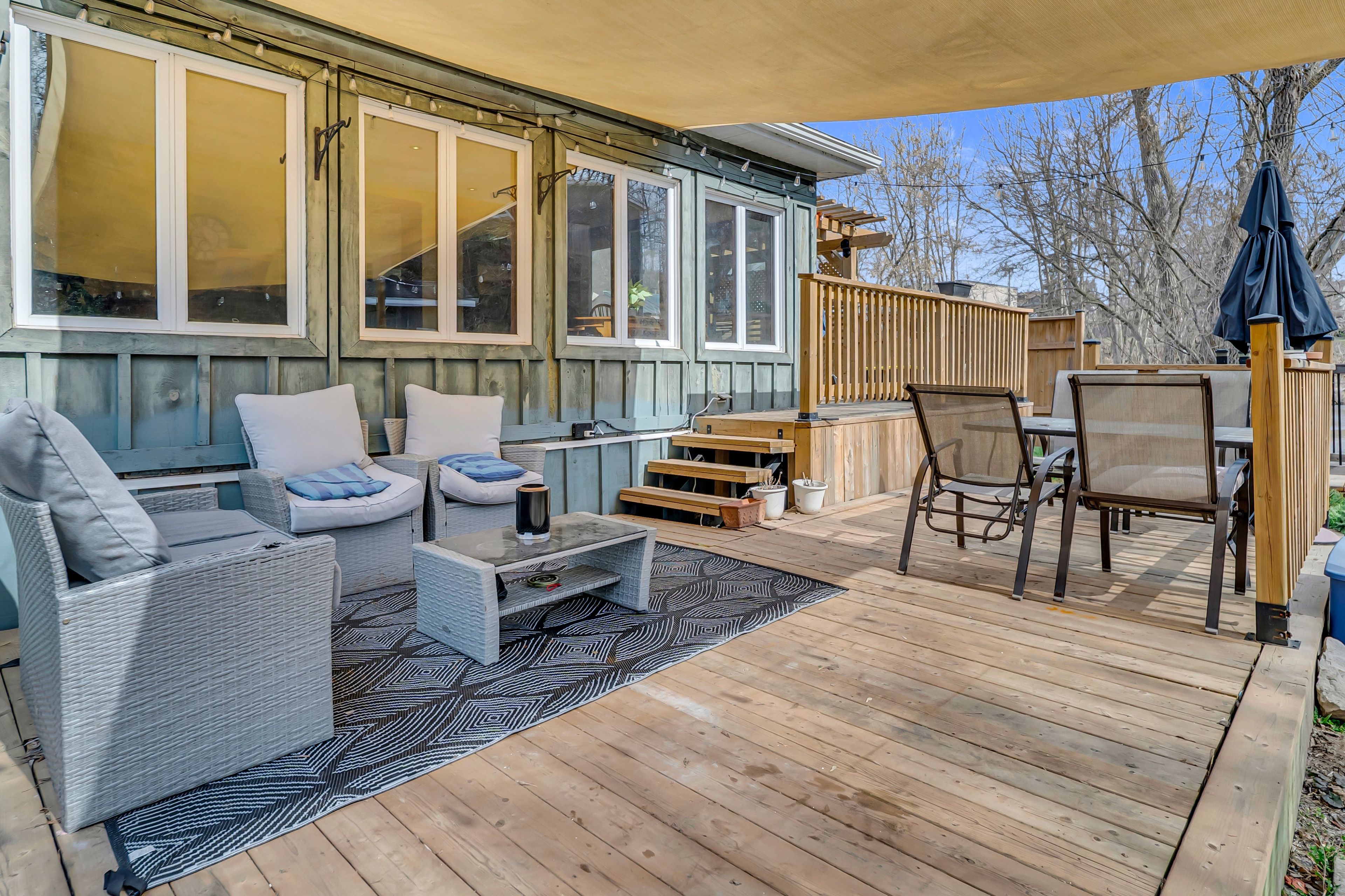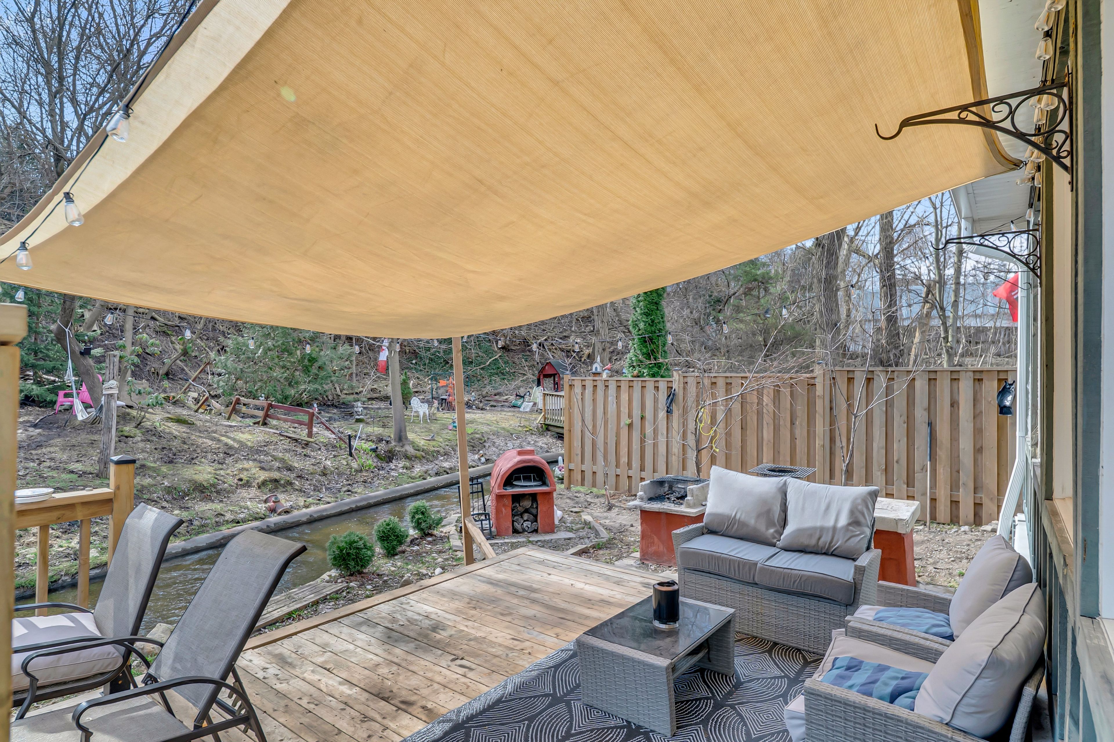 • Upgraded outdoor space with a firepit and wrap-around deck by the creek.