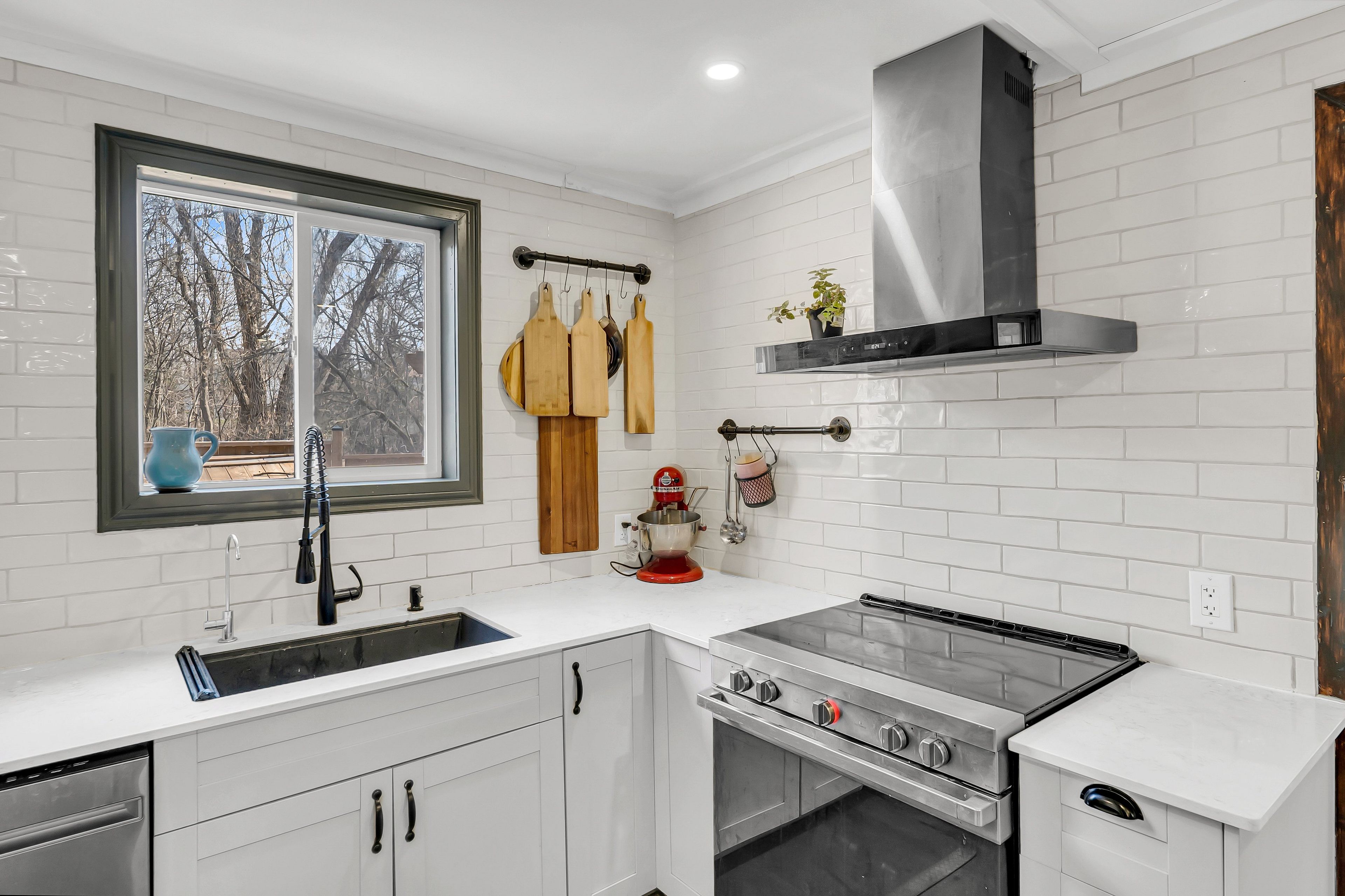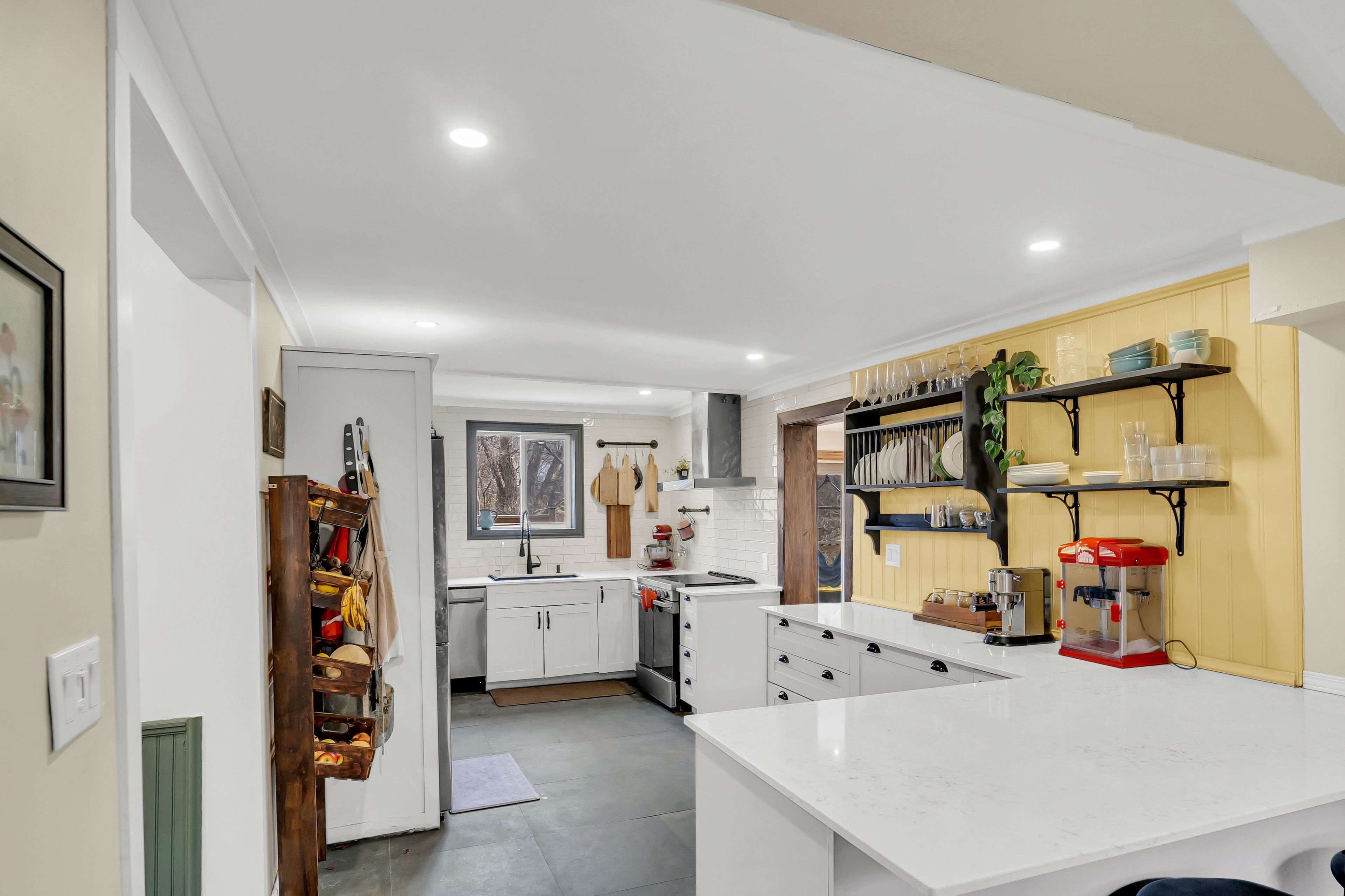• Newly renovated kitchen with abundant cabinetry and breakfast area.