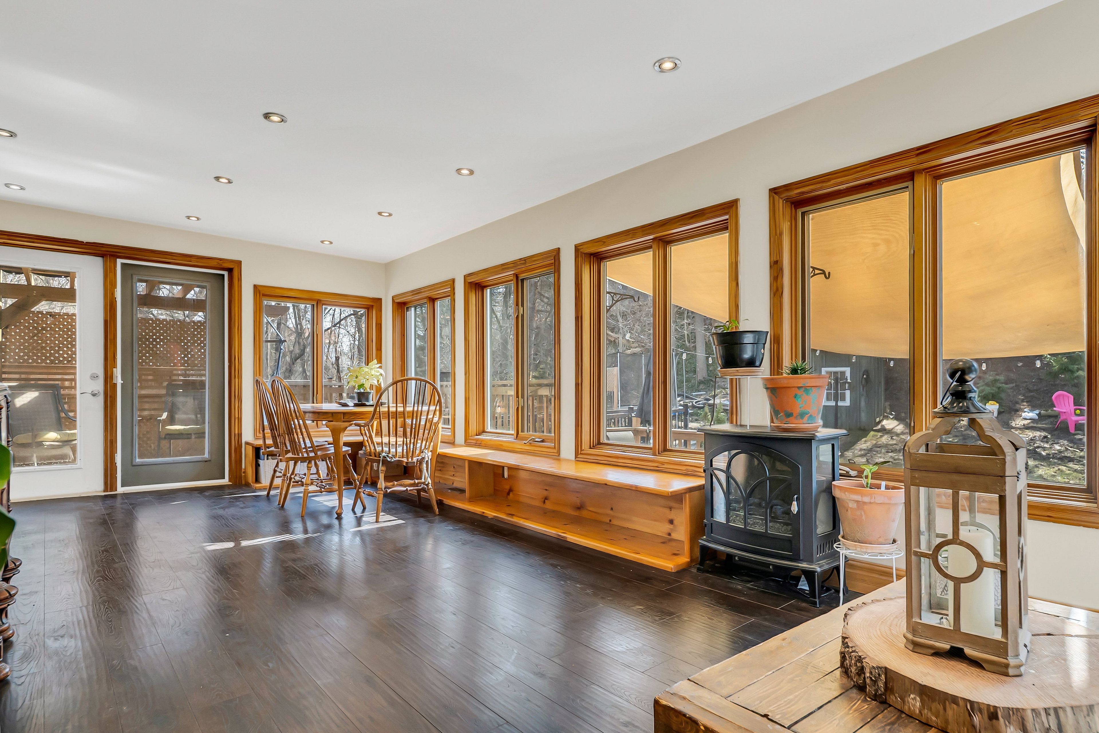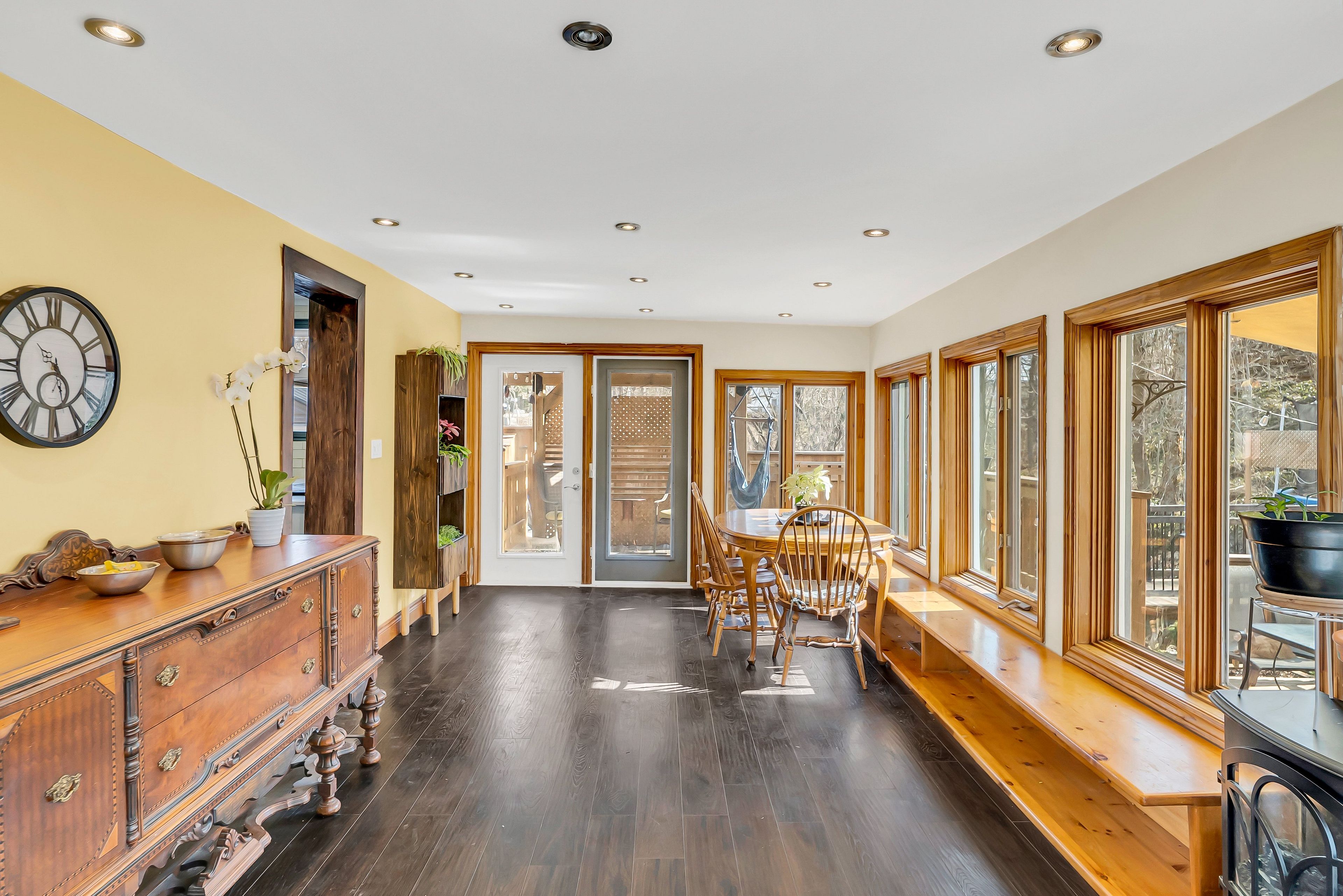 • Stunning sunroom offers natural light and peaceful views of the yard.