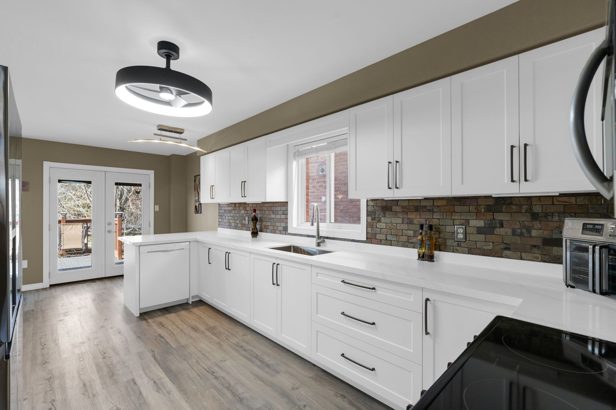 Welcome to this beautifully maintained home offering a thoughtful layout and exceptional versatility for modern living. The main floor is designed with both comfort and functionality in mind, featuring a warm and inviting family room that flows seamlessly into a spacious dining area-perfect for both everyday living and hosting memorable gatherings. The well-appointed kitchen, updated in 2024, is a standout feature, complete with ample cabinetry, generous quartz counter space, and brand-new stainless steel appliances, including a fridge, stove, and microwave. (2024) it offers the ideal setting to prepare and enjoy family meals with ease. Recent updates enhance both style and comfort, including new vinyl flooring throughout the main floor and new carpet on both staircases, completed in 2023. A convenient inside entry from the double-car garage leads into a practical mudroom, perfectly suited for busy households. Step outside to a private, landscaped yard where a walkout from the kitchen leads to a large deck, enhanced by a covered hardtop gazebo, creating a comfortable outdoor space for entertaining or unwinding in any season. Upstairs, the second level offers four generously sized bedrooms, a full 4-piece bathroom, and a convenient laundry area. The primary suite serves as a true retreat, featuring large, bright windows, a cozy sitting area, double closets, and a well-designed ensuite complete with a walk-in shower and a standalone soaker tub. The fully finished walkout basement adds exceptional flexibility and value. This lower level includes two additional bedrooms, a kitchenette, a 3-piece bathroom, and a separate laundry hookup-ideal for extended family, guests, or multi-generational living. Additional updates include the roof, completed in 2016, offering peace of mind for years to come. This home seamlessly combines comfort, space, and functionality both inside and out-an ideal fit for growing families or those who love to entertain.