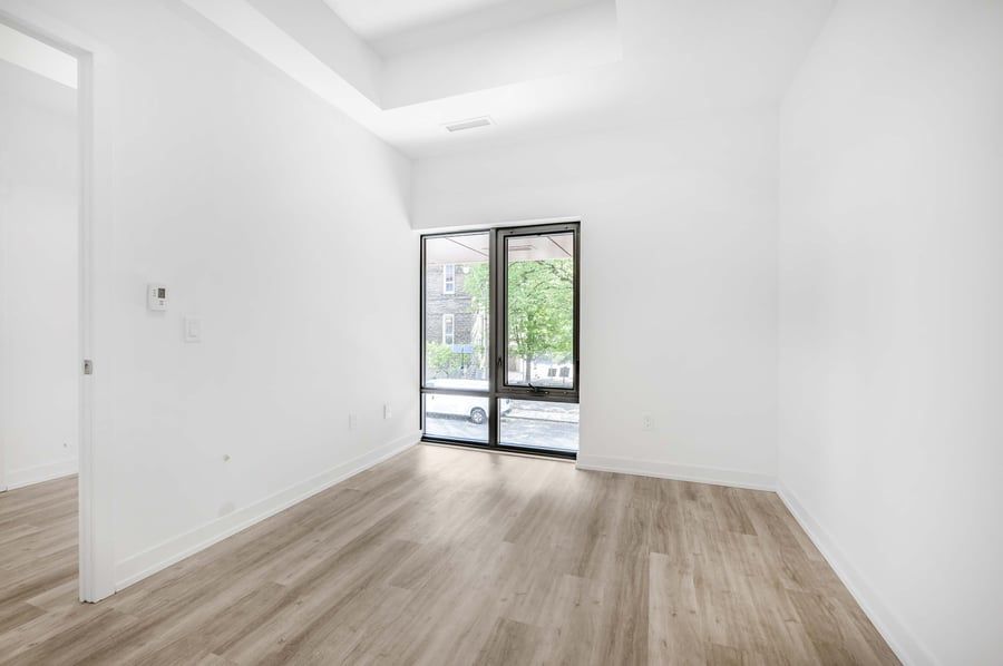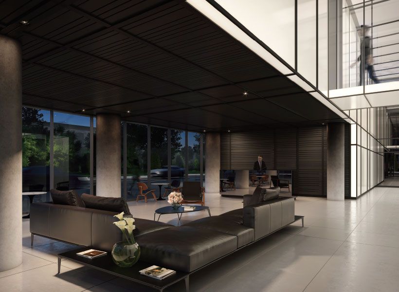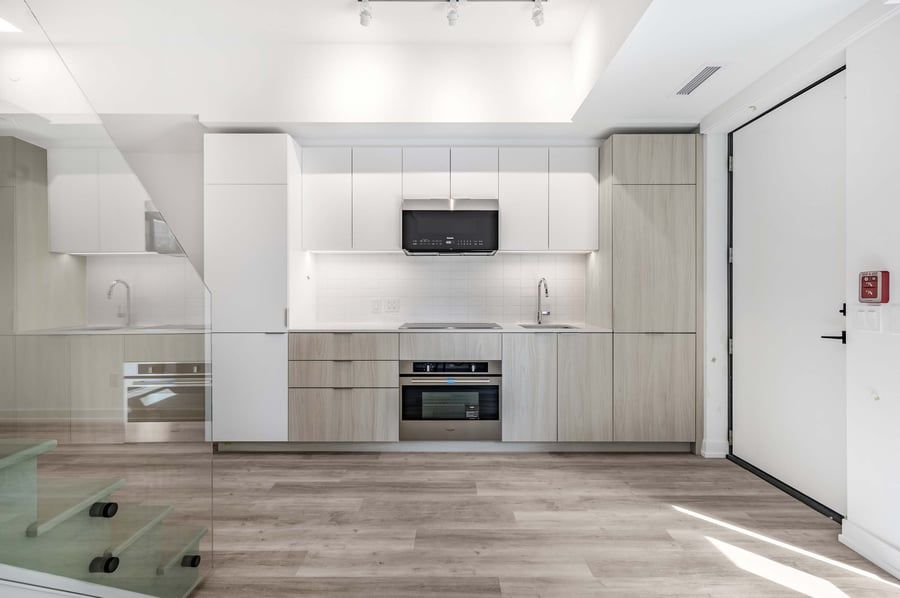 • Modern kitchen with luxury finishes and huge 10' floor-to-ceiling windows.