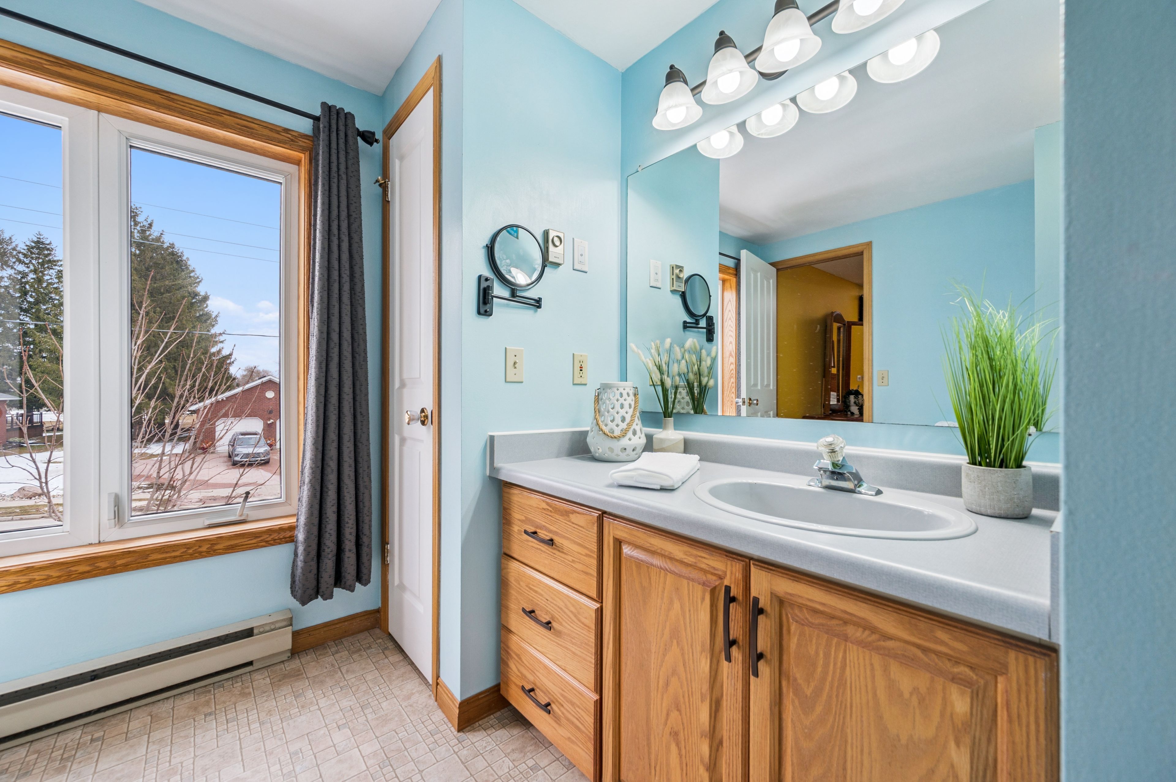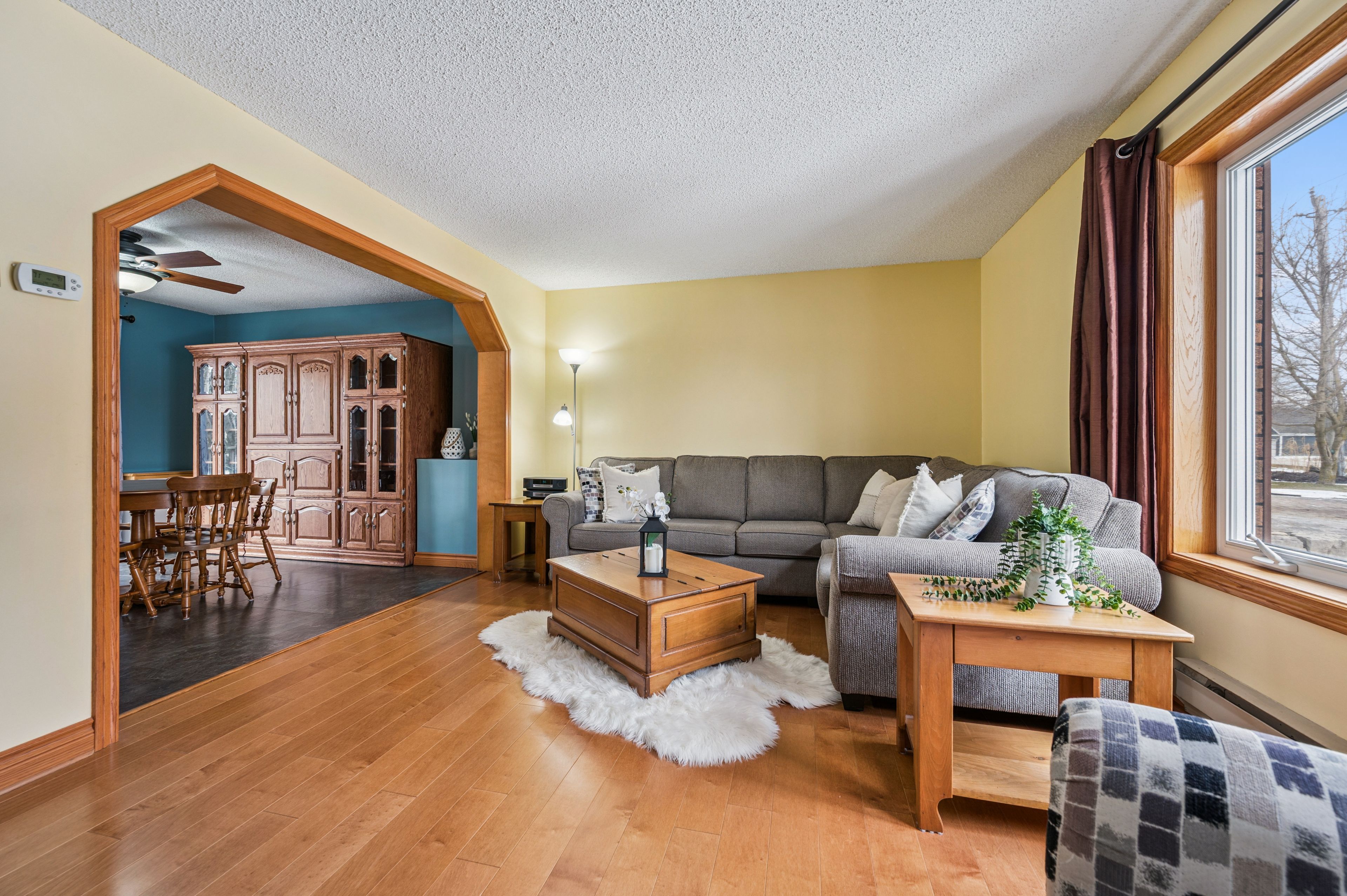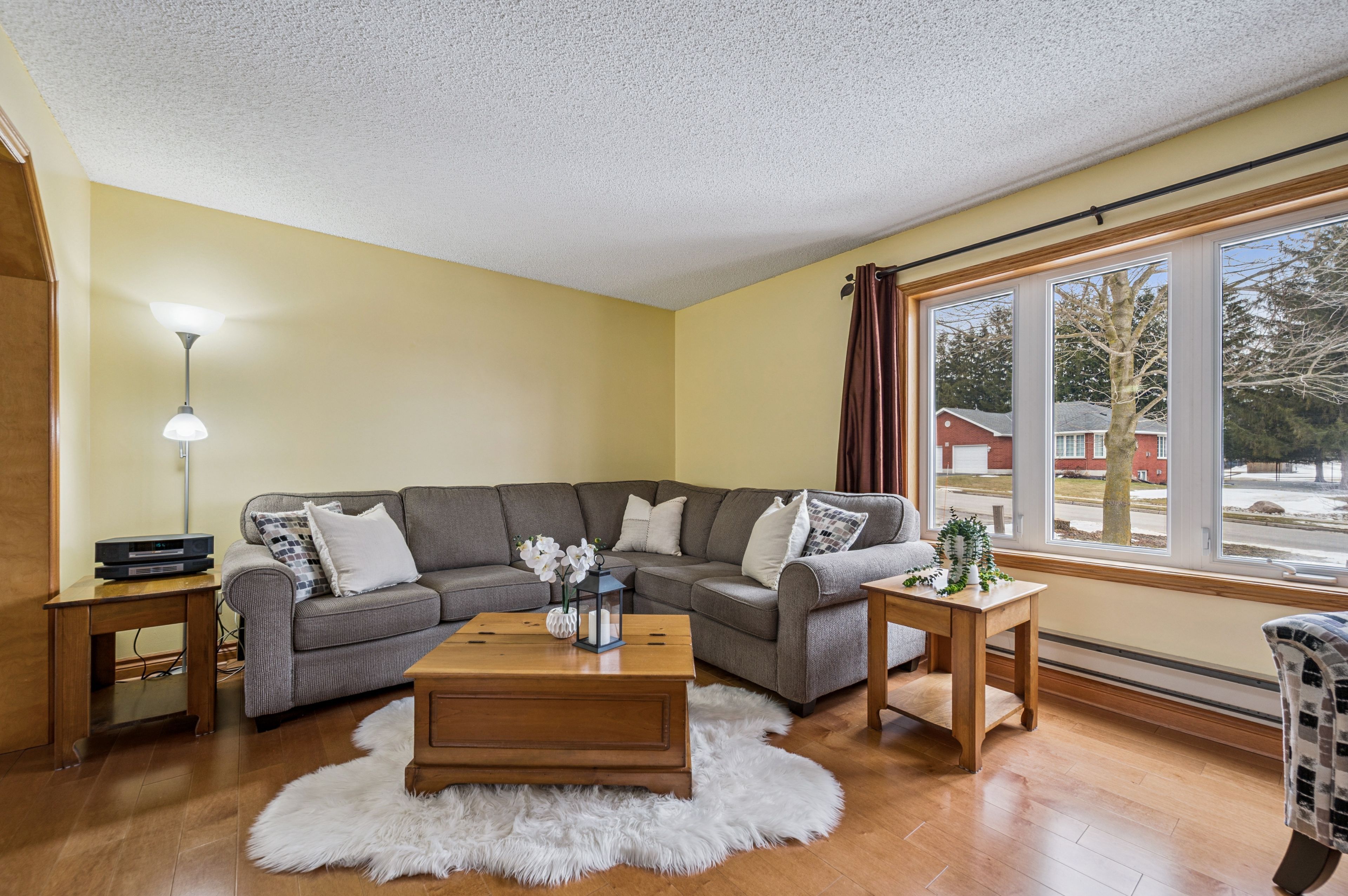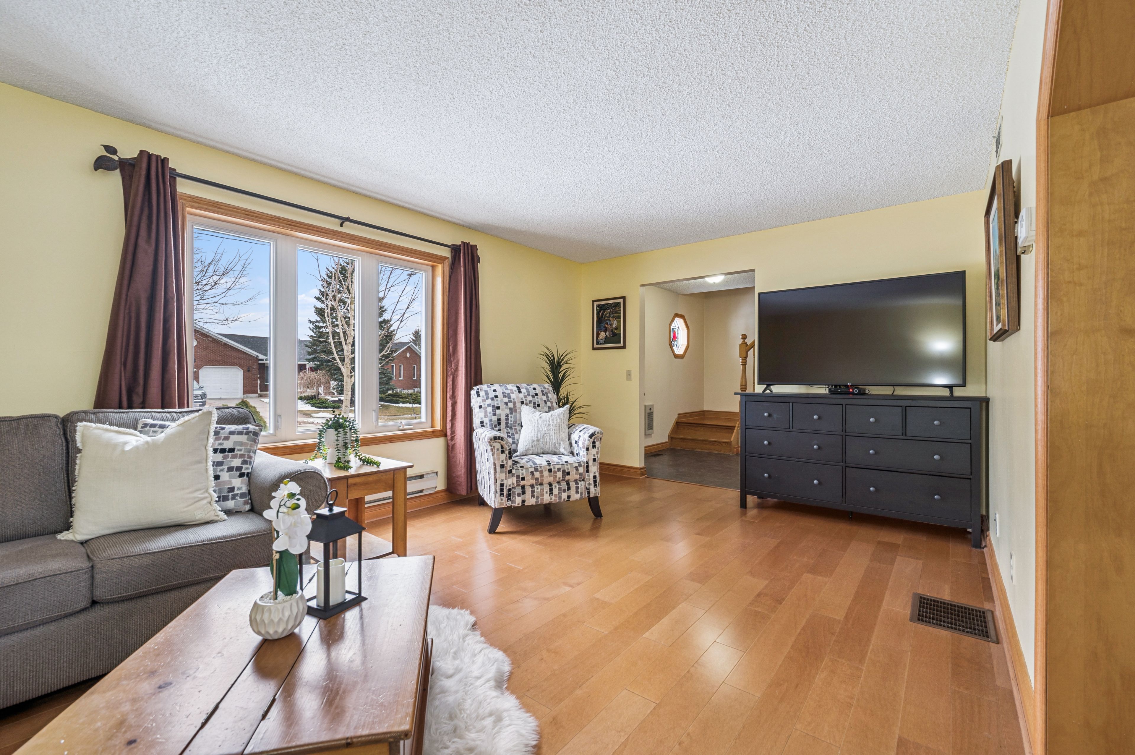 • Large bright living room with updated hardwood floors for comfort and style.