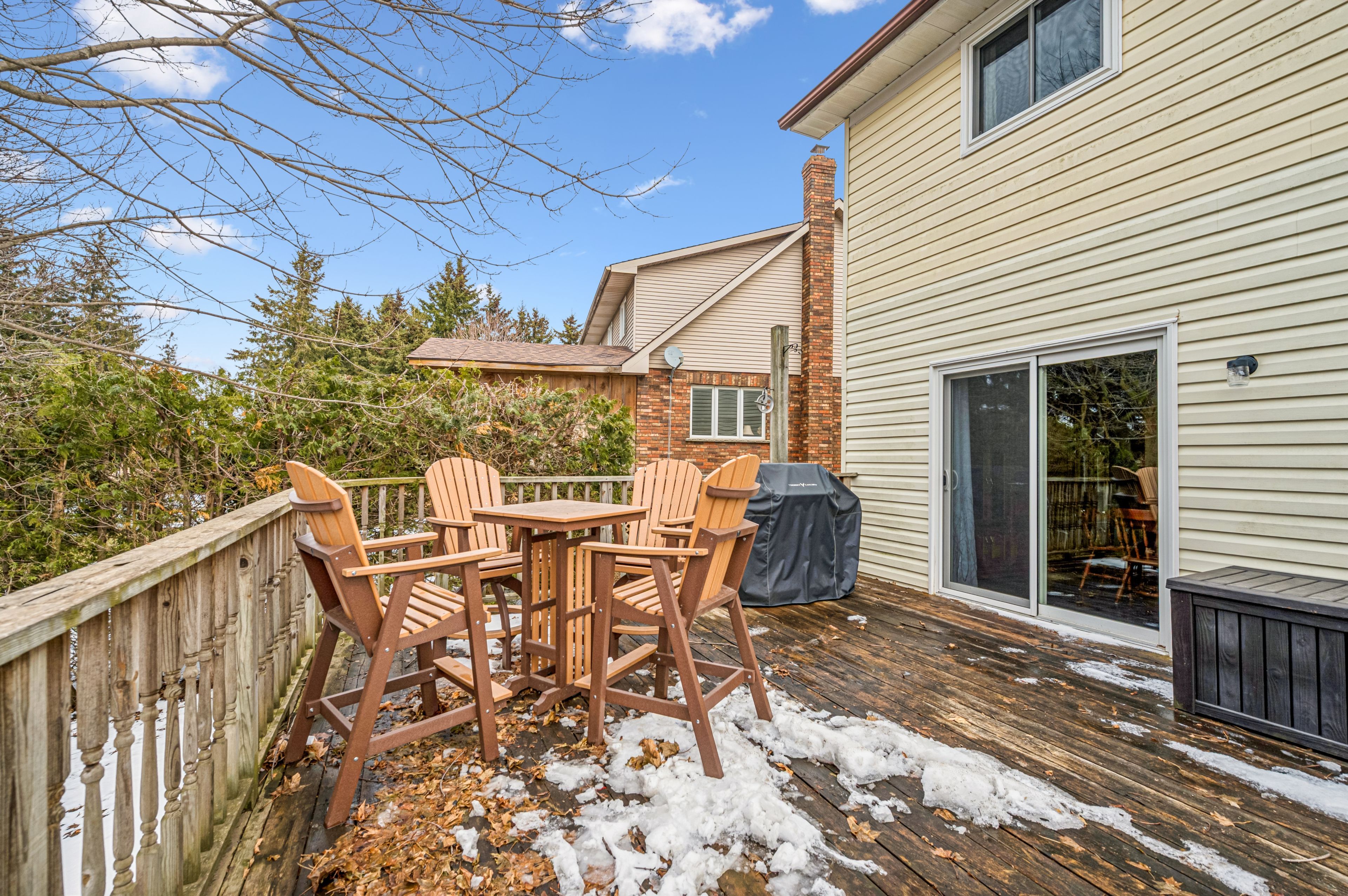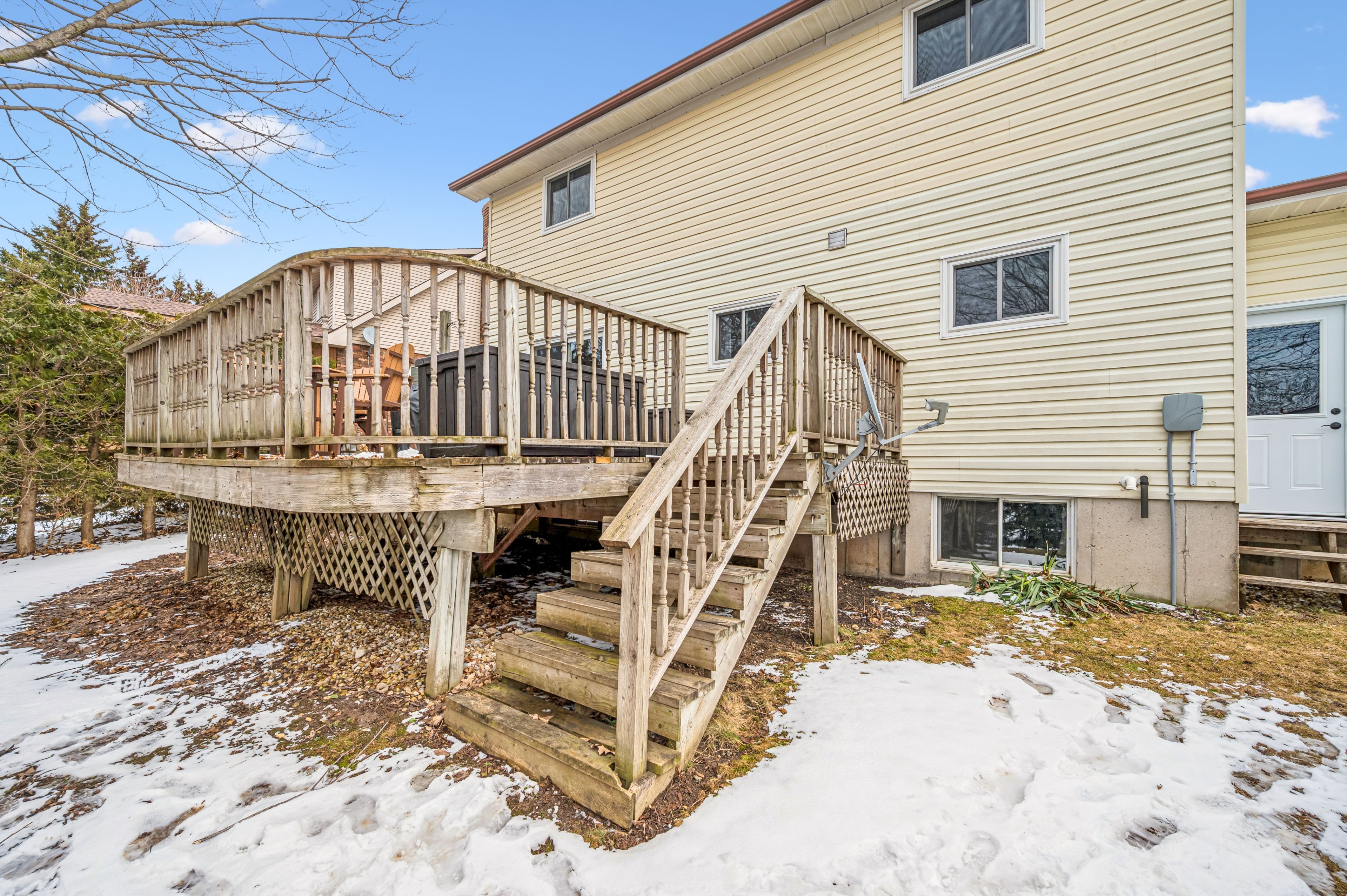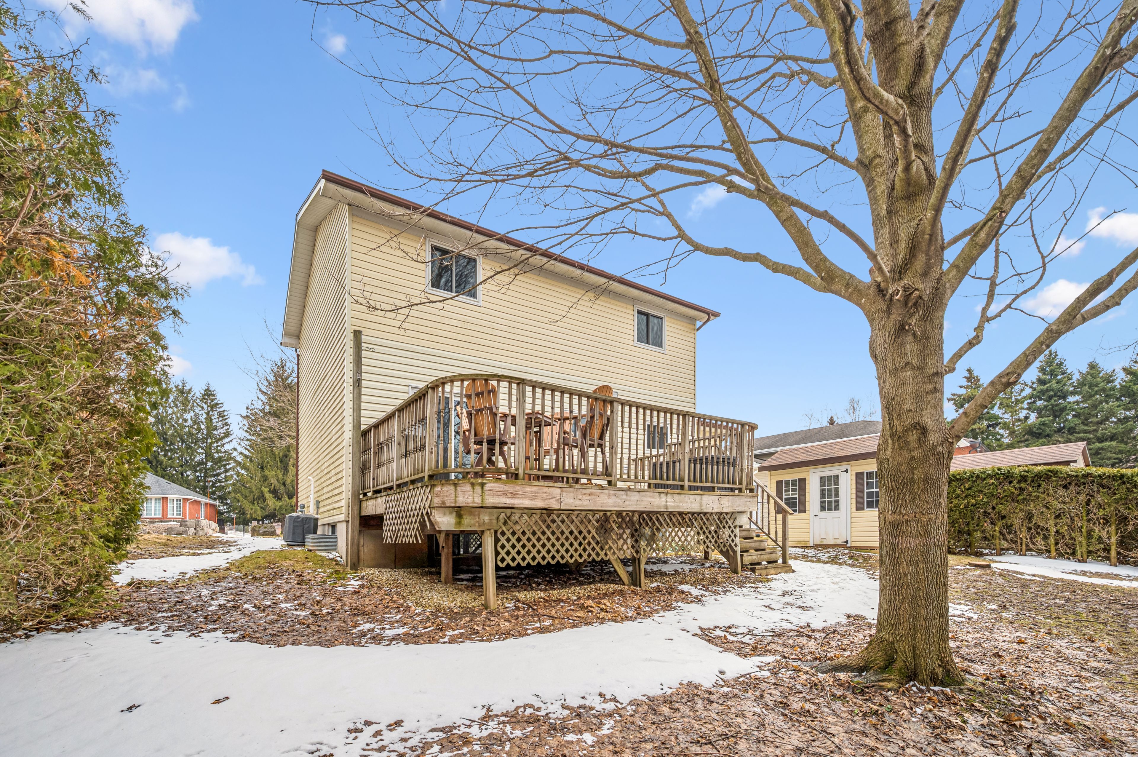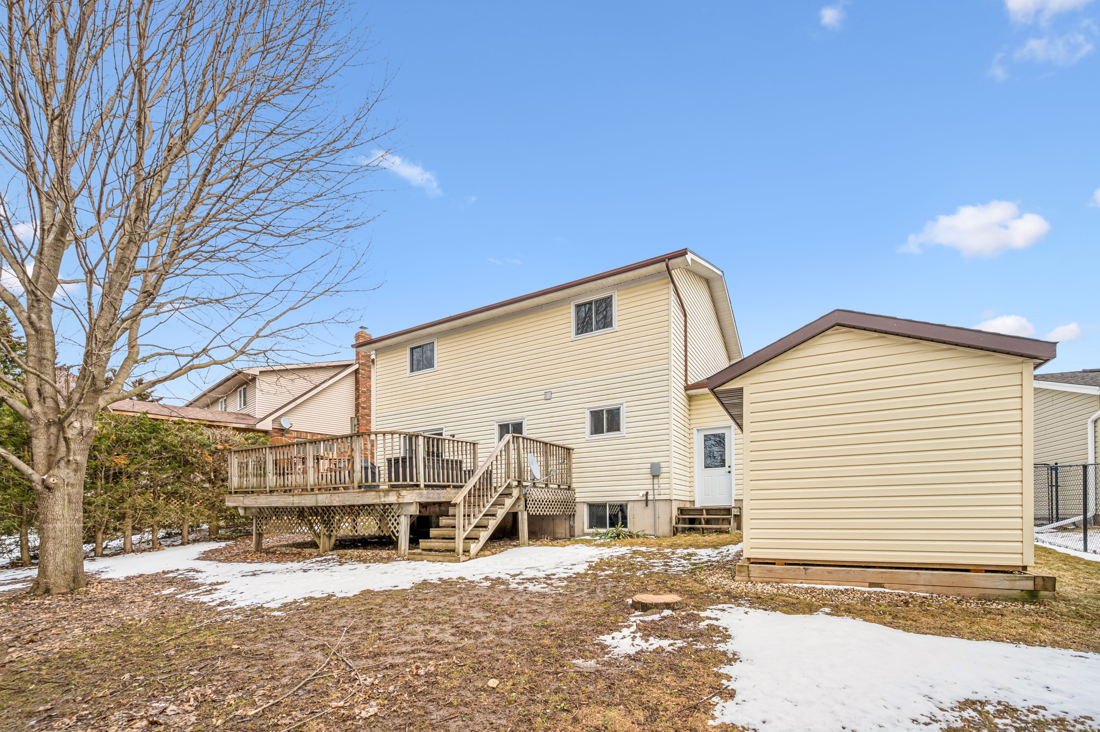 Welcome to small town living - where comfort, quality and space come together in a home that truly delivers. This quality built home offers an ideal floor plan for families looking to settle in and comfortably grow. Its' main floor features a tastefully updated and spacious eat-in kitchen, granite countertops, gas stove and sliding doors overlooking the mature and private 165' pie shape lot, delivering an exceptional outdoor experience with mature trees and landscaping that is increasingly hard to find. Large bright living room with updated maple hardwood floors, guest bathroom and laundry complete the main floor conveniences. The upper level offers 3 roomy bedrooms, king size primary bedroom with cheater ensuite and his & hers closets. The fully finished basement adds incredible versatility with a large rec room, ideal for entertaining. You'll also find an additional bedroom complete with walk-in closet, that adapts to your needs, whether it's for your growing family, guests, home office, hobby room or workout space. This home is not complete without the cold cellar and ample storage space - perfect for keeping your home organized without sacrificing living space. Many other updates to this home, include windows, doors, roof, furnace and a/c and more ... Ready for you to move in and enjoy ! Steps to public school and downtown shops, restaurants, community/sports centre, parks and theatre. Located in a welcoming family friendly neighborhood, not far from the city, this home offers the lifestyle you've been dreaming of - quiet streets, community feel and fresh air to breath - while still keeping you connected to everything you need. It's all here - now it just needs you. Don't miss your opportunity !