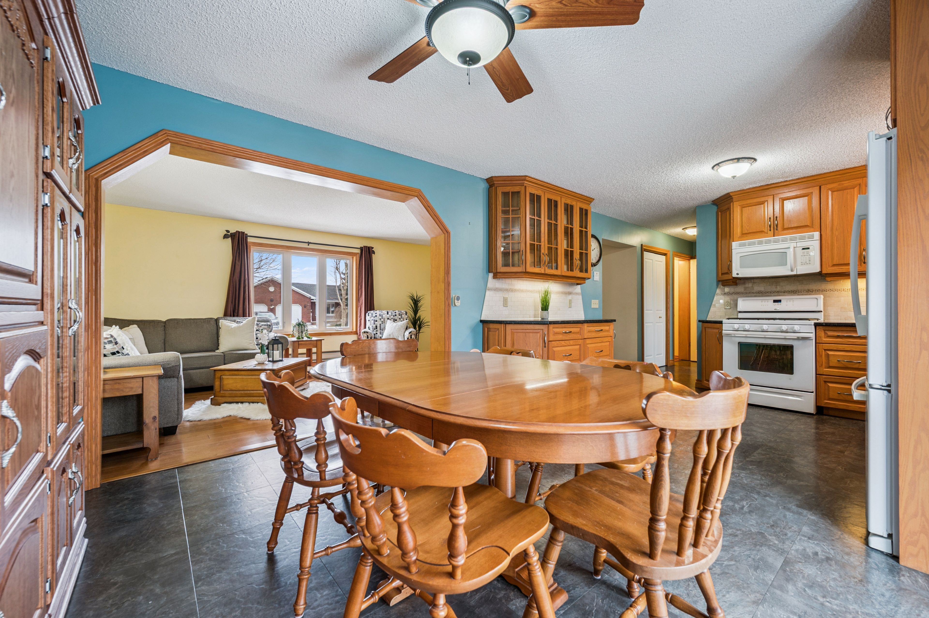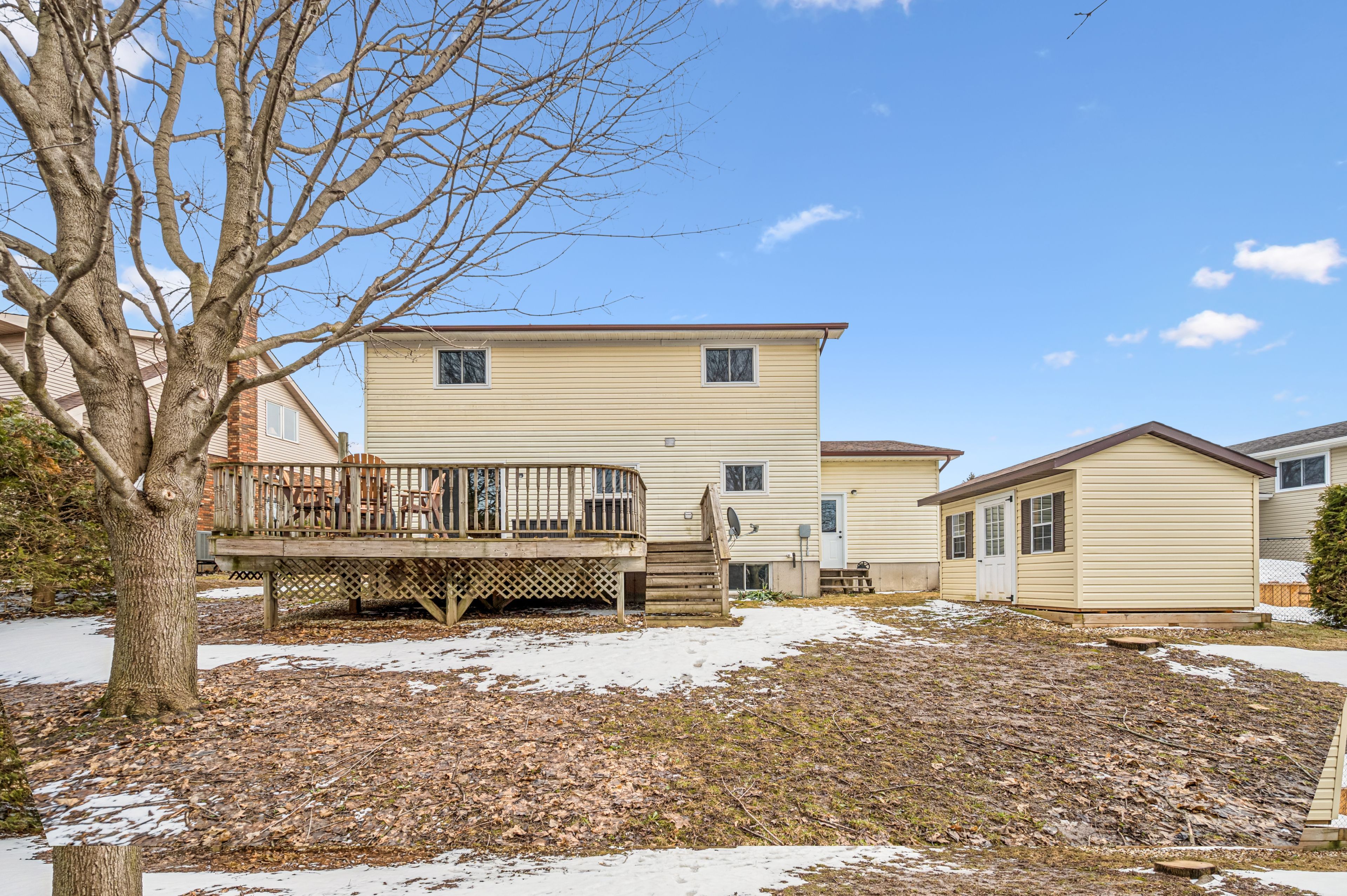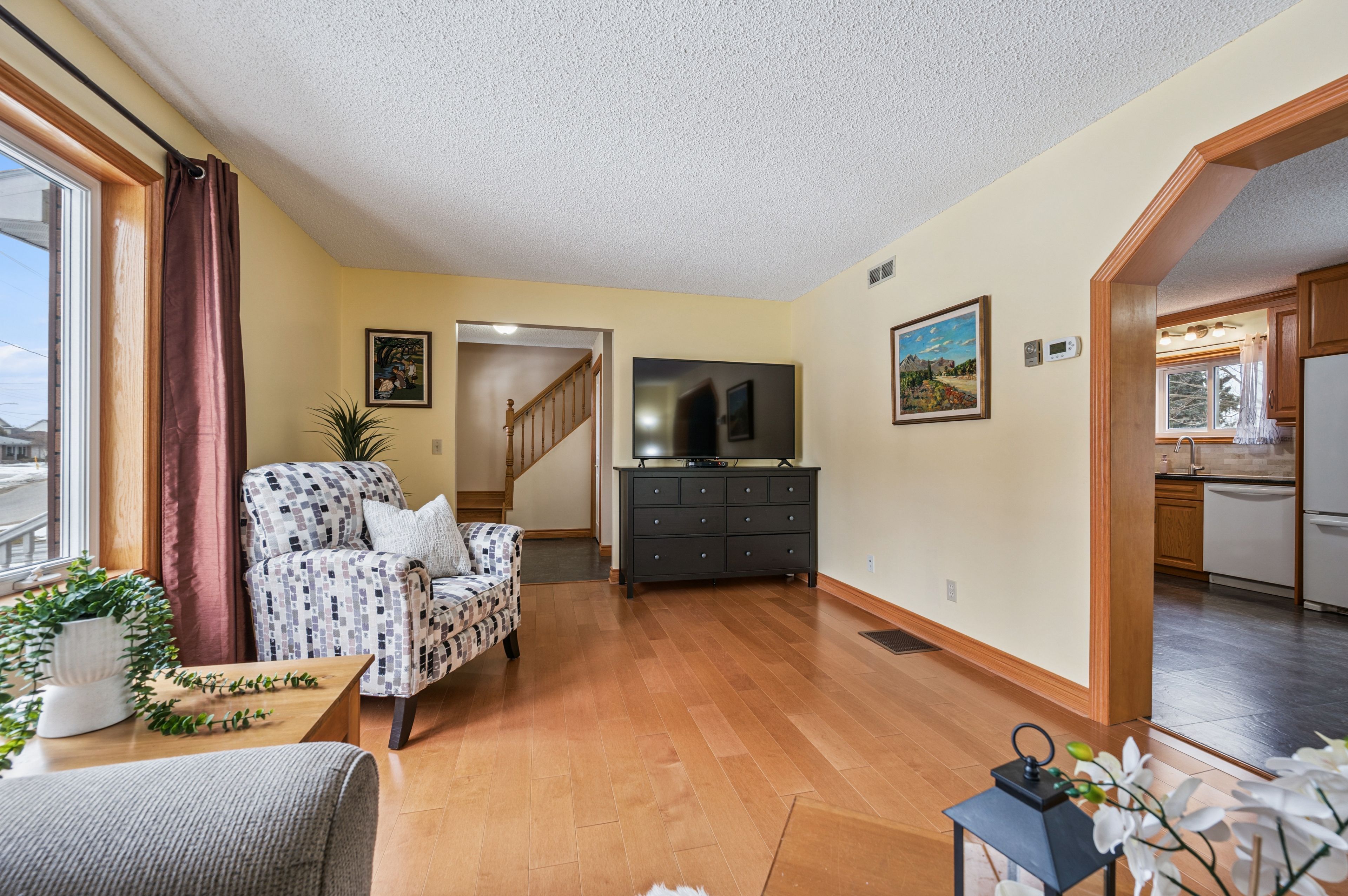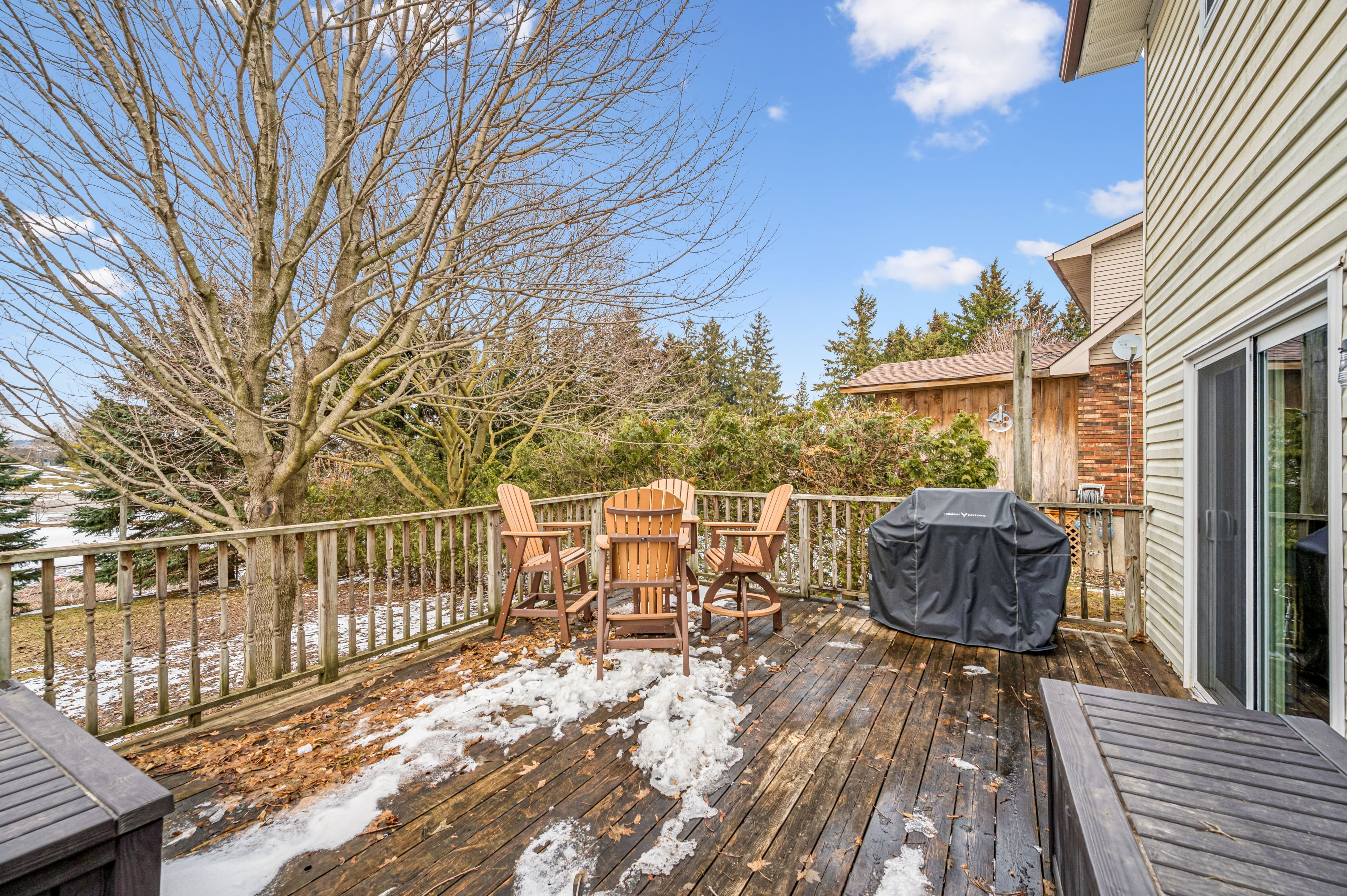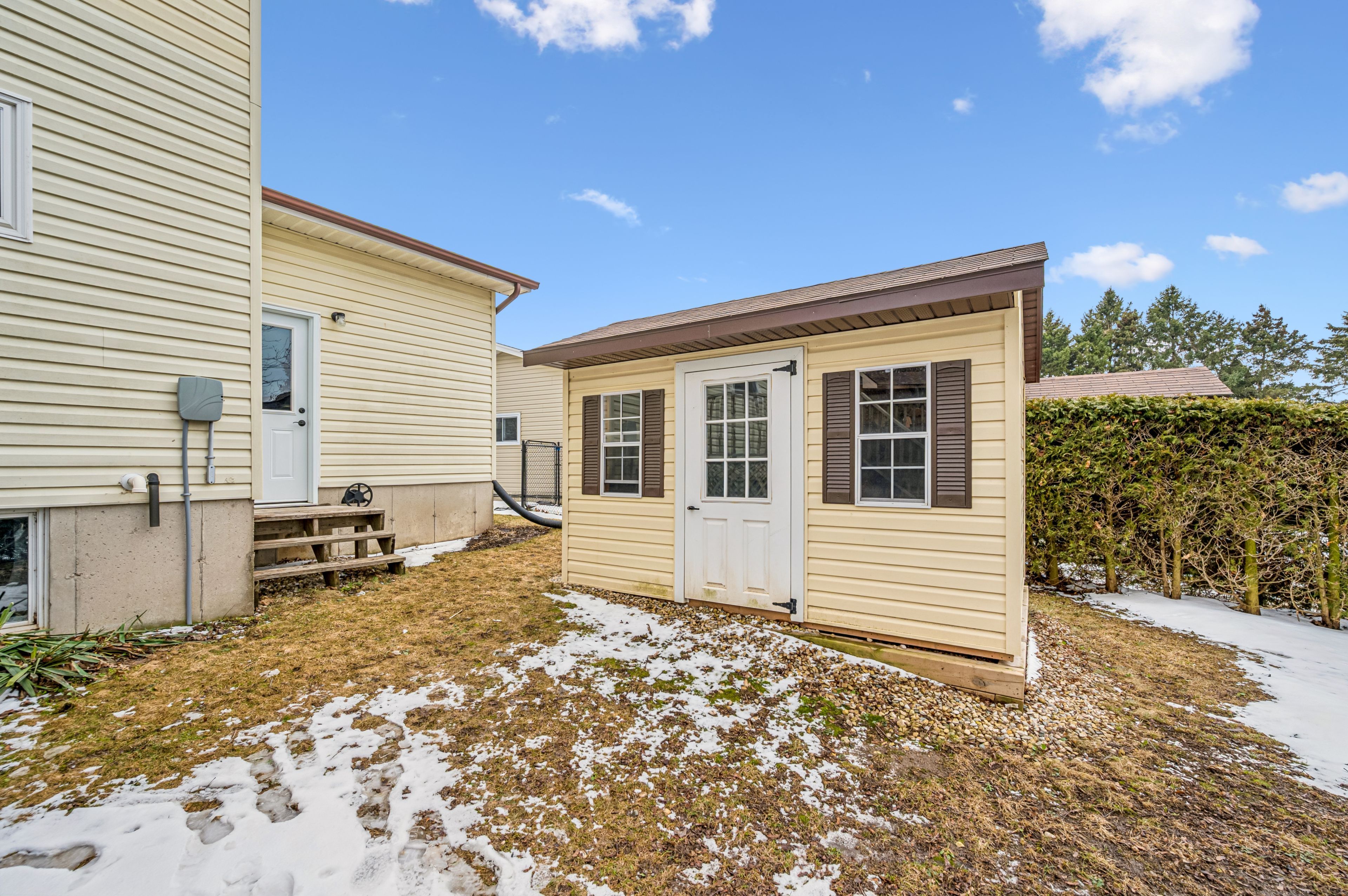 Welcome to small town living - where comfort, quality and space come together in a home that truly delivers. This quality built home offers an ideal floor plan for families looking to settle in and comfortably grow. Its' main floor features a tastefully updated and spacious eat-in kitchen, granite countertops, gas stove and sliding doors overlooking the mature and private 165' pie shape lot, delivering an exceptional outdoor experience with mature trees and landscaping that is increasingly hard to find. Large bright living room with updated maple hardwood floors, guest bathroom and laundry complete the main floor conveniences. The upper level offers 3 roomy bedrooms, king size primary bedroom with cheater ensuite and his & hers closets. The fully finished basement adds incredible versatility with a large rec room, ideal for entertaining. You'll also find an additional bedroom complete with walk-in closet, that adapts to your needs, whether it's for your growing family, guests, home office, hobby room or workout space. This home is not complete without the cold cellar and ample storage space - perfect for keeping your home organized without sacrificing living space. Many other updates to this home, include windows, doors, roof, furnace and a/c and more ... Ready for you to move in and enjoy ! Steps to public school and downtown shops, restaurants, community/sports centre, parks and theatre. Located in a welcoming family friendly neighborhood, not far from the city, this home offers the lifestyle you've been dreaming of - quiet streets, community feel and fresh air to breath - while still keeping you connected to everything you need. It's all here - now it just needs you. Don't miss your opportunity !