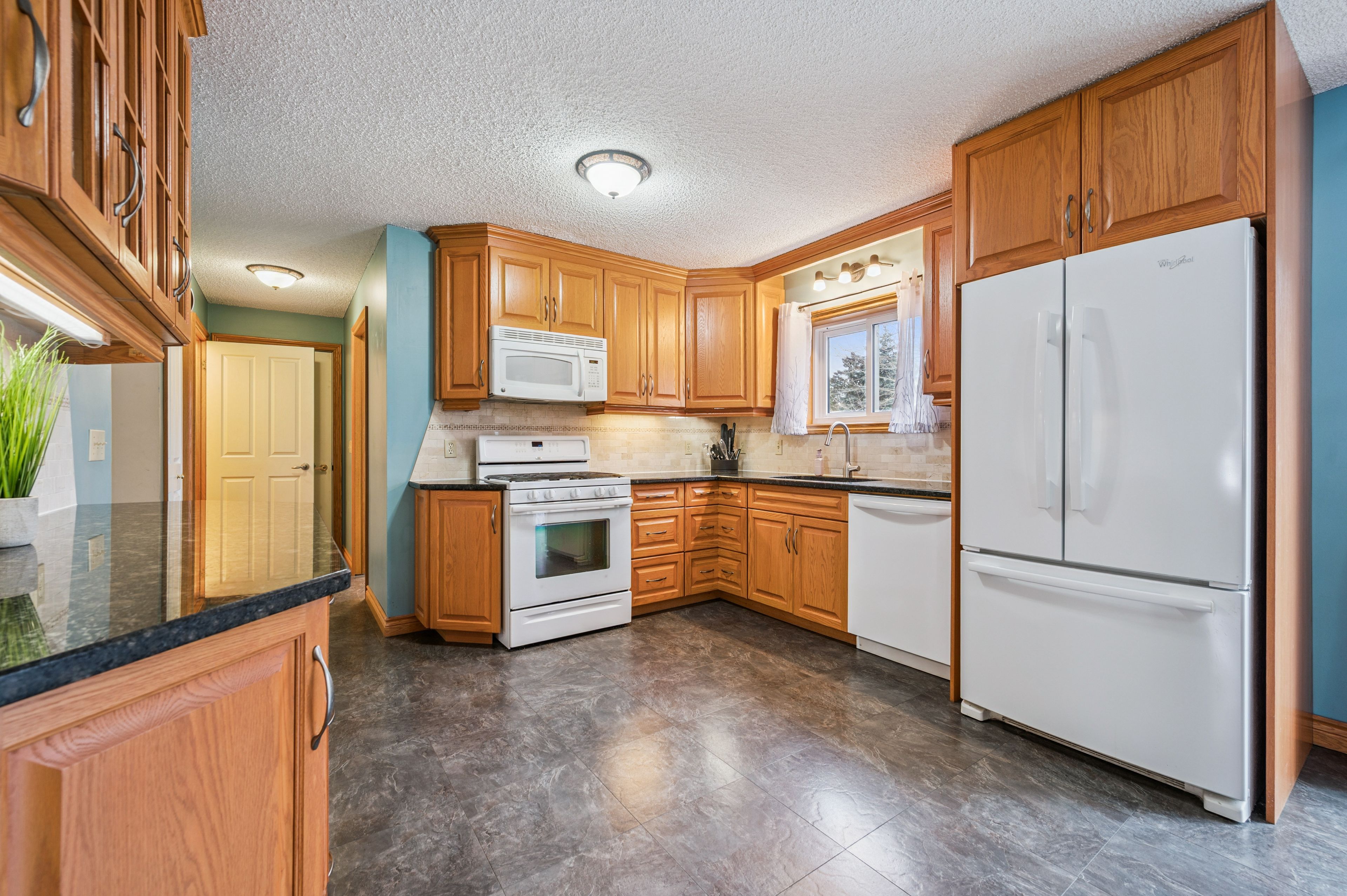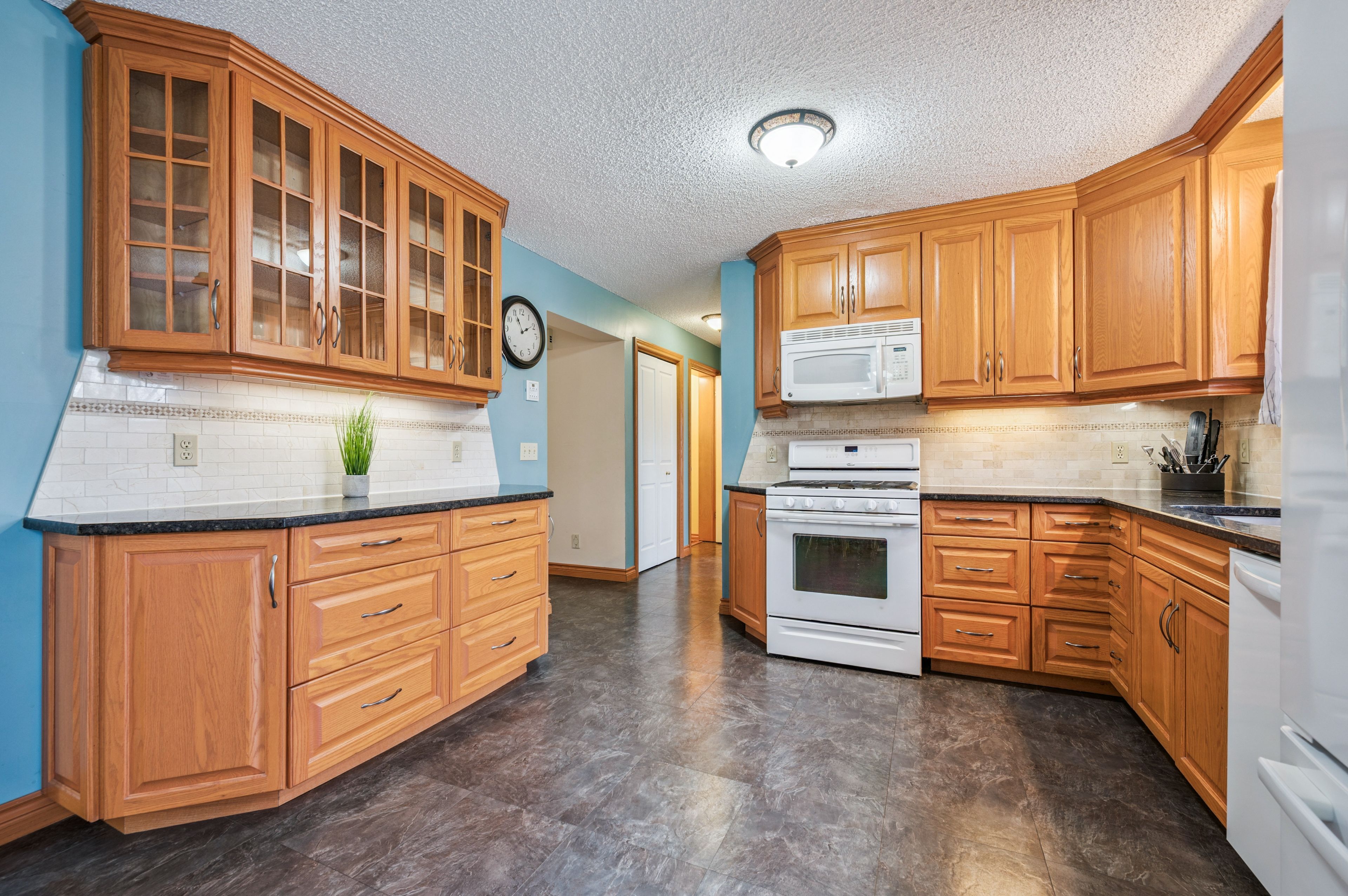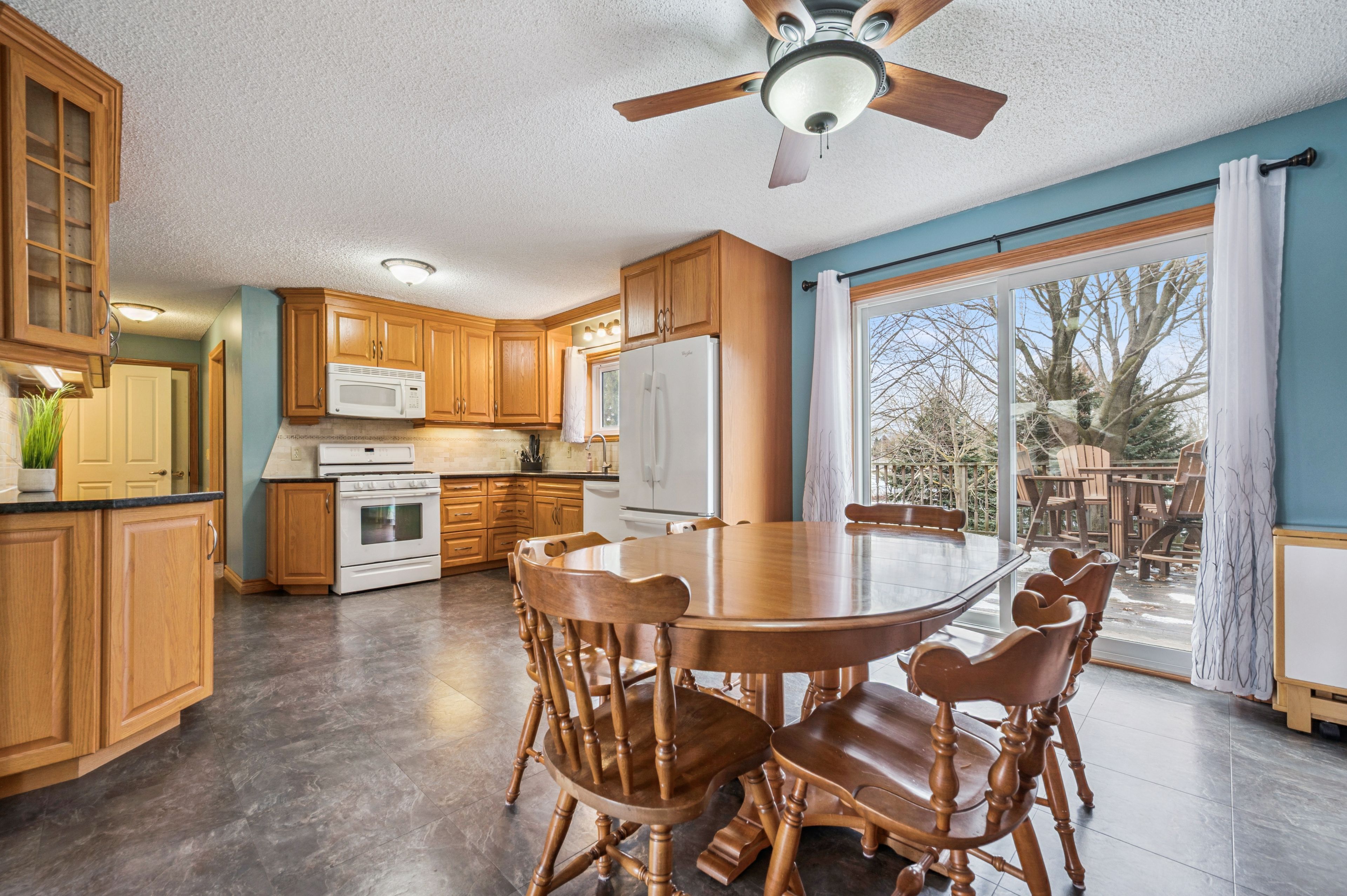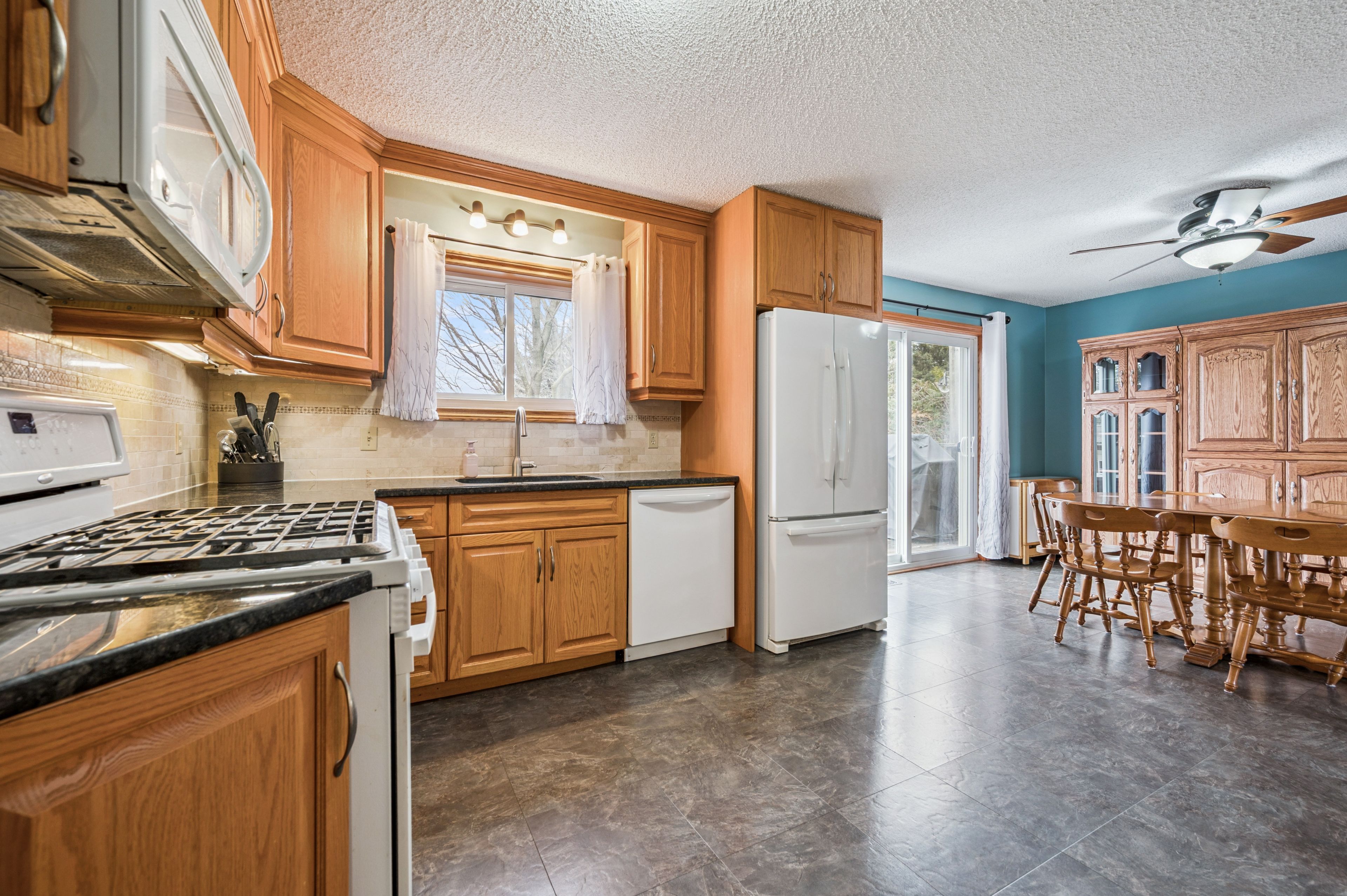 • Spacious eat-in kitchen with granite countertops and gas stove for family cooking.