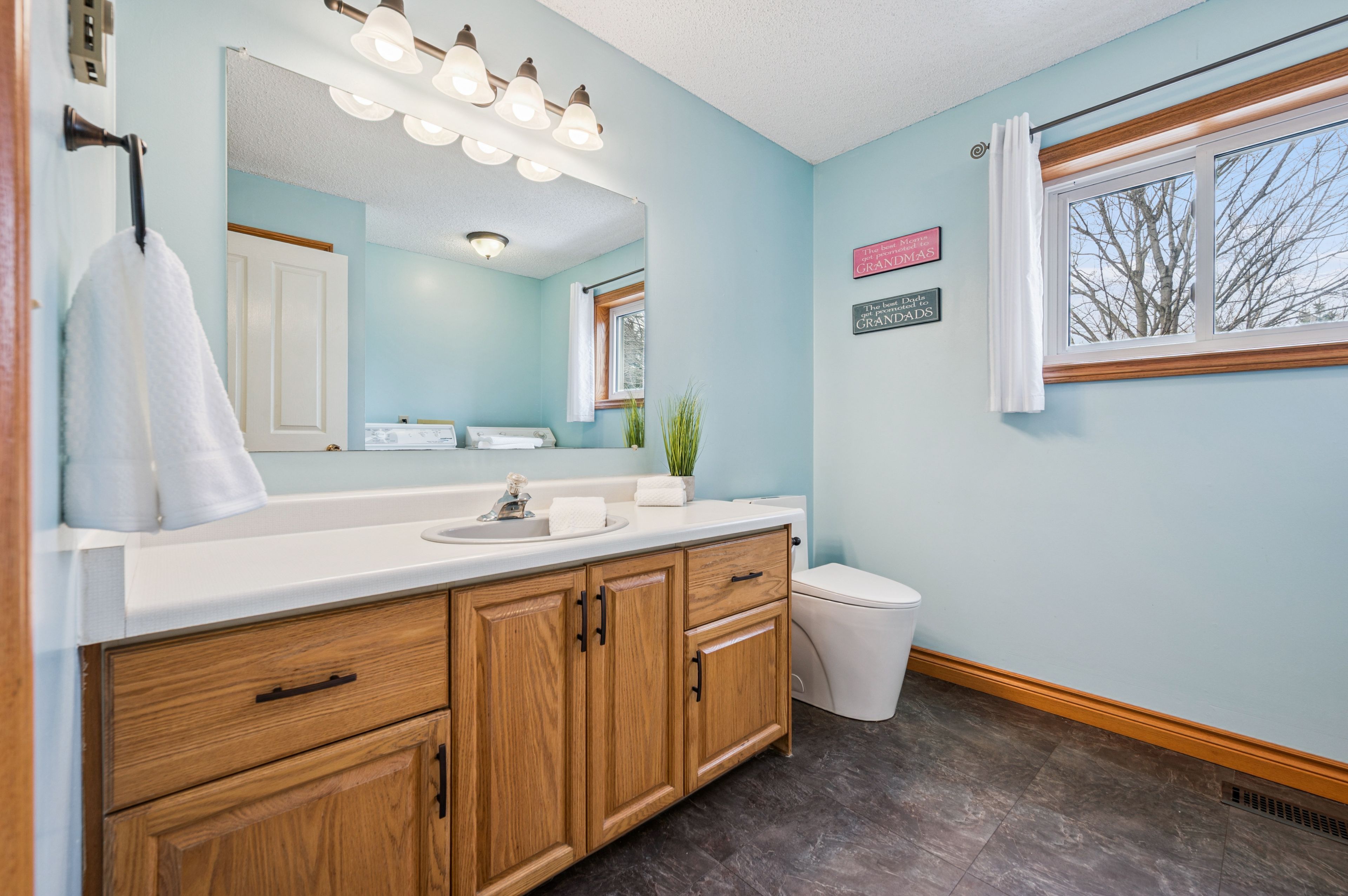 • Roomy upper level with three bedrooms, including a king-size primary suite.