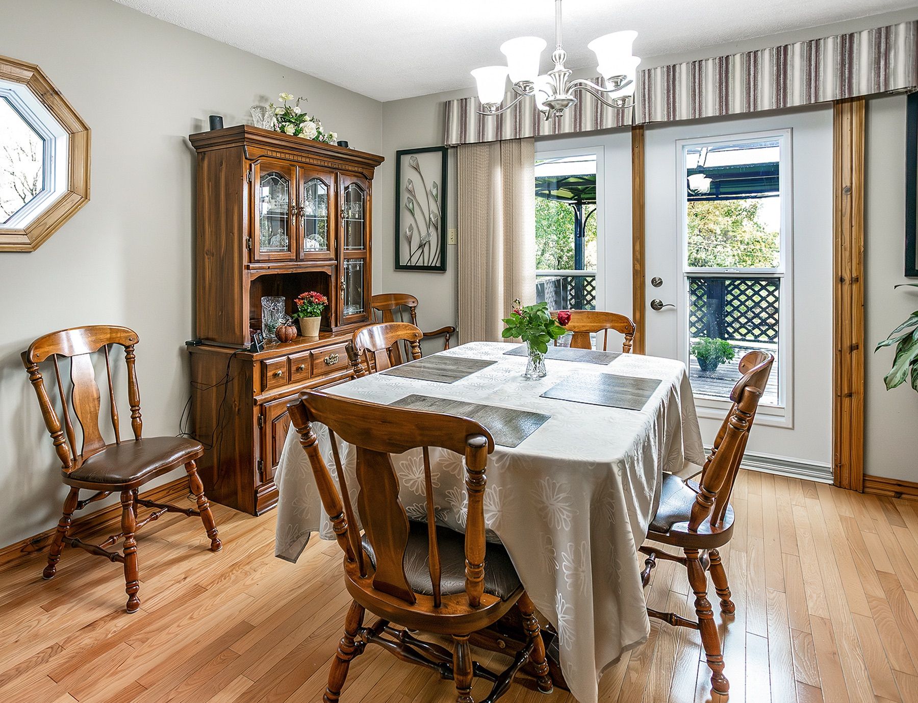 Welcome to this impeccably maintained side-split located in the desirable west end of morrisburg. This home is perched on a sizeable 0. 38-acre lot - a rare size for an in-town property. The lot is studded with mature trees and extends beyond the creek, where you'll find a power-provided shed, and a charming patio area ideal for for outdoor entertaining, or relaxing with a book. For your convenience there are three rear-yard access points from the home, and three separate patio or deck areas, creating a seamless connection between indoor and outdoor living. Inside, you'll find looks can be deceiving as this home offers much more space than expected, with quality woodwork and a comfortable layout that includes a bright kitchen, dining, and living area on the main floor. The upper level features three bedrooms and two bathrooms, while the lower level offers a welcoming rec room complete with a gas stove, and an entertainment/bar unit - ideal for gatherings. Enjoy convenient inside-access from the double garage to the laundry/2pc bathroom area on the lower level of the home. The basement provides generous headroom and additional flexible space to suit your needs. Situated in a great family-friendly neighbourhood, this home combines warmth, functionality, and location. Come take a look at this quintessential family home.