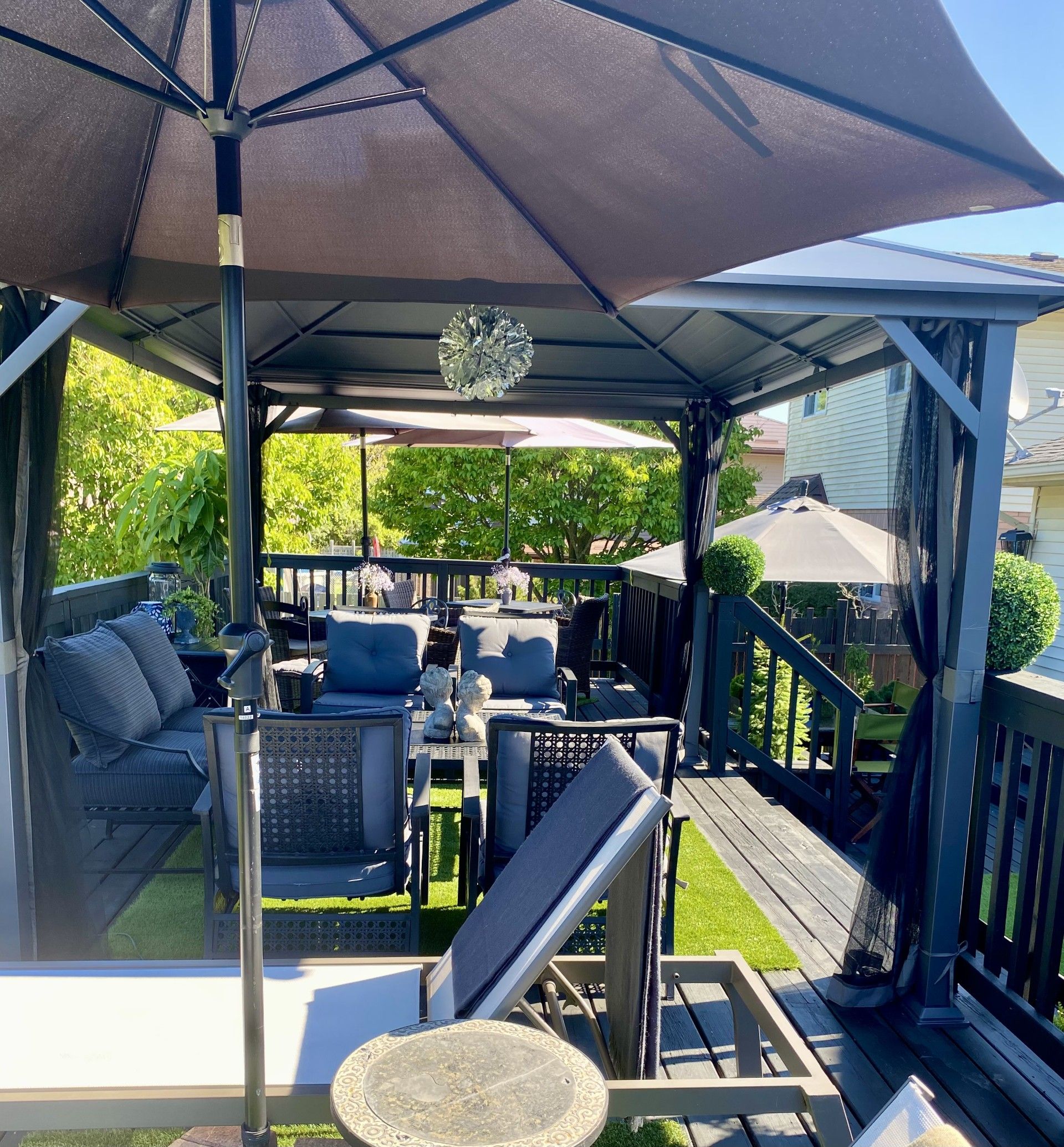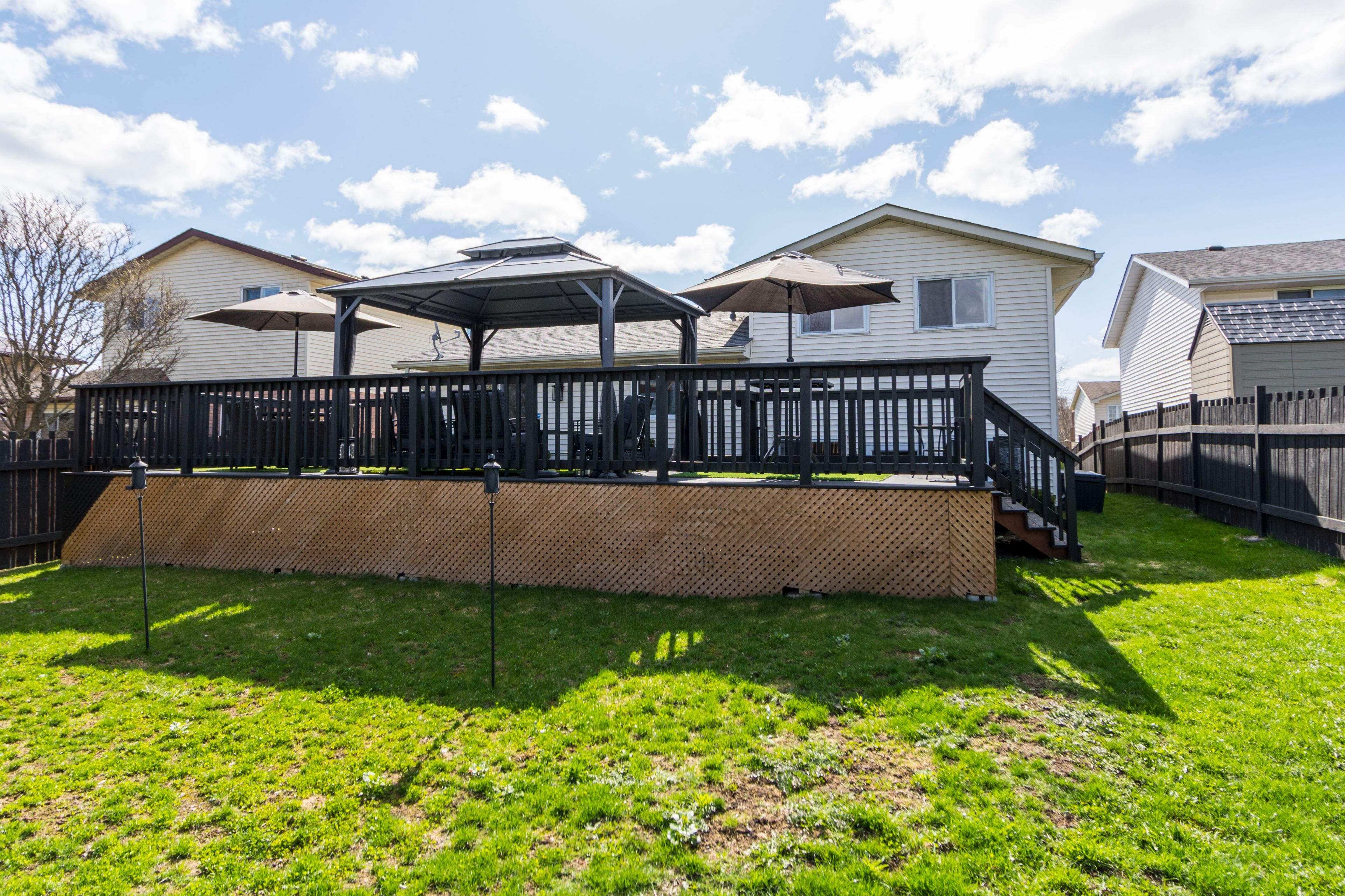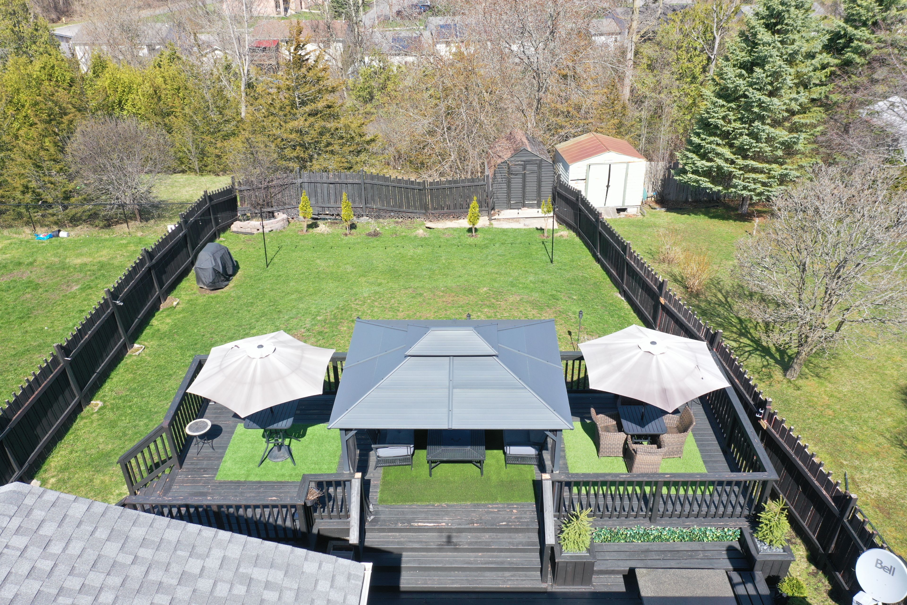 • Private backyard featuring multi-level decking and a garden shed.