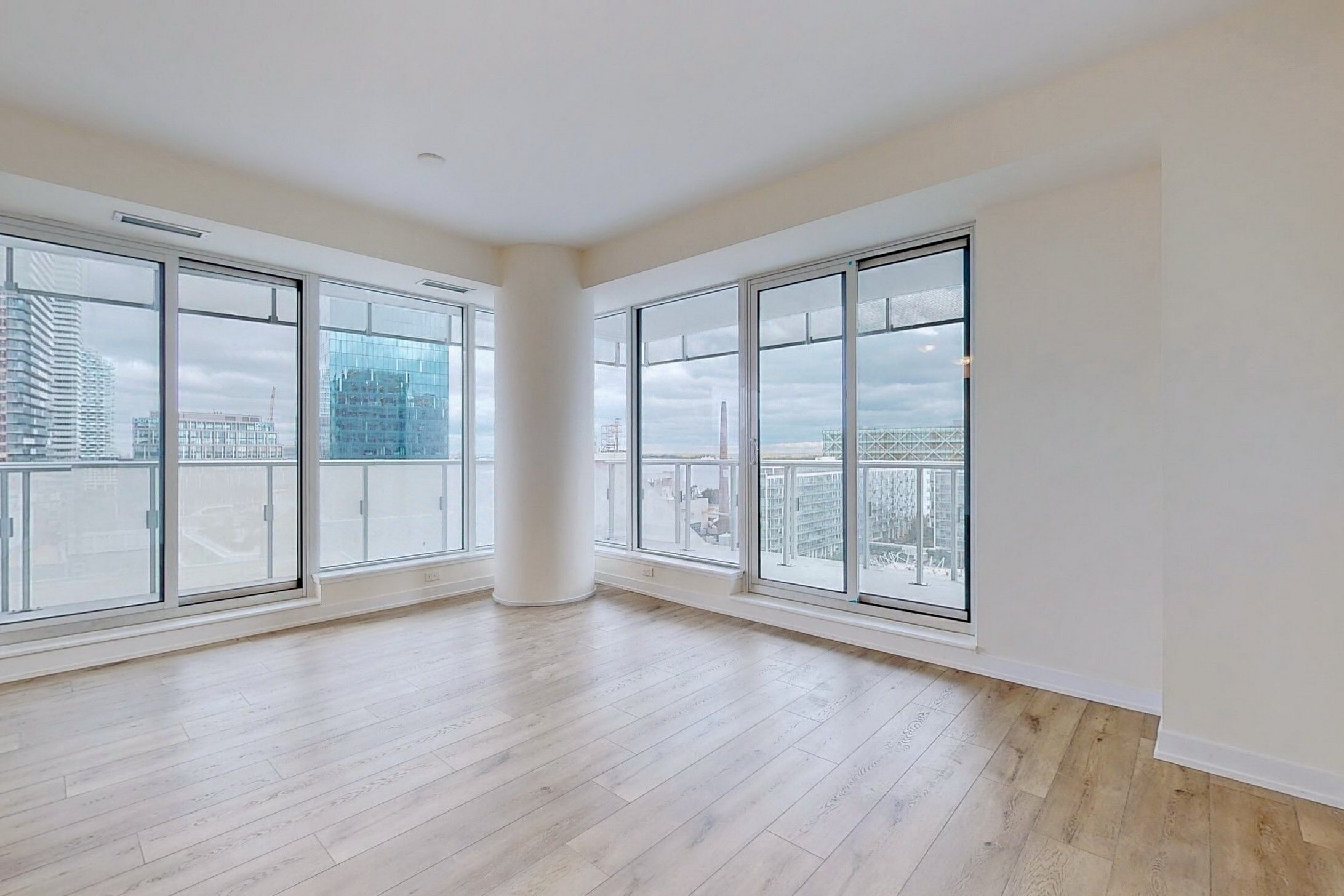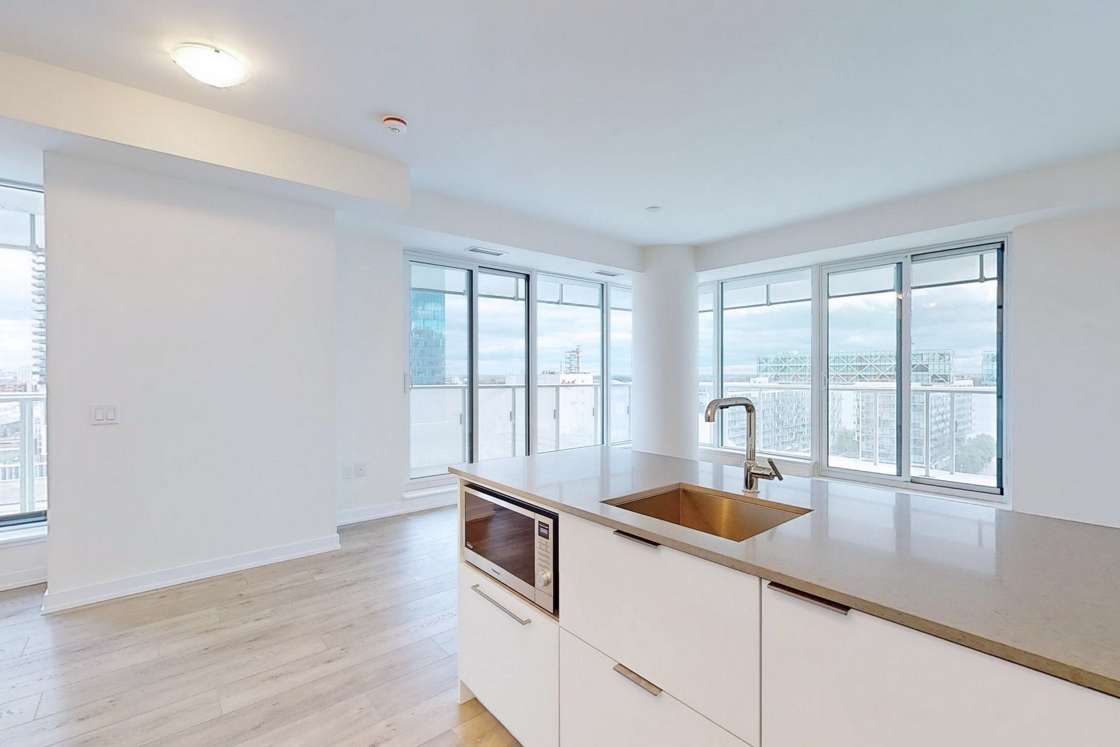 • Stunning water and skyline views from a bright, open-concept living area.
