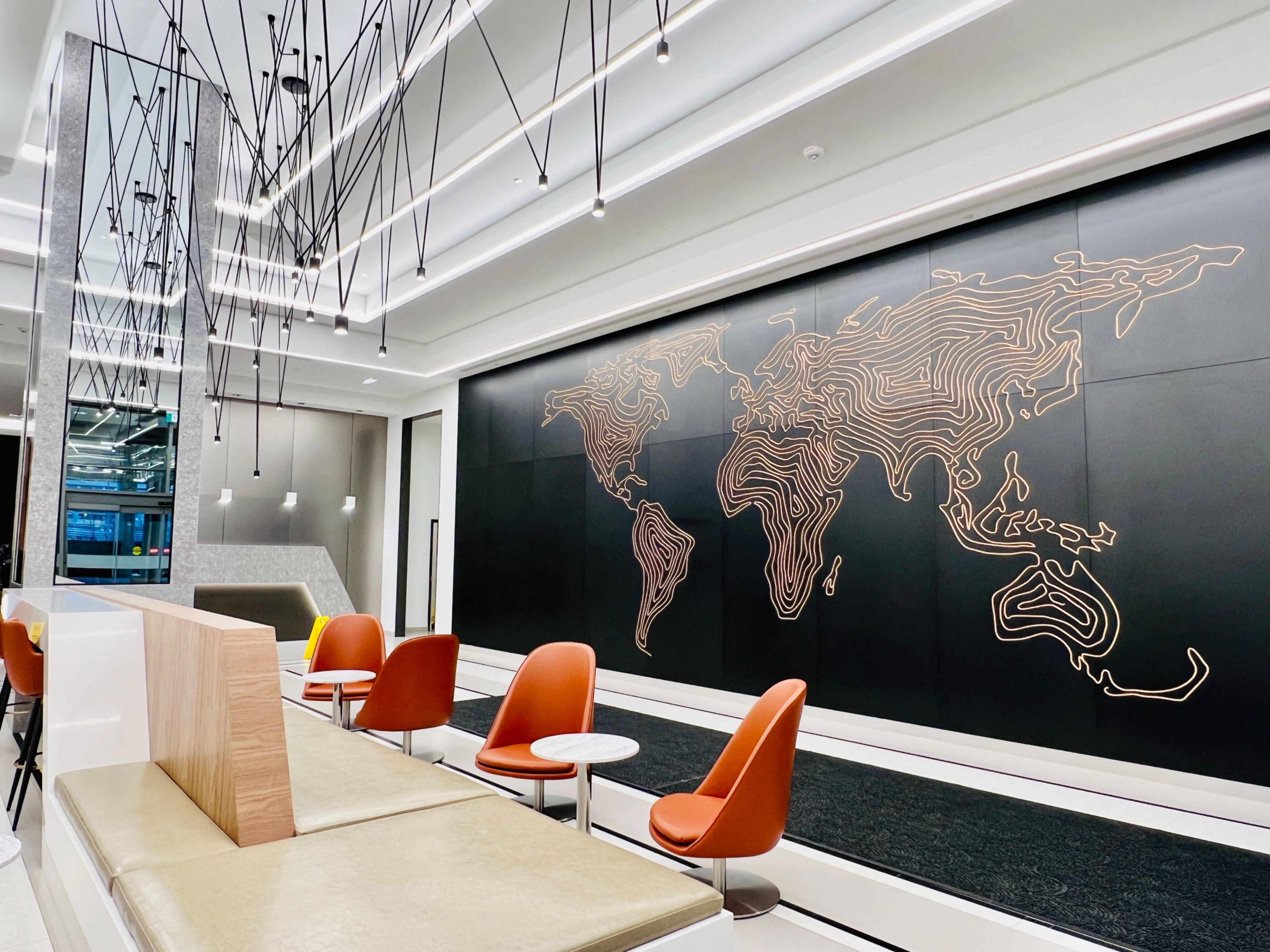 • Spacious living room featuring breathtaking lake views and floor-to-ceiling windows.