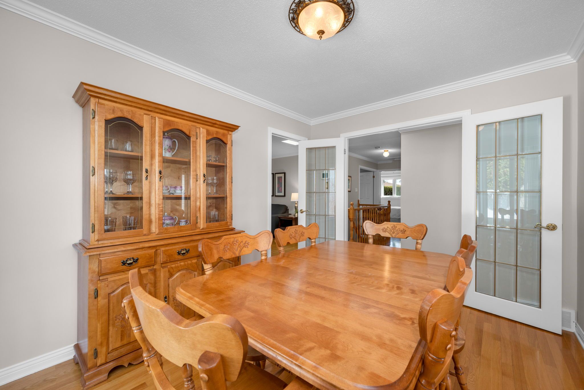• Formal living and dining rooms with hardwood flooring and crown moulding.