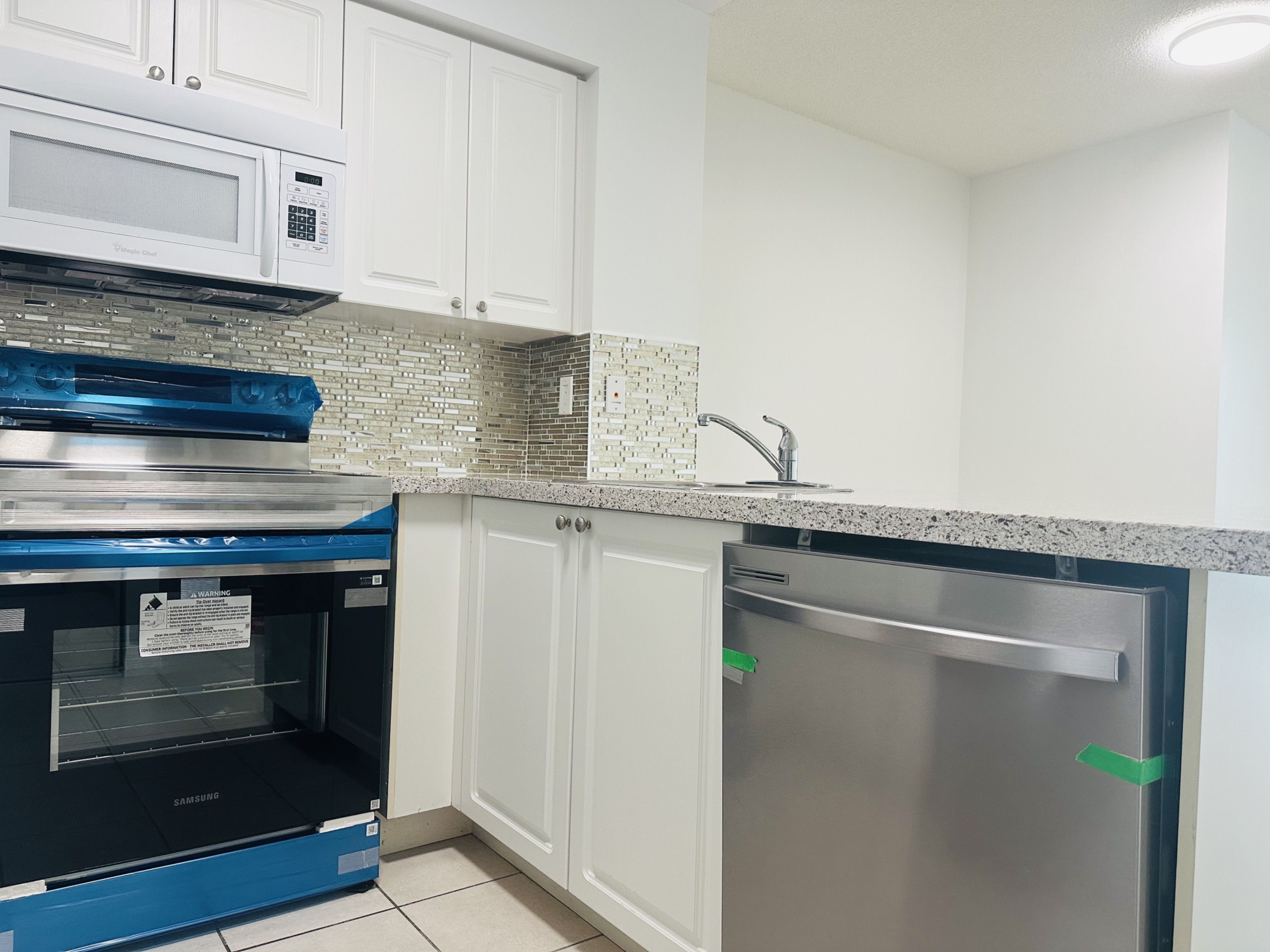 • Modern kitchen featuring new quartz countertop and stainless steel appliances.
