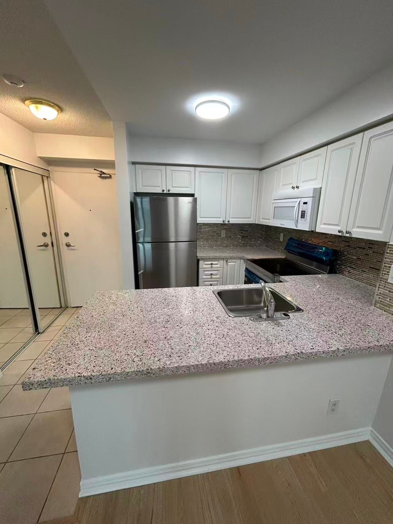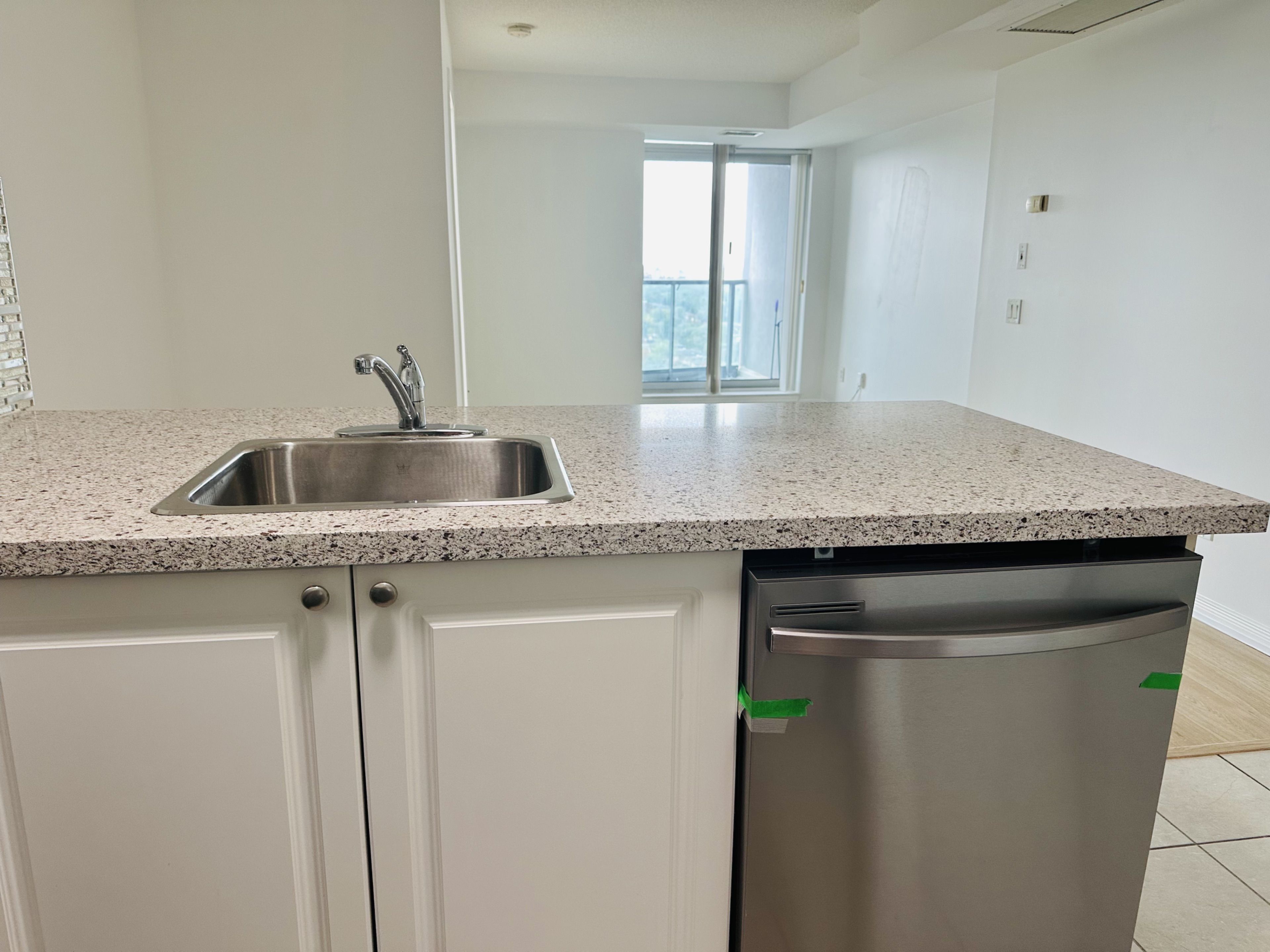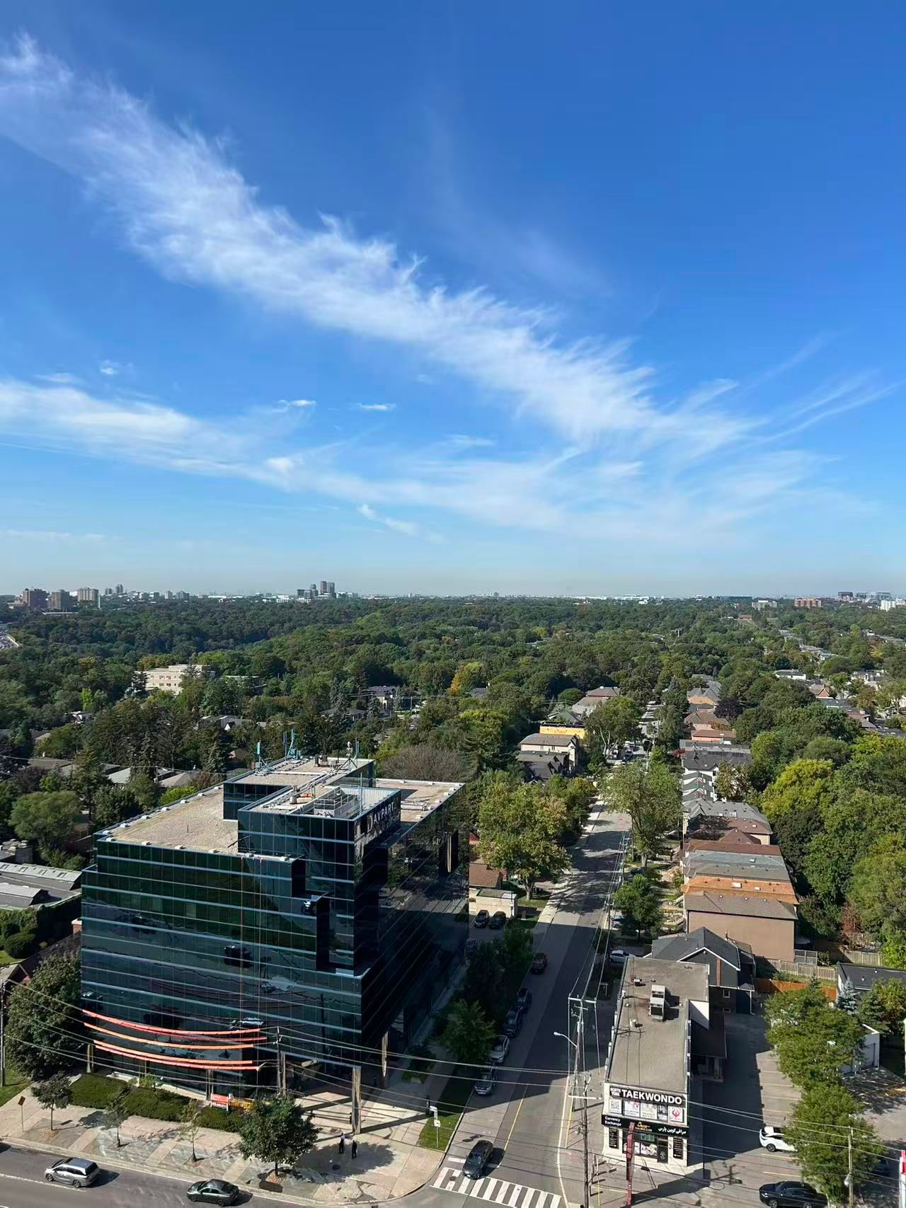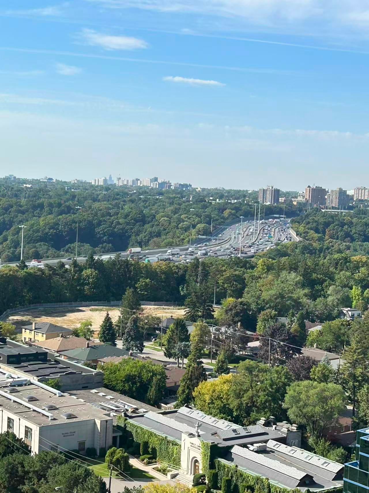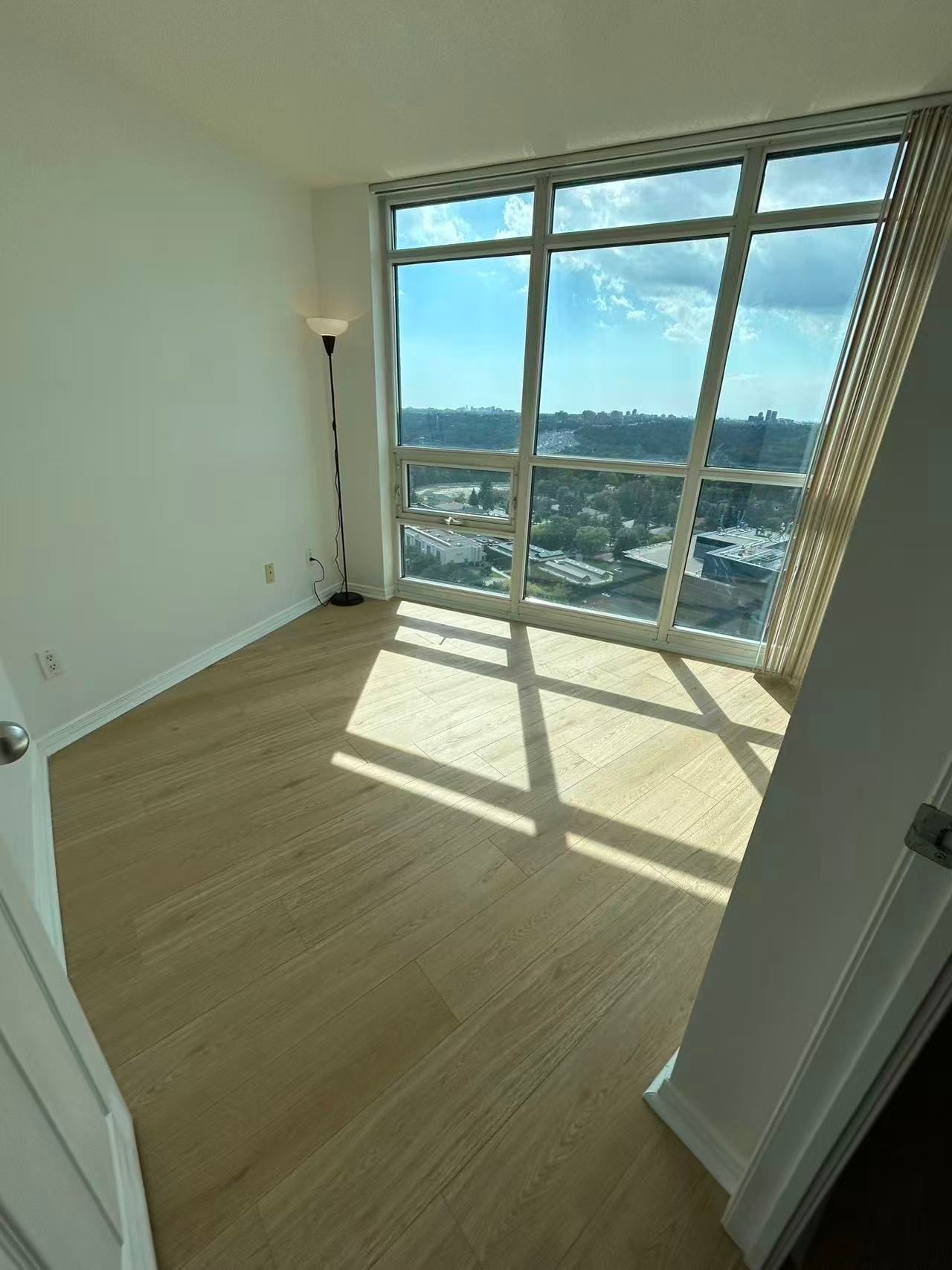 Fantastic 1-bedroom condo with breathtaking, unobstructed views of the toronto skyline including a clear view of the iconic cn tower! Bright and spacious, this unit features floor-to-ceiling windows that fill the space with natural light, plus trendy new flooring throughout. The modern kitchen boasts a brand new quartz countertop and brand new stainless steel appliances, including a fridge, stove, and dishwasher making it both stylish and functional. The entire renovation has been professionally completed using premium materials, ensuring top-quality finishes and attention to detail throughout. This unit is in absolute move-in condition just bring your furniture and enjoy! Located in the heart of north yorks most desirable area, just steps to shops, restaurants, and the ttc. The perfect blend of comfort, convenience, and stunning city views