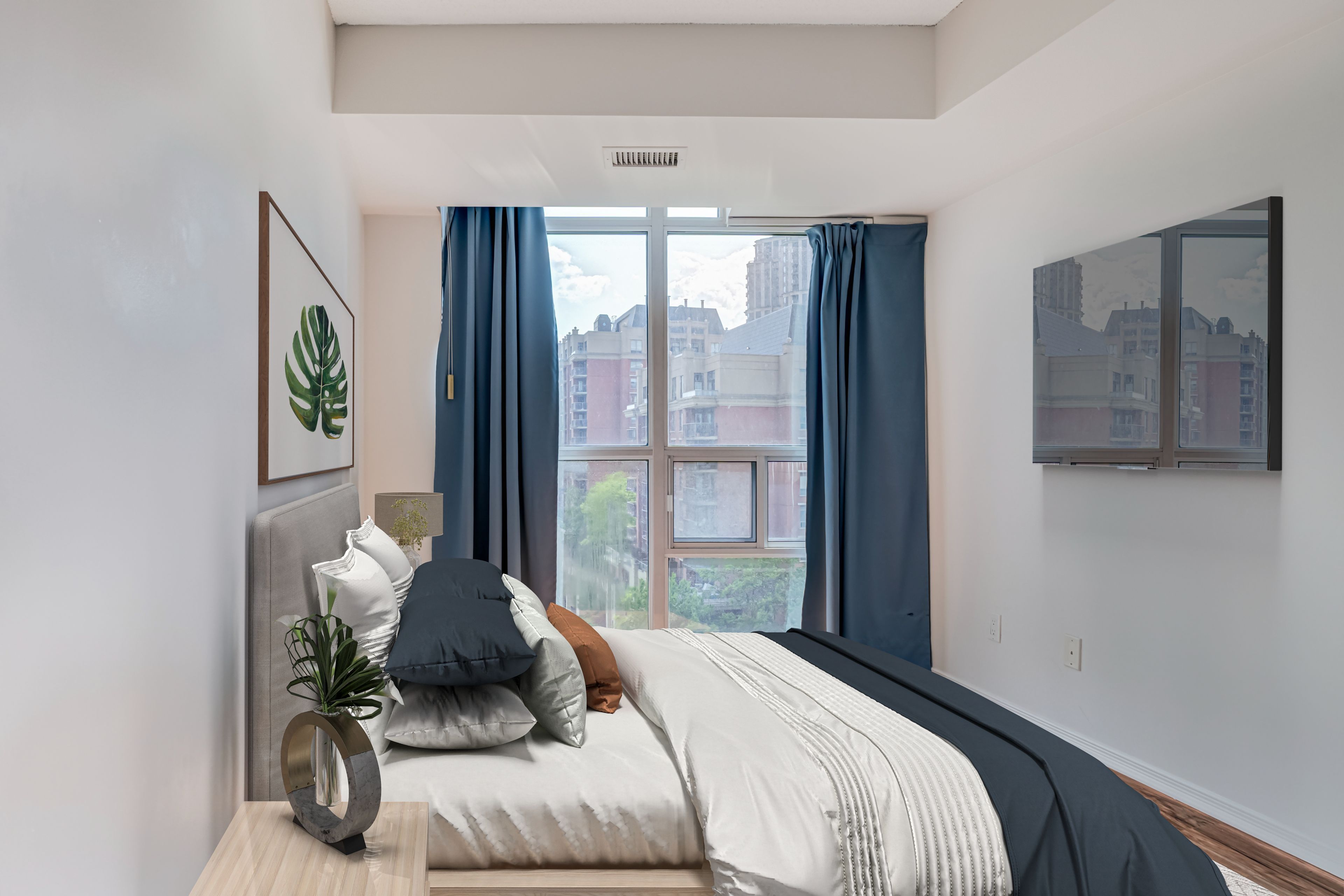 • Sun-filled living area with floor-to-ceiling windows and park city skyline views.