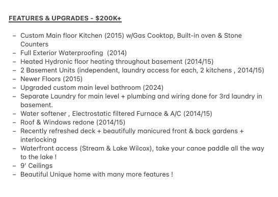 • Finished walk-out basement with two self-contained apartments.