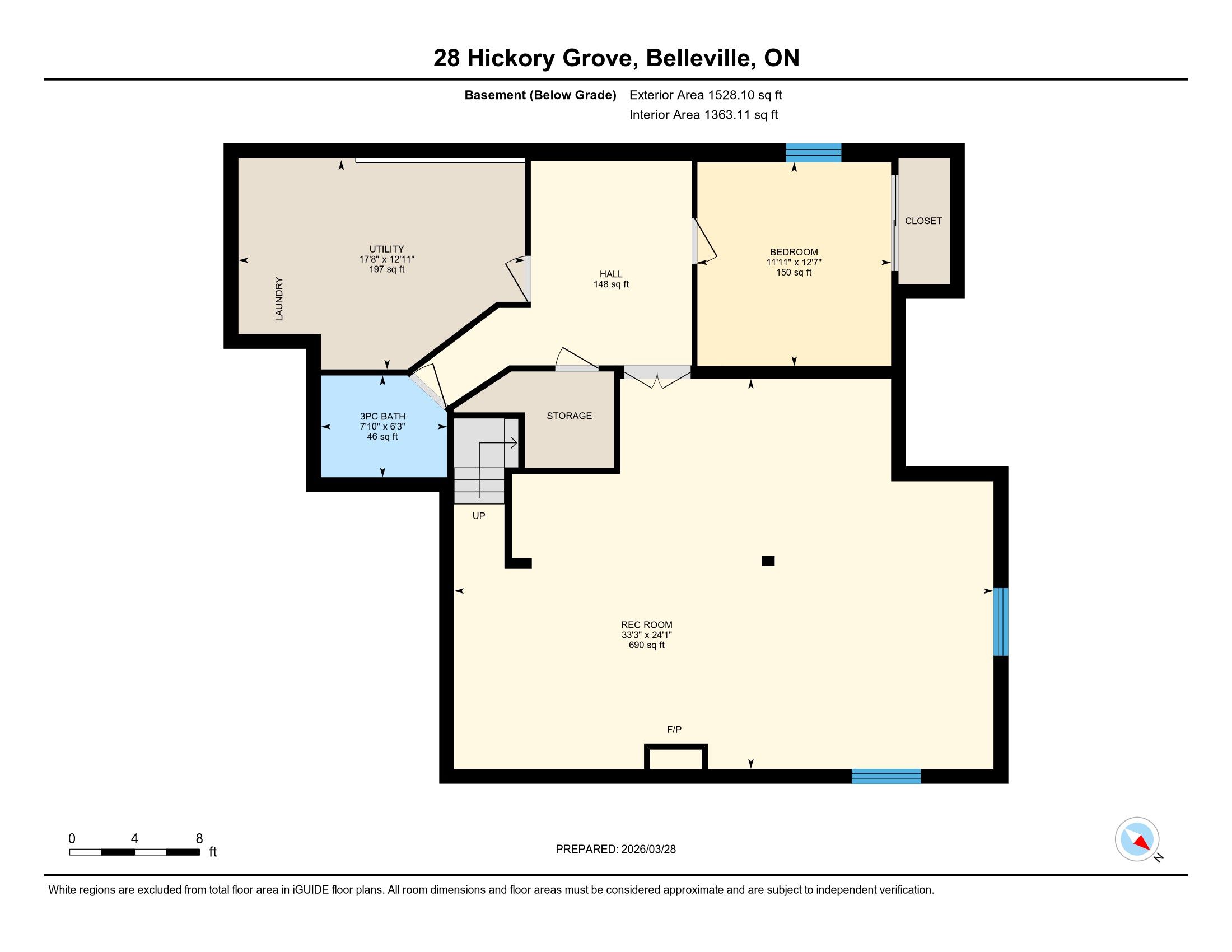 Welcome to 28 hickory grove, an all brick bungalow nestled in one of belleville's most sought after east end neighbourhoods. Set on a quiet, family friendly street, this well maintained home offers the perfect blend of comfort, functionality, and location. Featuring 3+1 spacious bedrooms and 3 bathrooms, this home boasts a bright and inviting main floor layout with generous principal rooms, large windows, and an abundance of natural light. The kitchen offers ample cabinetry and workspace, flowing seamlessly into the dining and living areas ideal for everyday living and entertaining. The primary suite includes a private ensuite and ample closet space, while the additional bedrooms provide flexibility for family, guests, or a home office. The full basement offers incredible living space. With a large rec room, bedroom and bathroom all newly renovated. Similar homes in the area have successfully incorporated secondary living spaces, adding both versatility and value. Outside, enjoy a private yard perfect for relaxing or entertaining, along with an attached garage and double driveway for ample parking. Located just minutes from schools, parks, shopping, and the hospital, this home sits in a highly desirable neighbourhood known for its strong community feel and convenient access to amenities. Whether you're a growing family, downsizer, or investor, this is a fantastic opportunity to own in one of belleville's most established and desirable areas.