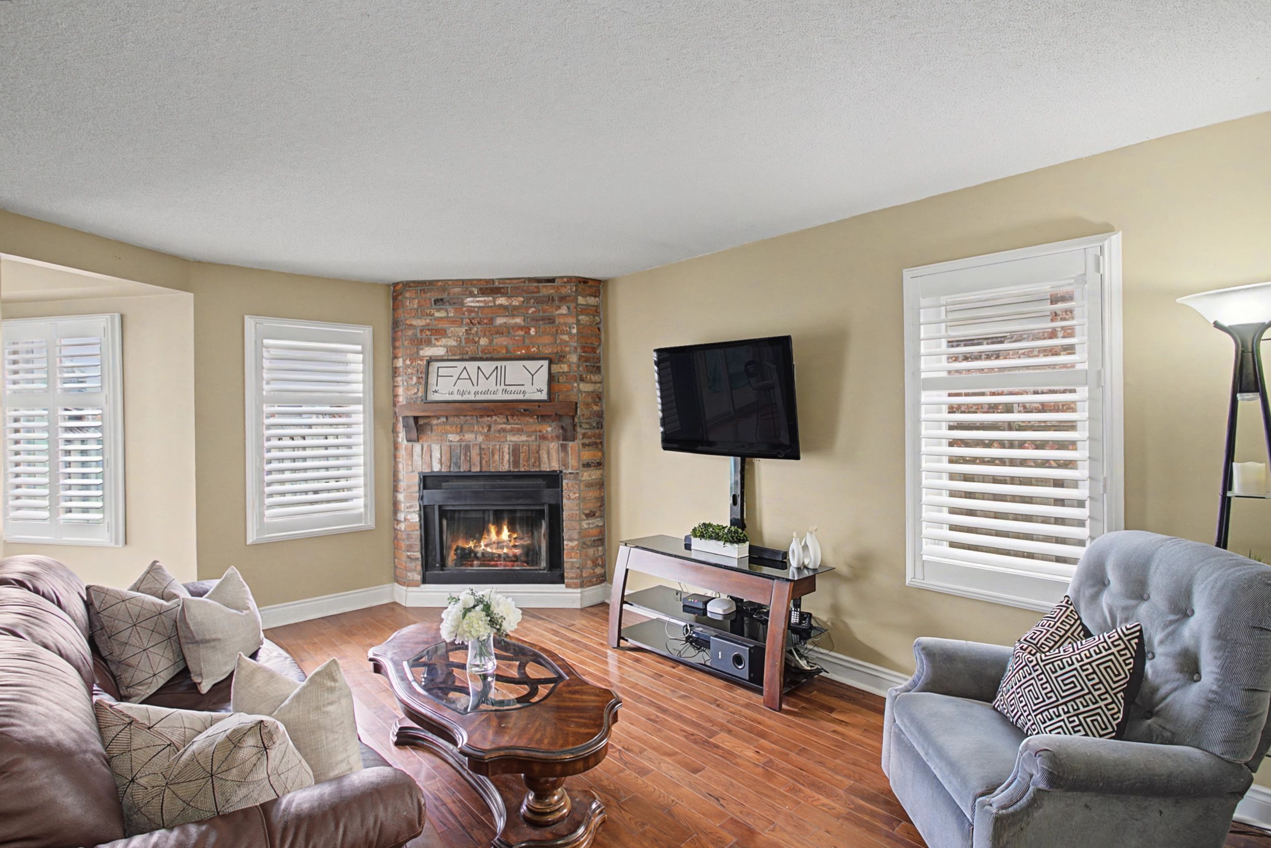 • Open-concept main floor with hardwood flooring and inviting gas fireplace.