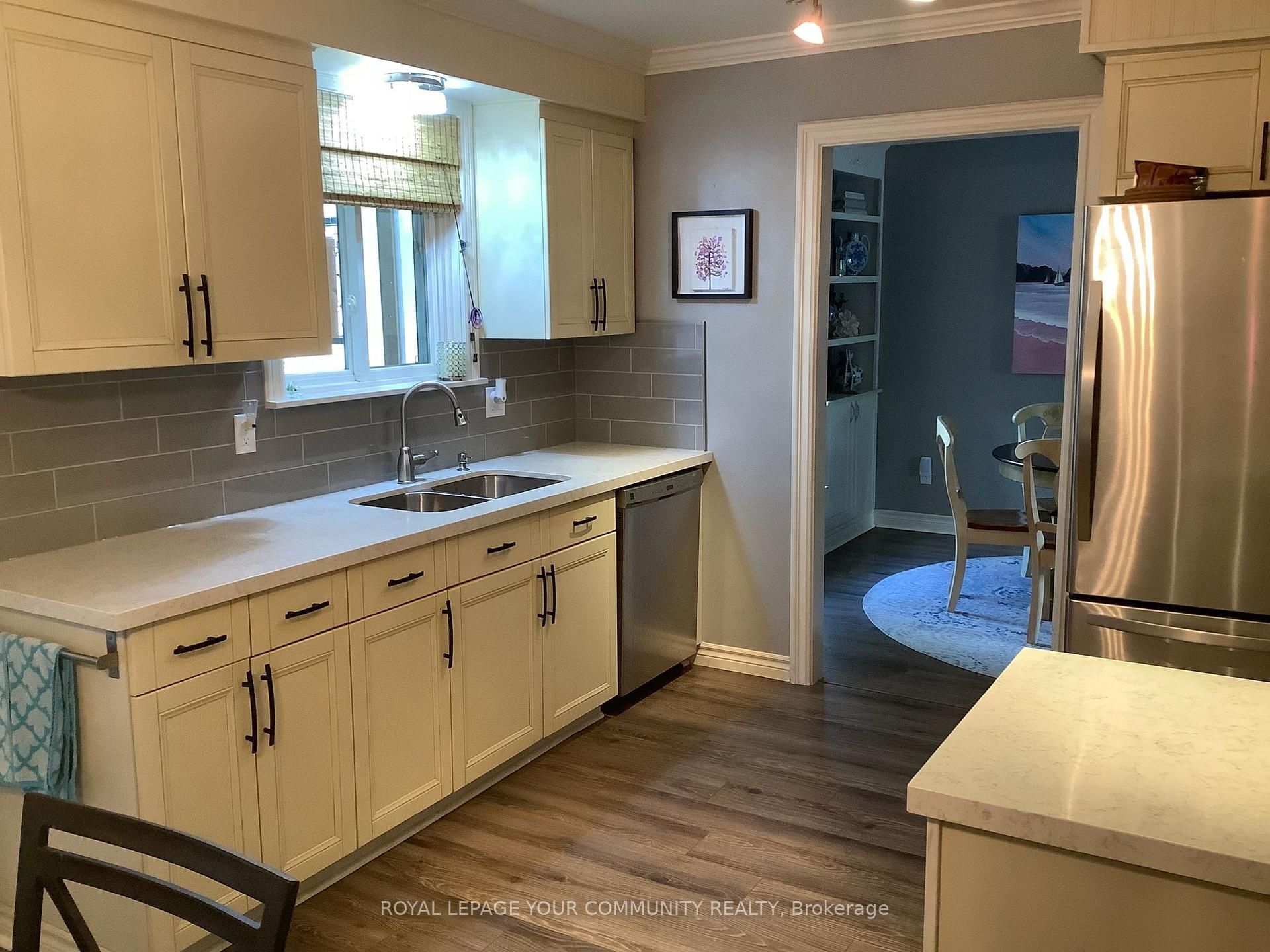 Located in barrie's northeast end, in the much sought after north shore neighbourhood ! Stepsto lake simcoe's kempenfelt bay on johnson beach and the north shore trail, for bird watching,running, nature walks etc. This renovated in 2025, stunning raised bungalow shows pride ofownership, with charm, warmth, and functionality. Well thought out built-ins, banquet seating in breakfast area. And wainscoting in foyer. Many interior designer touches and architectural elements make this home special. Main level boasts 3 spacious bedrooms and recently renovatedbathrooms. Primary bdrm with ensuite ( rare in the neighboourhood ) and w/i closet. New glitzy light fixtures throughout ( 2025 ). Very large living/dining areas. Kitchen renovated 2025 for the sale ( quartz countertops, new back splash, new paint ). New paint throughout ( 2025 ) new roof ( 2023 ) newer windows throughout. High end laminate flooring ( 2020 ) exterior of house painted ( 2019 ). Lower level with 2 large bedrooms, 2 pc bathroom, kitchenette, and very large living area with above grade windows, and bar area for entertaining. 2 large storage areas for bikes, etc. This is a must see home with too many more extras to mention ! Natural gas line for bbq installed. Washer ( 2019 ) dryer ( 2016 ). Extra attic insulation to r50, new patio sliding door with built in blinds. Sump pump ( 2014 ).