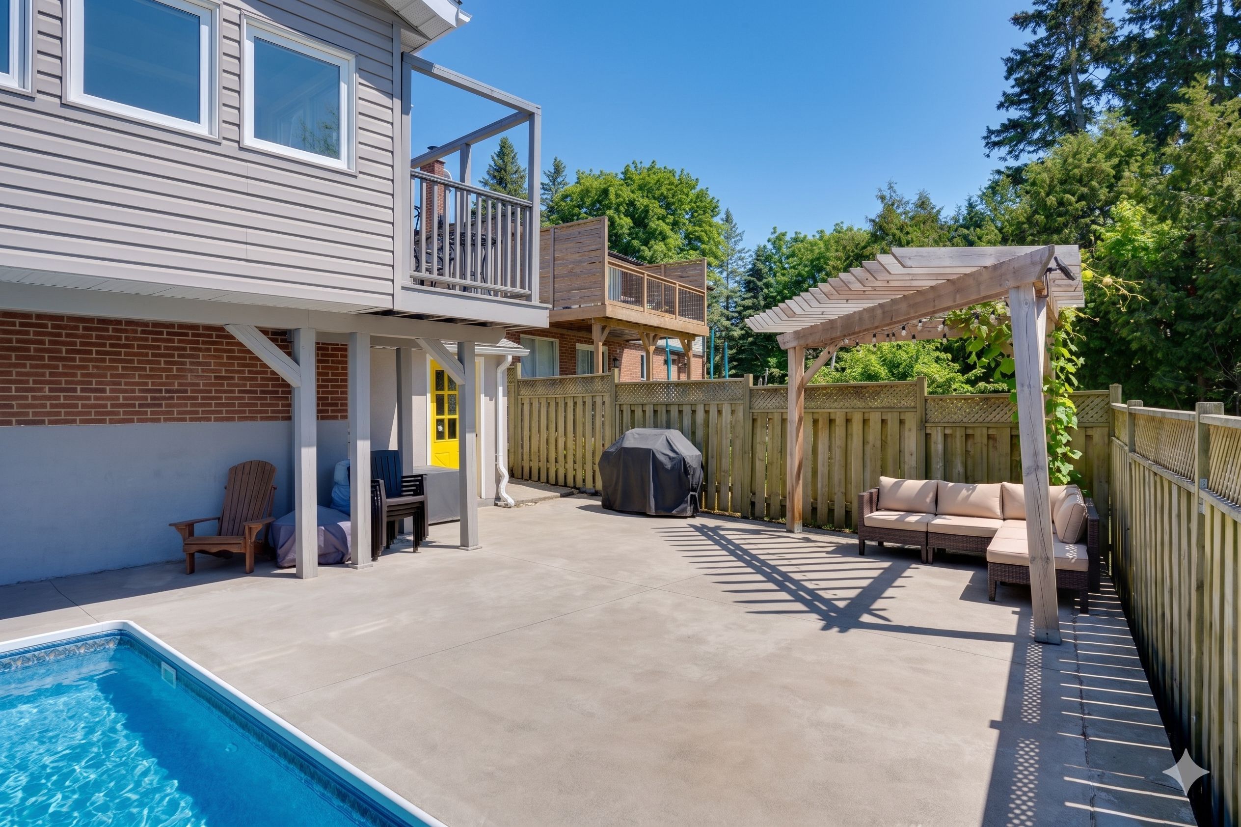 Rare renovated bungalow with 70 ft of frontage and a large in ground pool, ideal for downsizers who still love to entertain while being just 3 minutes to highway 400 for easy access to vaughan and toronto. Offering 1,381 sq ft on the main level (mpac) plus a fully finished walk out basement, this home features over 2,500 sq ft of total living space, a rare find in bungalow living. Extensively updated throughout with a new roof, new windows, fully renovated bathrooms, and rejuvenated electrical, this is a true turnkey home. Excellent curb appeal with a charming portico and award winning landscaping, plus a driveway with parking for up to six vehicles and no sidewalk. The bright open concept main floor includes spacious living and dining areas, a beautiful breakfast nook with balcony access for bbqing, and a stunning recently renovated kitchen. Two bedrooms include an oversized primary with dual closets that can easily convert back to a third bedroom. The private low maintenance backyard is built for entertaining with a large in ground pool featuring new equipment and heater, a pool house, and direct access from the driveway. The high ceiling bright walk out basement extends the space with a renovated rec room, additional bedroom, full bathroom with pool access, laundry, and workshop.