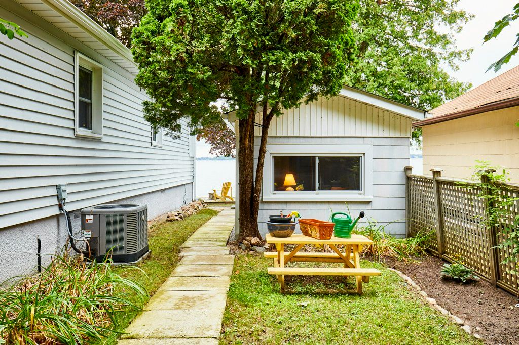 Waterfront living at its best! Welcome to this unique waterfront property on lake scugog offering a picturesque lifestyle with both westerly & northern exposures which provide breathtaking sunsets and sunrises. Situated on a tranquil private lane, this expansive, flat, treed waterfront lot is perfect for family fun activities & games on the front yard while the lakefront offers swimming, watersports & fishing during the summer months and snowmobiling, skating & ice fishing during winter. This home has charming tongue & groove cedar walls, a floor to ceiling gas fireplace between the kitchen & spacious living room and features a loft area overlooking both. The light filled, welcoming dining area just off the kitchen leads to a cozy family room which has a walkout door to the deck overlooking the lake. Three bedrooms plus the loft allow for plenty of room for family & overnight guests. Complimenting all of this is a cute insulated bunkie with 2 rooms and a 2 pc. Washroom. There is a lovely covered front porch for you to sit and while away the yester years, allowing for that true cottage feel while enjoying all the amenities of today - air conditioner (2020) , forced air gas furnace (2018) , electric car charger and so much more. Do not miss the opportunity to own this hidden gem that truly offers you the feeling of northern cottage country while being just a 20 minute drive to the town of port perry or lindsay, school bus pickup, and just 12 minutes to hwy. 35 and all the modern conveniences that being close to town offers.