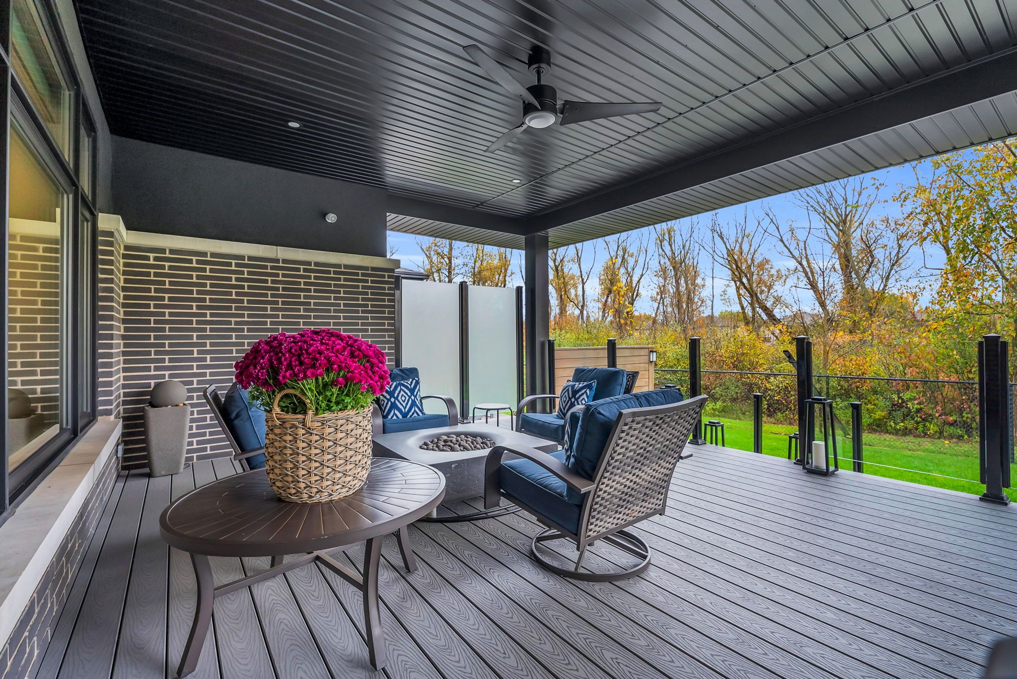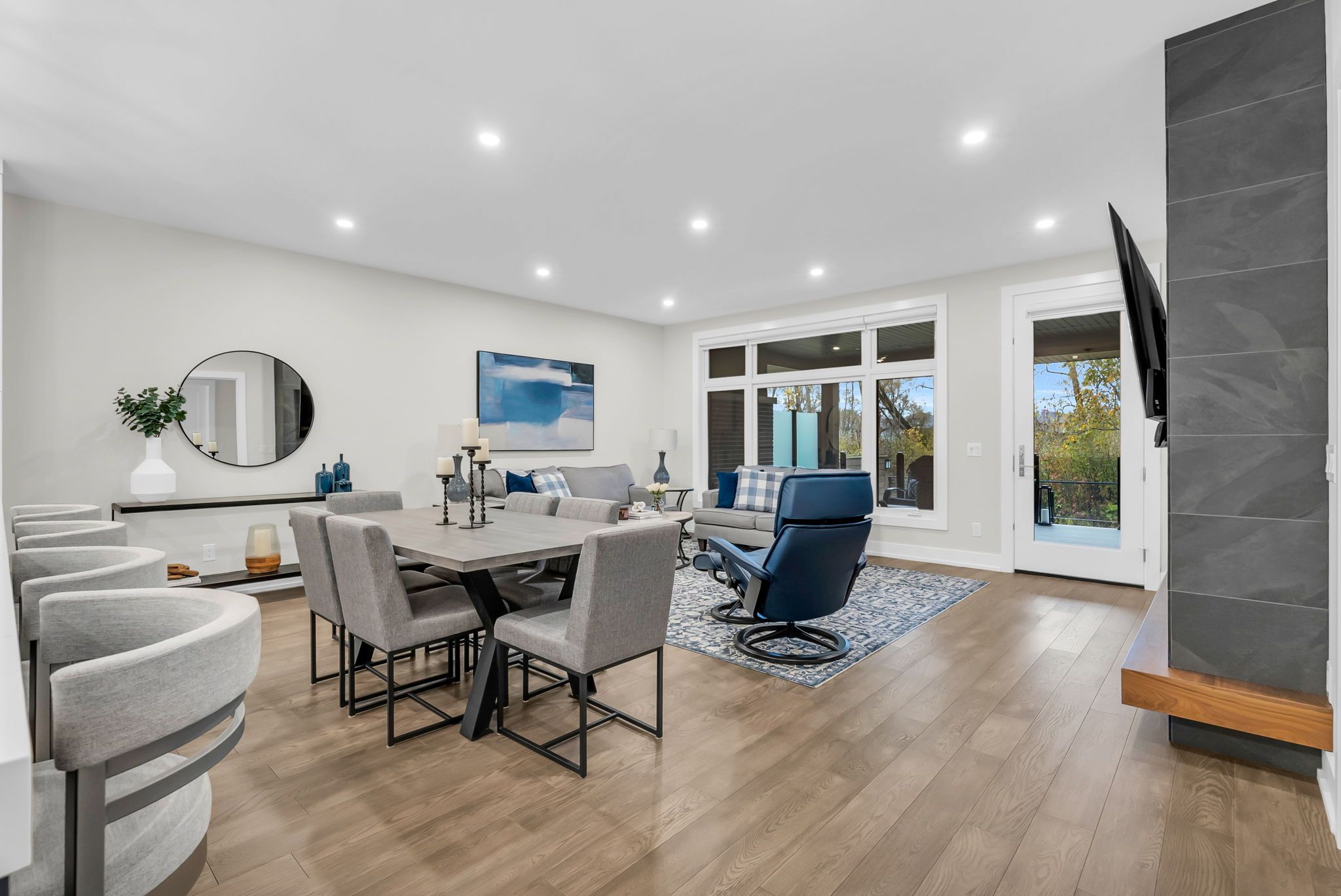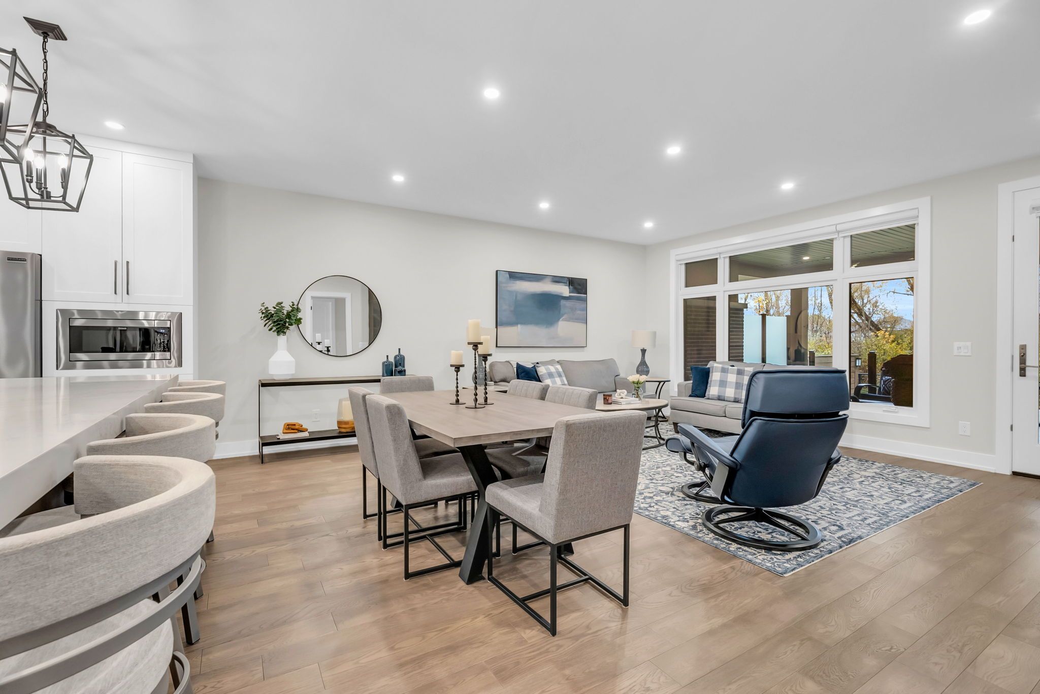 Welcome to this award-winning, rinaldi-built luxury end-unit bungalow townhome, nestled in an exclusive community surrounded by protected green space. Only 4 years old, this home shows like new and features over $100,000 in premium upgrades. The main floor boasts 9' ceilings and includes 2 bedrooms, a fully upgraded kitchen with a stunning 10' island, and a spacious family room highlighted by a custom linear fireplace. The primary bedroom offers a walk-in closet and a luxurious ensuite with designer finishes. The finished basement impresses with 8' ceilings, an expansive recreation room, a full bathroom, and a large bedroom, providing ample space for guests or family. Additional upgrades include motorized window coverings, extensive pot lighting, and upgraded cabinetry and countertops throughout. Step outside to enjoy the morning sunrise from the 16' x 20' trex deck or the lower patio, both overlooking a premium lot backing onto protected woodland-the perfect setting for peace and privacy. Experience ultimate 'lock and leave' lifestyle in this elegant bungalow townhome that is located minutes to all amenities. Forget exterior chores-the low maintenance fee covers your sprinkler system, grass cutting, snow removal. Enjoy sophisticated modern living with four key amenity rough-ins already complete: a central vacuum system, gas stove, an elegant wet bar for effortless entertaining, and an electric vehicle (ev) charger in the garage. These spaces are professionally prepared for immediate installation and personalization.