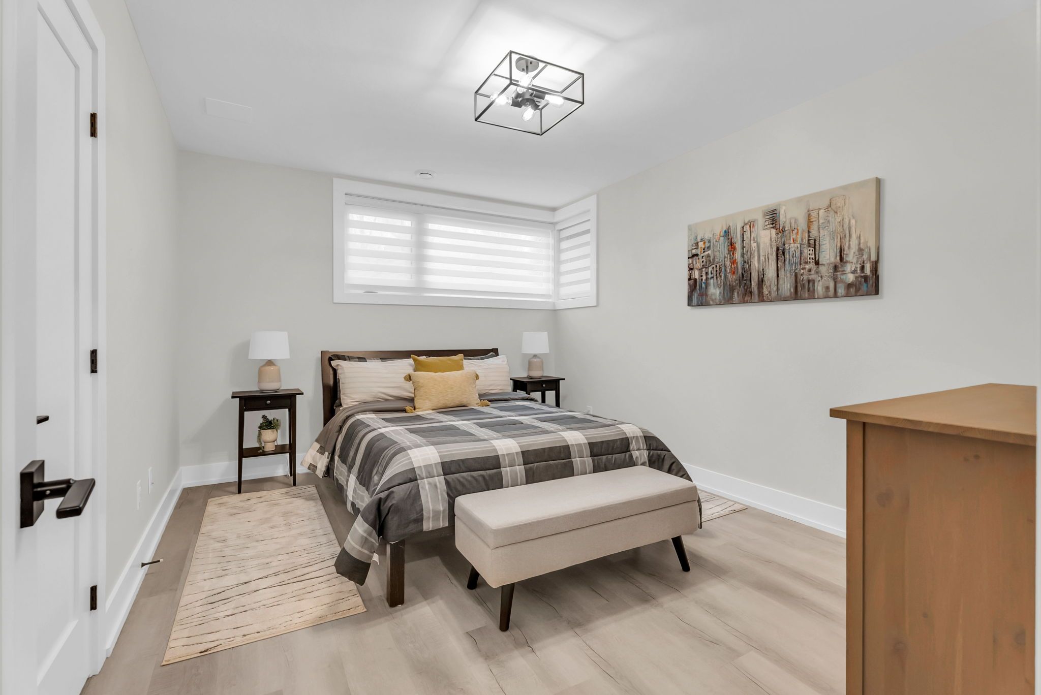 • Finished basement includes a recreation room, additional bedroom, and full bathroom.