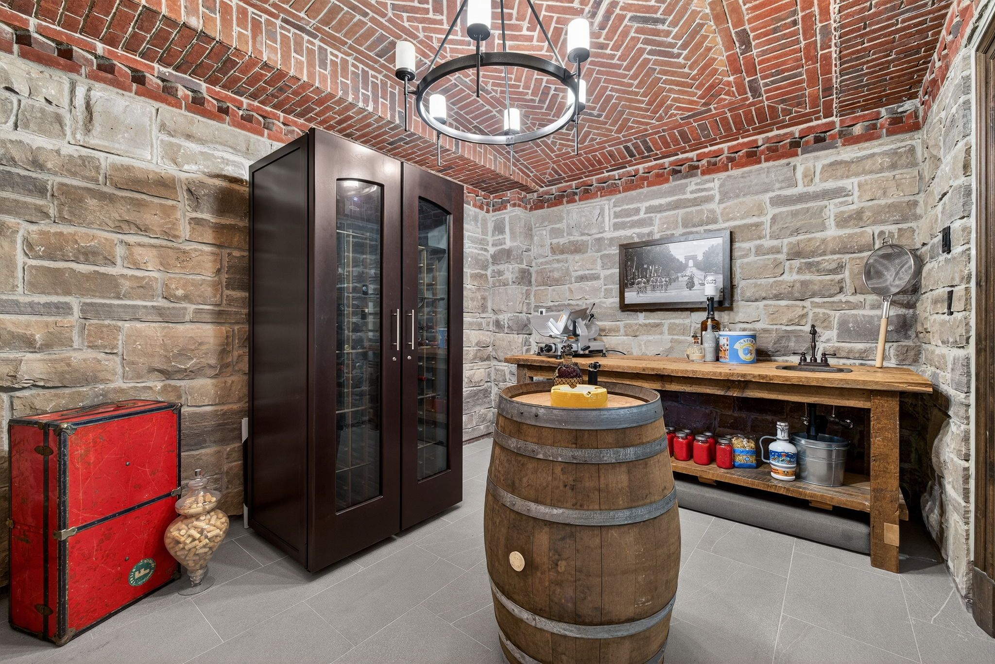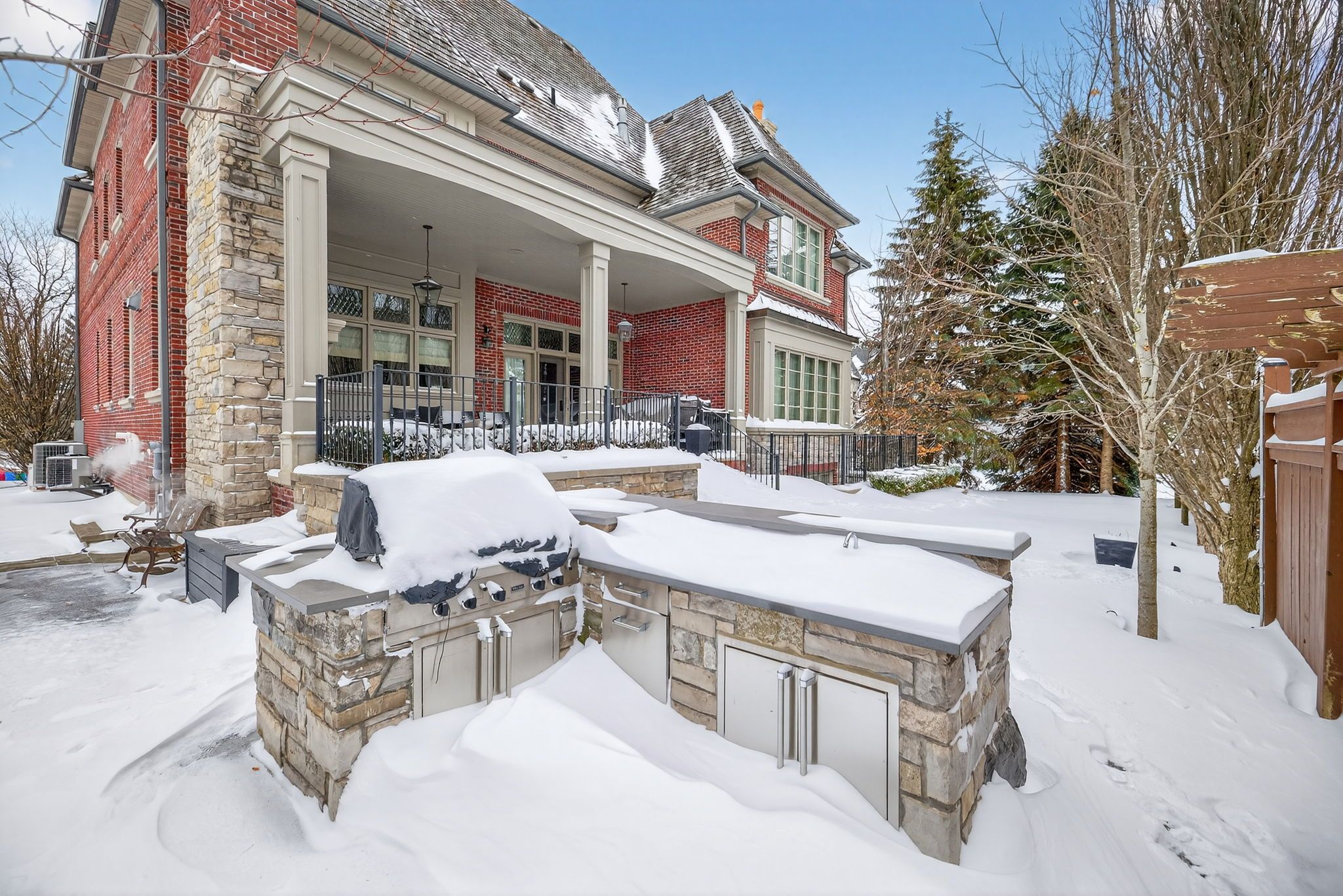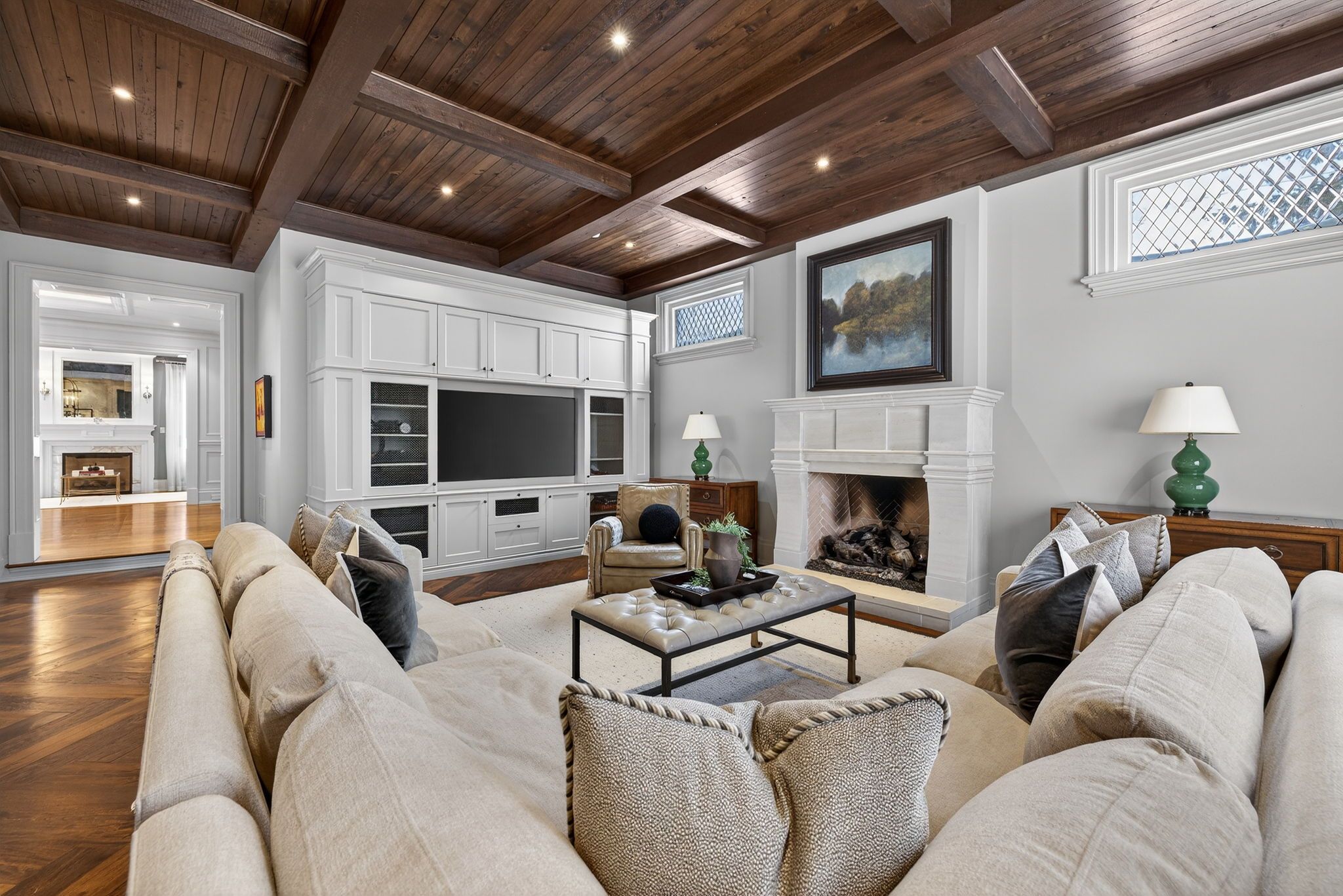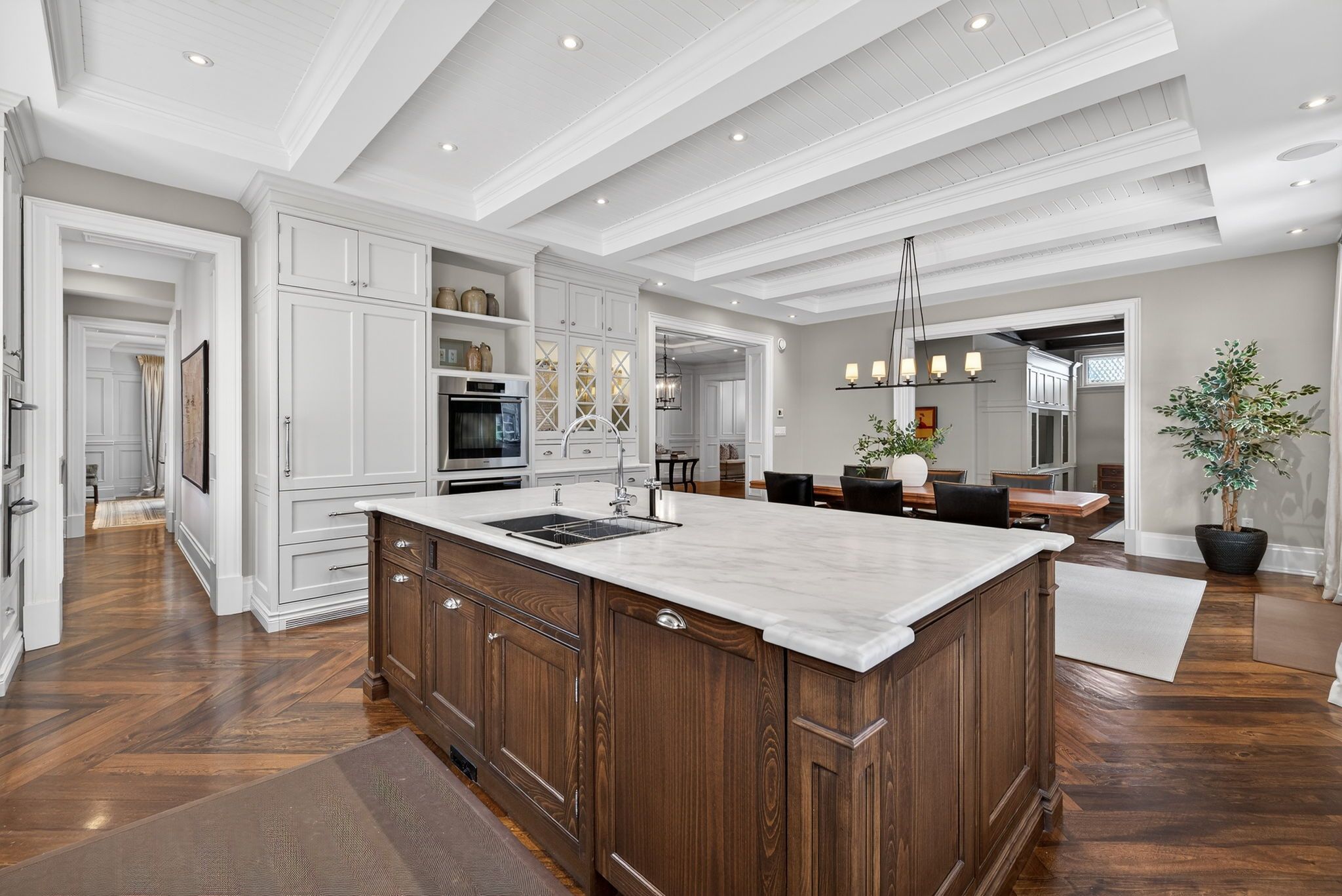 Stunning residence defines luxury through substance & timeless integrity. Architectural masterpiece designed by hcd & featured in luxury magazines. Hand-laid natural stone & red brick facade crowned by a premium cedar shingle roof. No detail spared: heated concrete driveway/walkways & many interior floors. Inside, discover "true" wood millwork paneling & soaring coffered/vaulted ceilings. Sunken family rm features exposed wood beams & herringbone hardwoods. Executive mahogany den w/ built-in library. Chef's kitchen boasts barn-board hardwoods, high-end integrated appliances & butler's servery with marble surfaces. Walk out to a covered terrace for al fresco hosting. Upper-level leads to all bedrooms w/ private ensuites, walk-in closets & unique ceilings. Rare brick-barrel wine cellar, gym & rec room w/ fireplace. Solid core doors & substantial wood trim throughout. Award-winning schools w/ proximity to hwys, transit & all amenities. A meticulously maintained home of rare permanence!