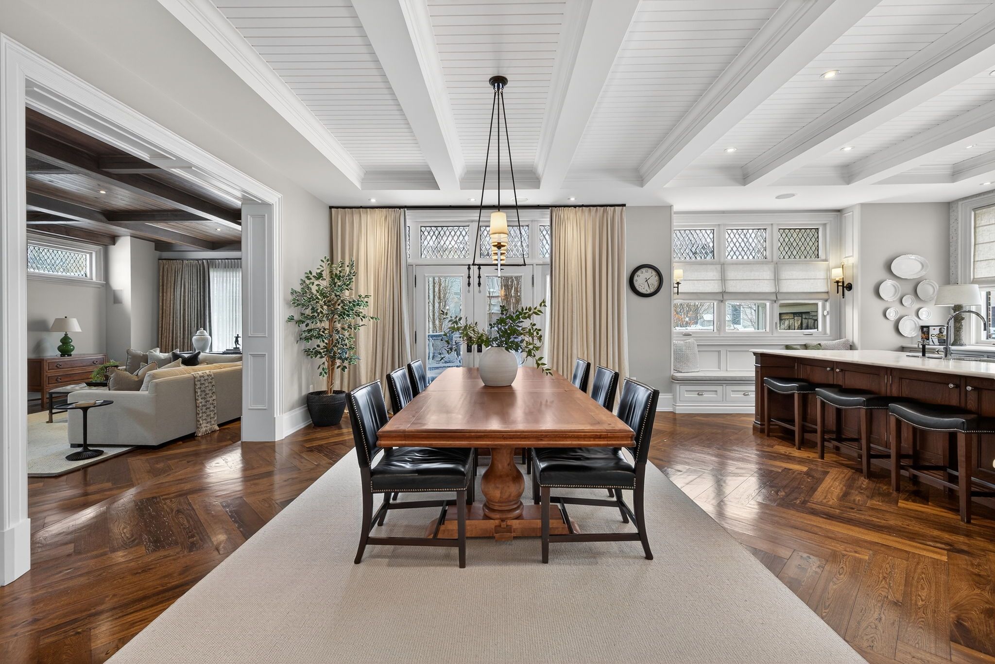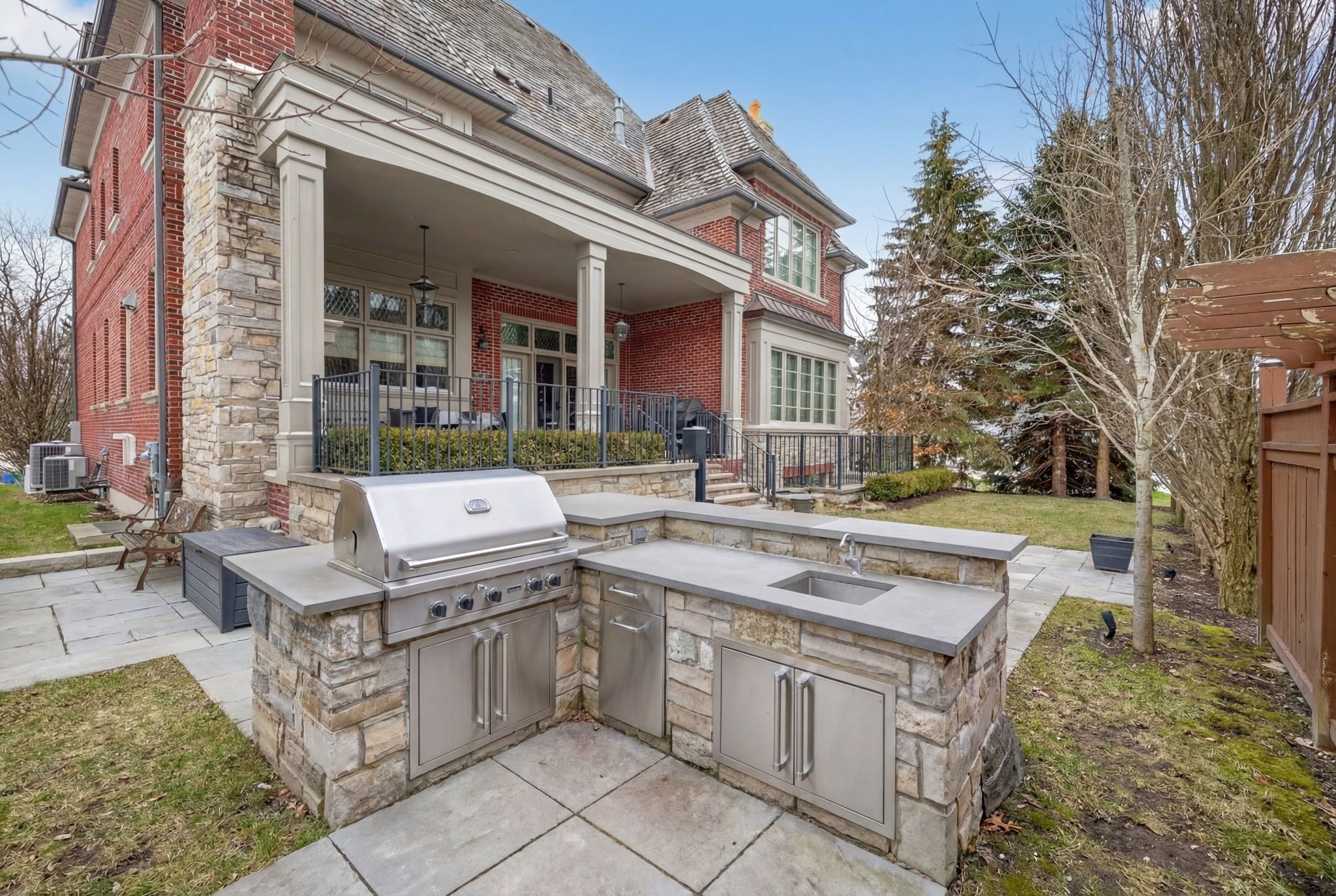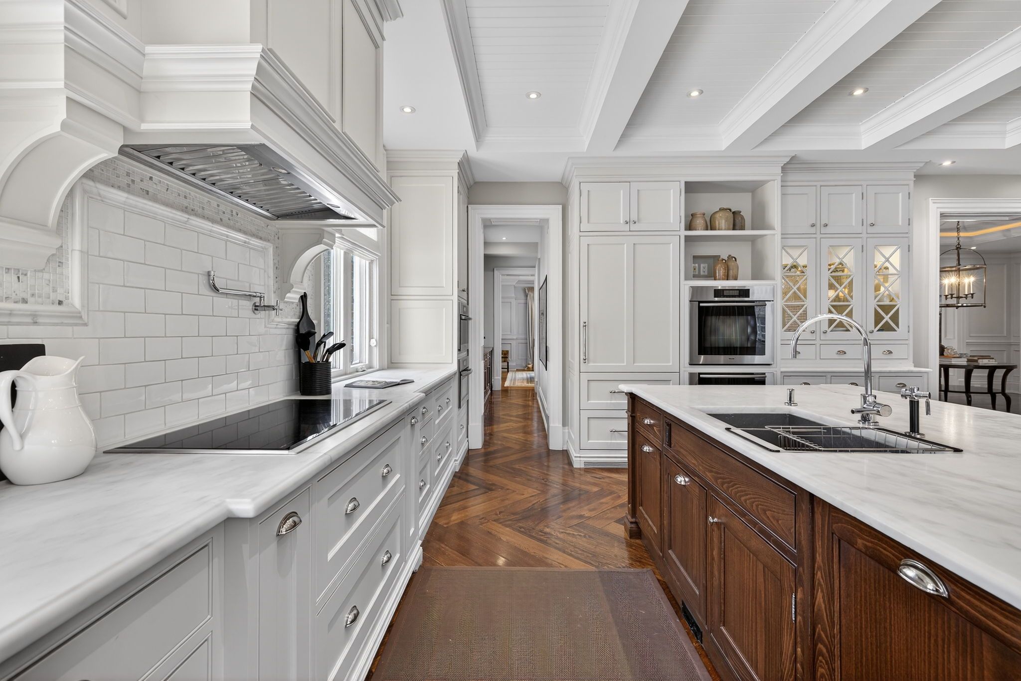 Stunning residence defines luxury through substance & timeless integrity. Architectural masterpiece designed by hcd & featured in luxury magazines. Hand-laid natural stone & red brick facade crowned by a premium cedar shingle roof. No detail spared: heated concrete driveway/walkways & many interior floors. Inside, discover "true" wood millwork paneling & soaring coffered/vaulted ceilings. Sunken family rm features exposed wood beams & herringbone hardwoods. Executive mahogany den w/ built-in library. Chef's kitchen boasts barn-board hardwoods, high-end integrated appliances & butler's servery with marble surfaces. Walk out to a covered terrace for al fresco hosting. Upper-level leads to all bedrooms w/ private ensuites, walk-in closets & unique ceilings. Rare brick-barrel wine cellar, gym & rec room w/ fireplace. Solid core doors & substantial wood trim throughout. Award-winning schools w/ proximity to hwys, transit & all amenities. A meticulously maintained home of rare permanence!