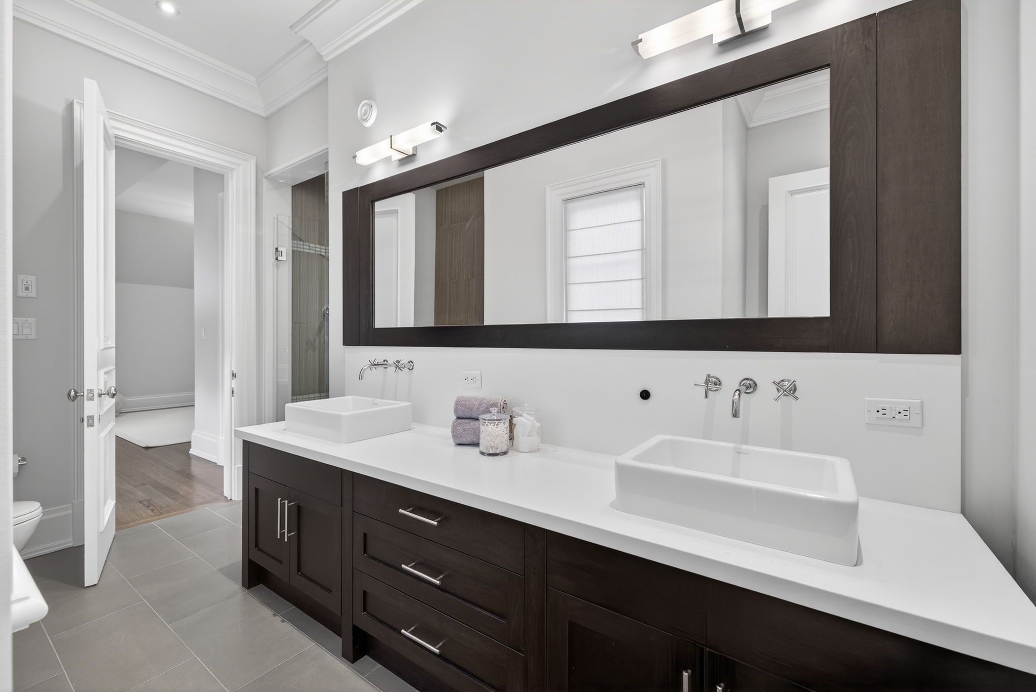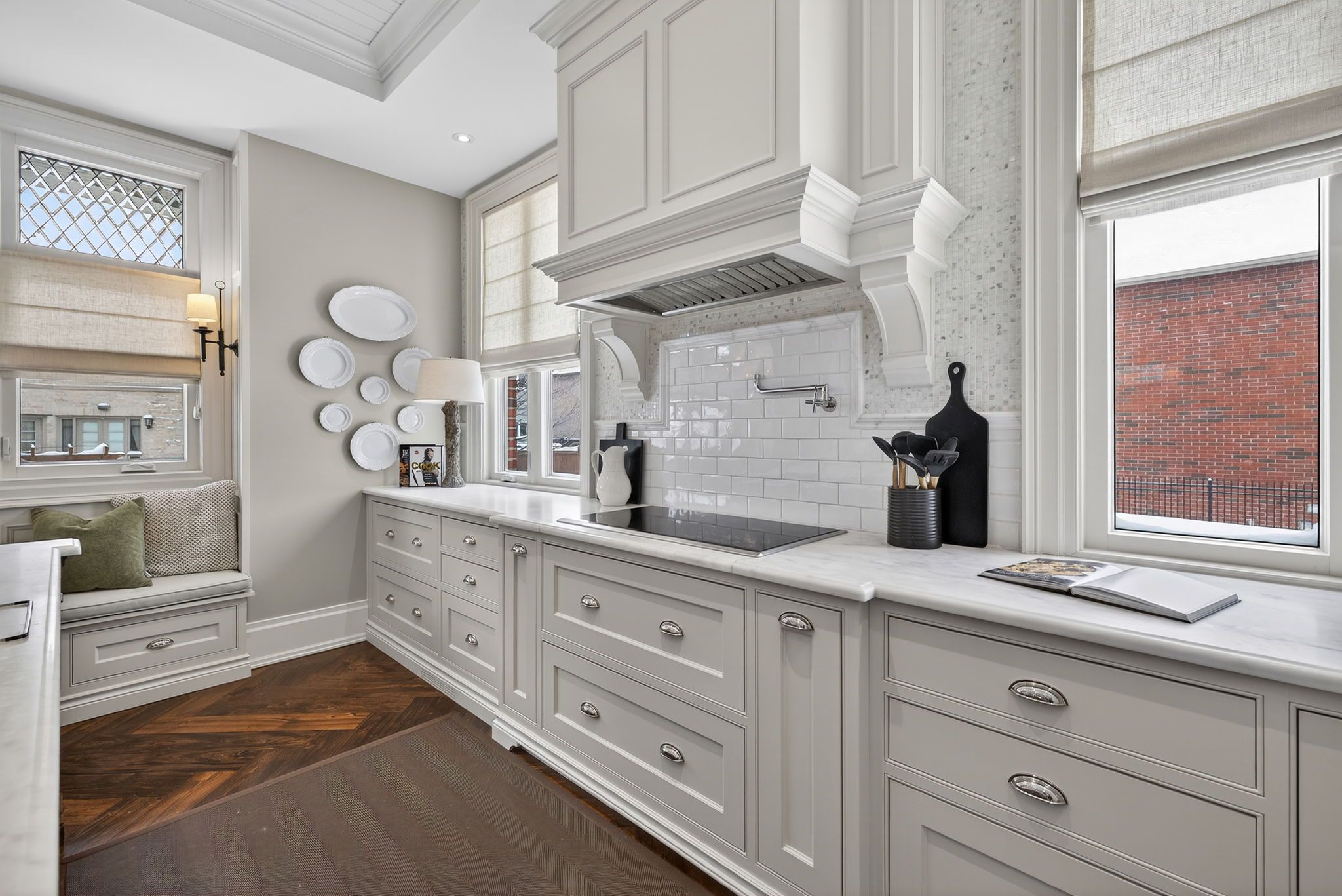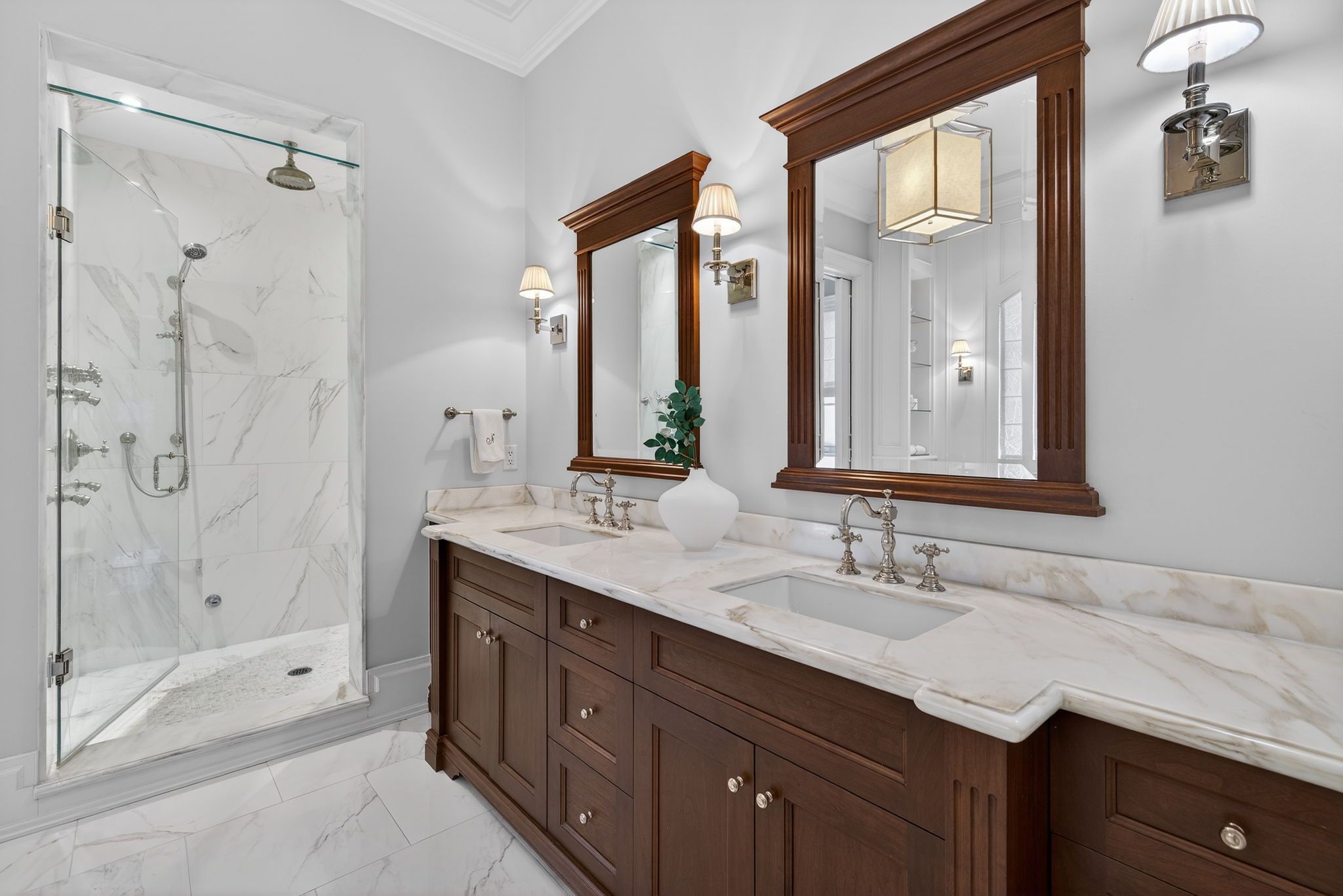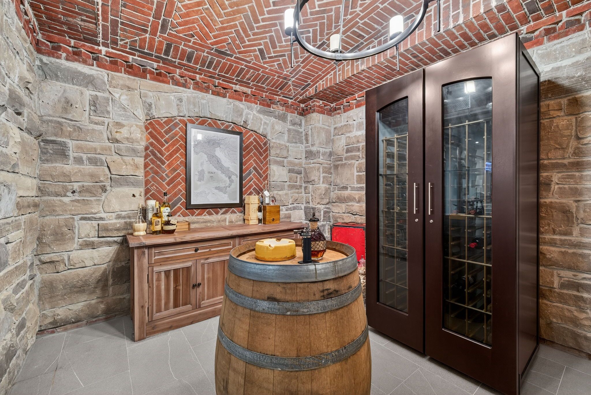 Stunning residence defines luxury through substance & timeless integrity. Architectural masterpiece designed by hcd & featured in luxury magazines. Hand-laid natural stone & red brick facade crowned by a premium cedar shingle roof. No detail spared: heated concrete driveway/walkways & many interior floors. Inside, discover "true" wood millwork paneling & soaring coffered/vaulted ceilings. Sunken family rm features exposed wood beams & herringbone hardwoods. Executive mahogany den w/ built-in library. Chef's kitchen boasts barn-board hardwoods, high-end integrated appliances & butler's servery with marble surfaces. Walk out to a covered terrace for al fresco hosting. Upper-level leads to all bedrooms w/ private ensuites, walk-in closets & unique ceilings. Rare brick-barrel wine cellar, gym & rec room w/ fireplace. Solid core doors & substantial wood trim throughout. Award-winning schools w/ proximity to hwys, transit & all amenities. A meticulously maintained home of rare permanence!