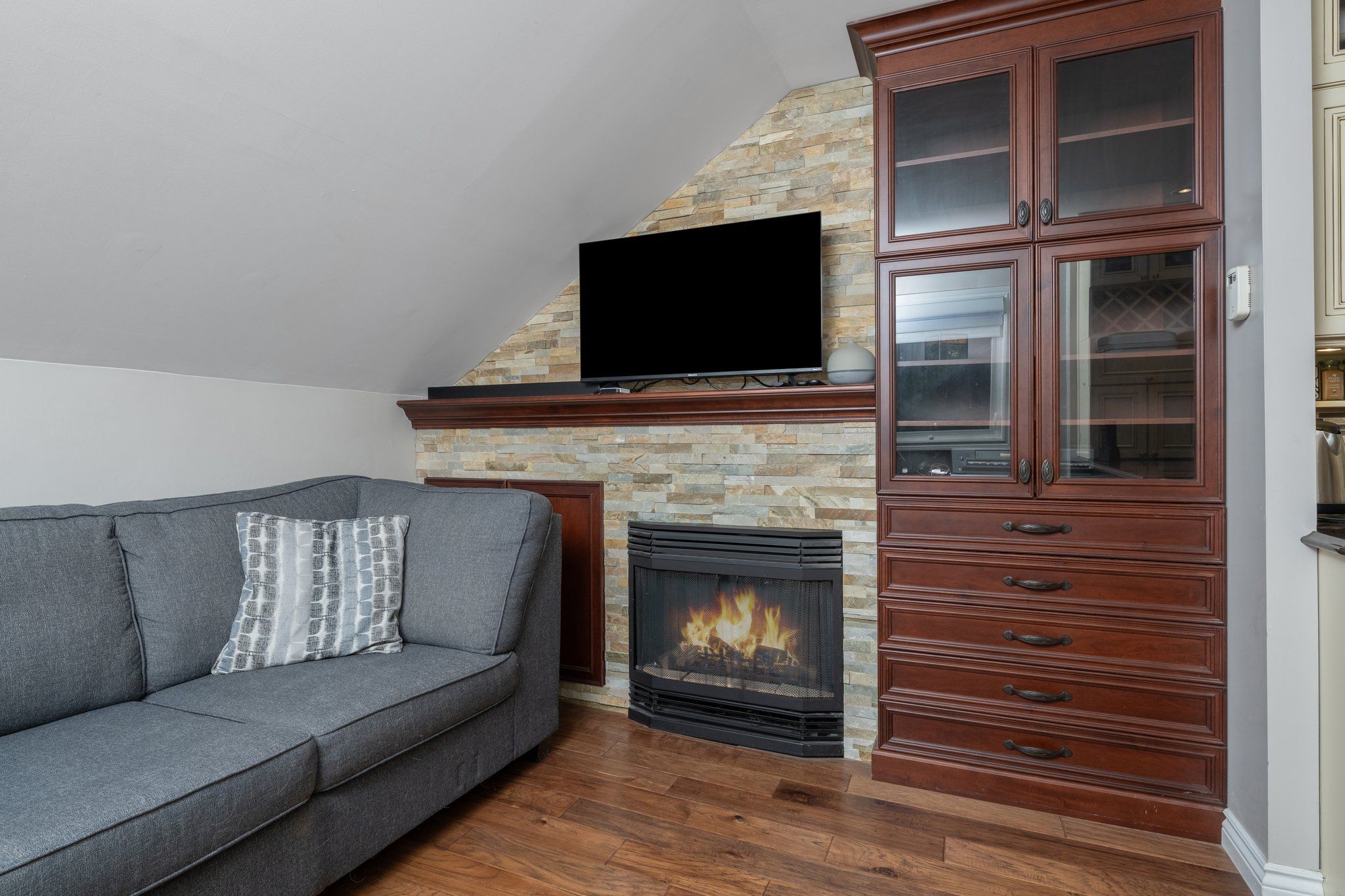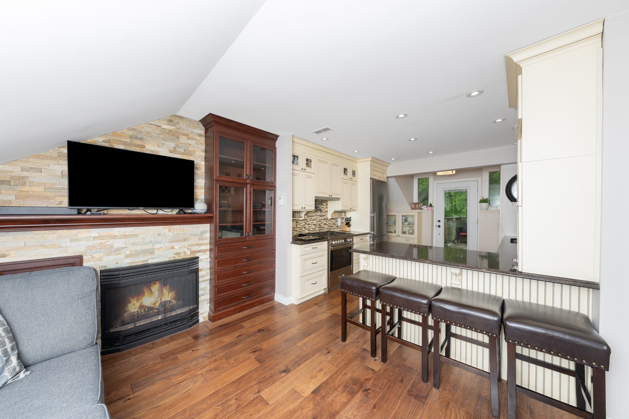 • Two-bedroom residential apartment with a private deck offers rental income potential.