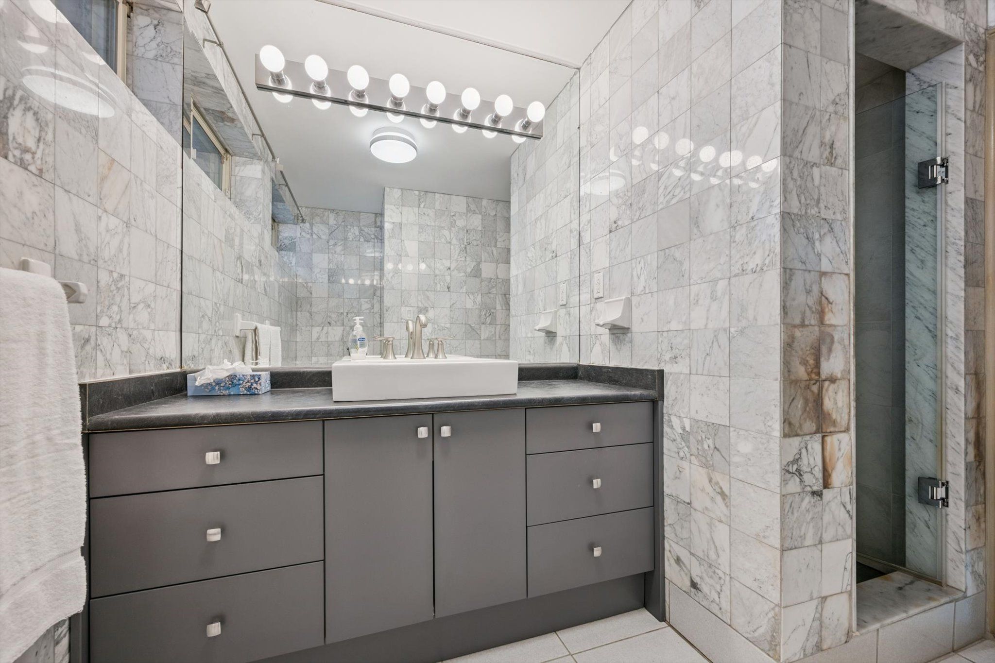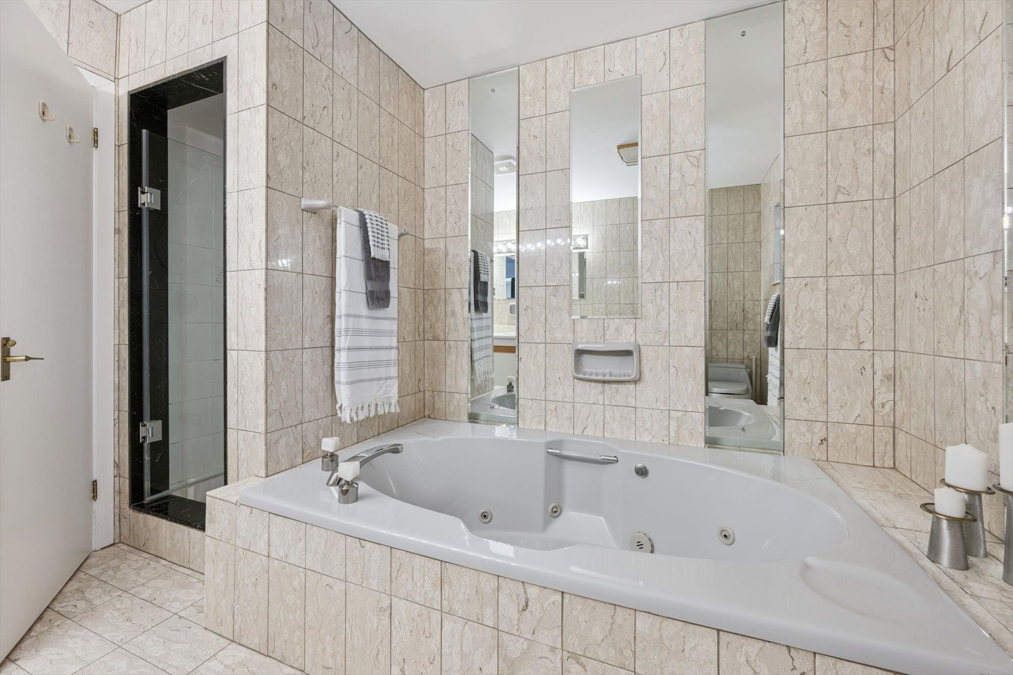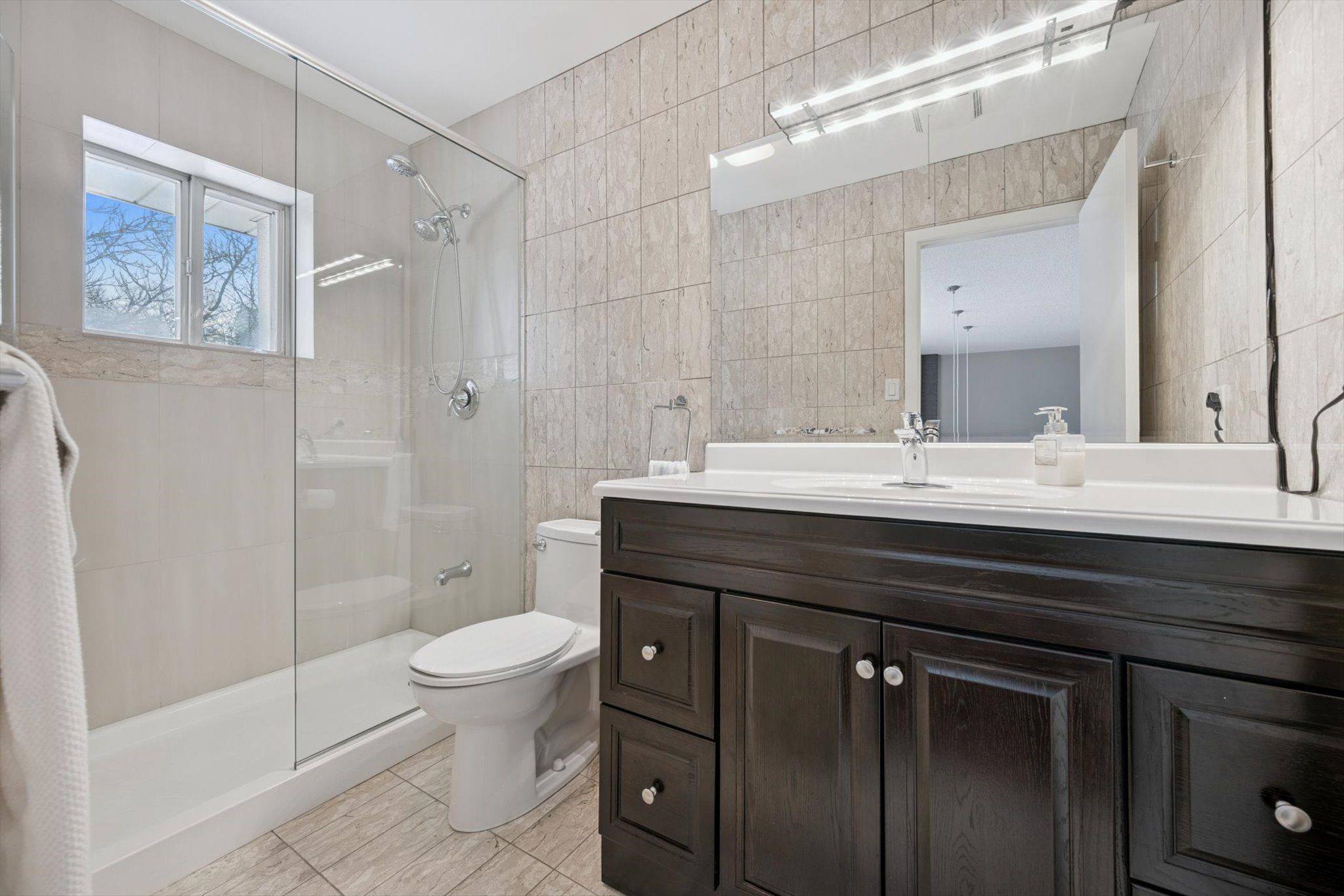 • Five spacious bedrooms with hardwood and marble flooring throughout.
