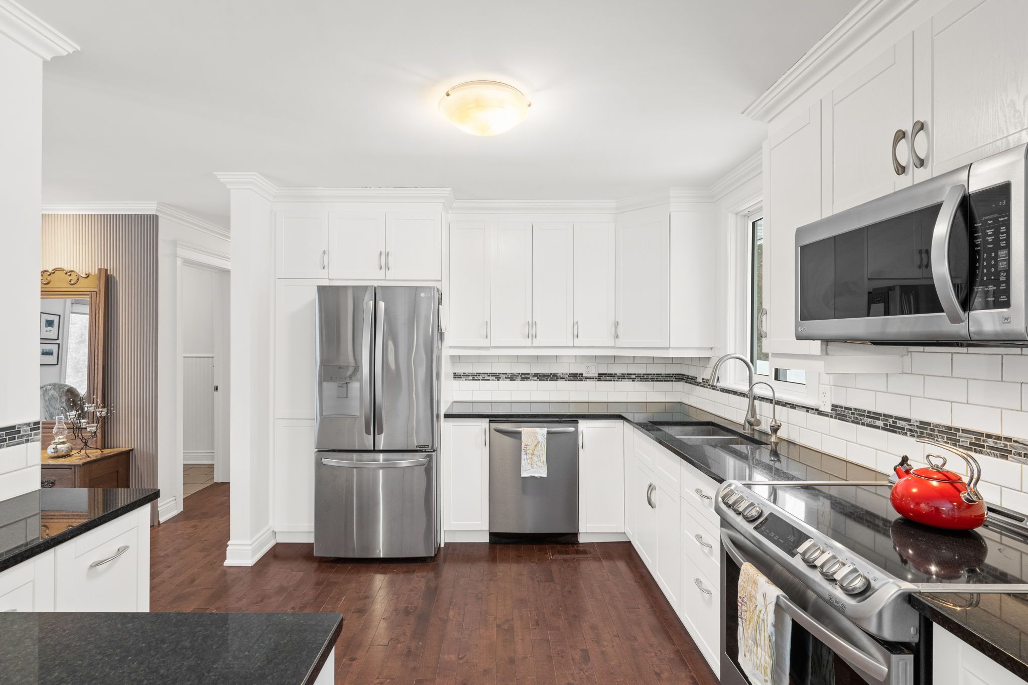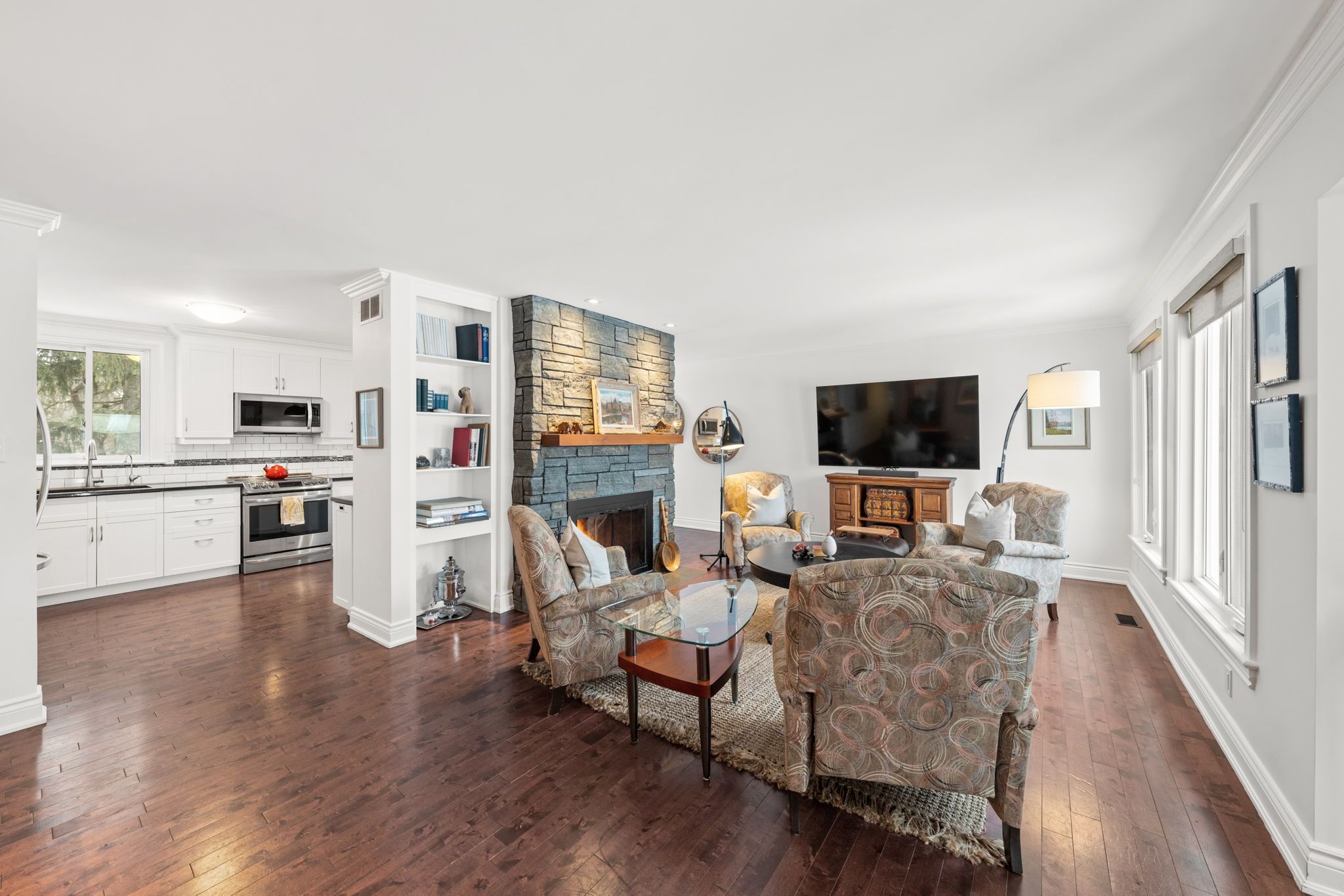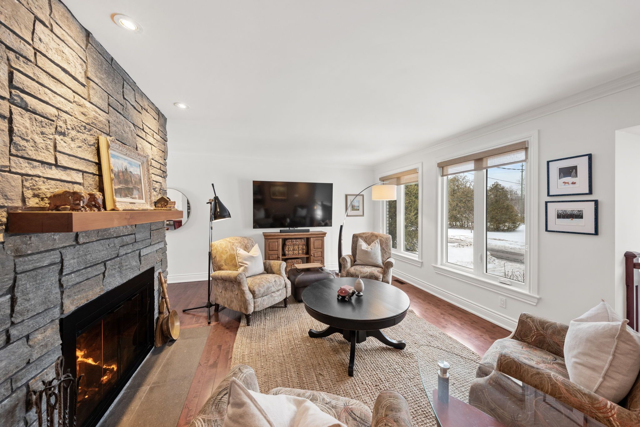 Open house on sunday march 1, 2-4 pm. Welcome to this exceptional 3+1 bdrm, 2. 5-bath home situated between manotick & barrhaven on a highly sought-after, low-turnover street known for its strong sense of neighbourhood pride! Set on an impressive 110' x 135' mature lot and just moments from the rideau river, rideau valley conservation area, parklands and scenic trails, this property offers ~2476 sq. Ft. Of living space on all levels. The welcoming foyer features heated tile floors, character railings, and a charming window seat. The open concept main lvl showcases hardwood floors, a bright living rm anchored by a stone-surround wood-burning fp (wett certified in 2020), built-in shelving, and a functional kitchen with black granite counters, white shaker cabinetry, ss appliances, breakfast bar, and adjoining dining area with sliding doors to the deck. The primary bdrm offers a walk-in closet and ensuite, while two additional bdrms and a powder room complete the main level. The fully renovated (2019) walkout ll is a showstopper, with engineered hardwood, ceiling detail with pot lights, surround sound ceiling speakers, and a spacious rec room designed for entertaining. A wet bar with cherry wood counters and beverage centre is fully plumbed for future kitchenette potential. The vaulted sunroom, currently used as an exercise room, provides walkout access to the backyard, while a modern 3-pc bath with rain shower and a laundry room both with heated floors add comfort. Separate sitting room with propane gas fp offers flexibility as a fourth bdrm, guest space, or in-law suite. The south facing fully-fenced backyard retreat is framed by mature trees and cedar hedges and features a two-tiered deck, hot tub, fire pit, parkour play structure, and expansive green space, making it the perfect family home for entertaining and everyday enjoyment. A secondary driveway is located on far side of property. A rare opportunity to own a truly one-of-a-kind property you won't want to miss!