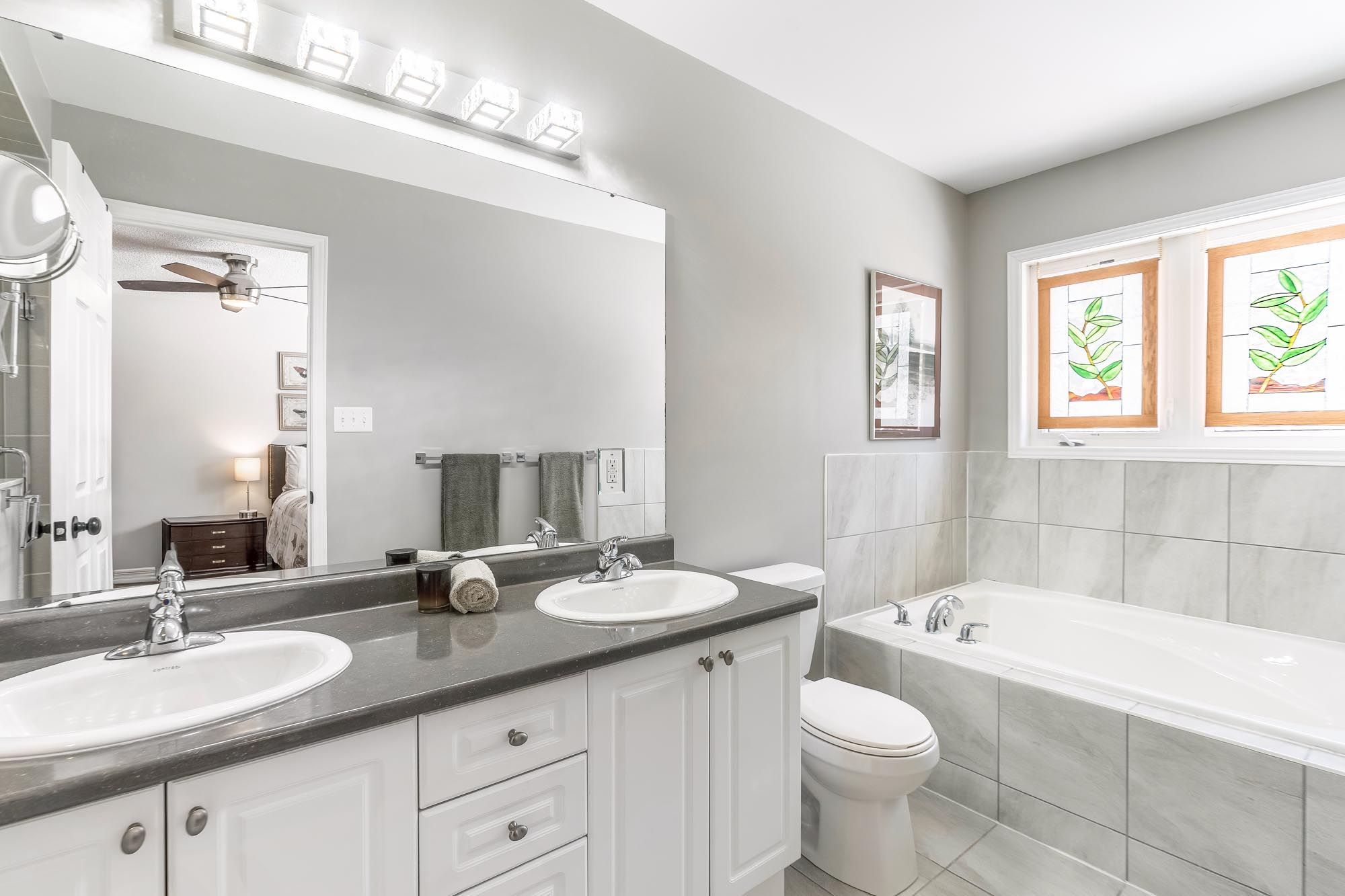 • Generous primary bedroom with walk-in closet and private ensuite bathroom.