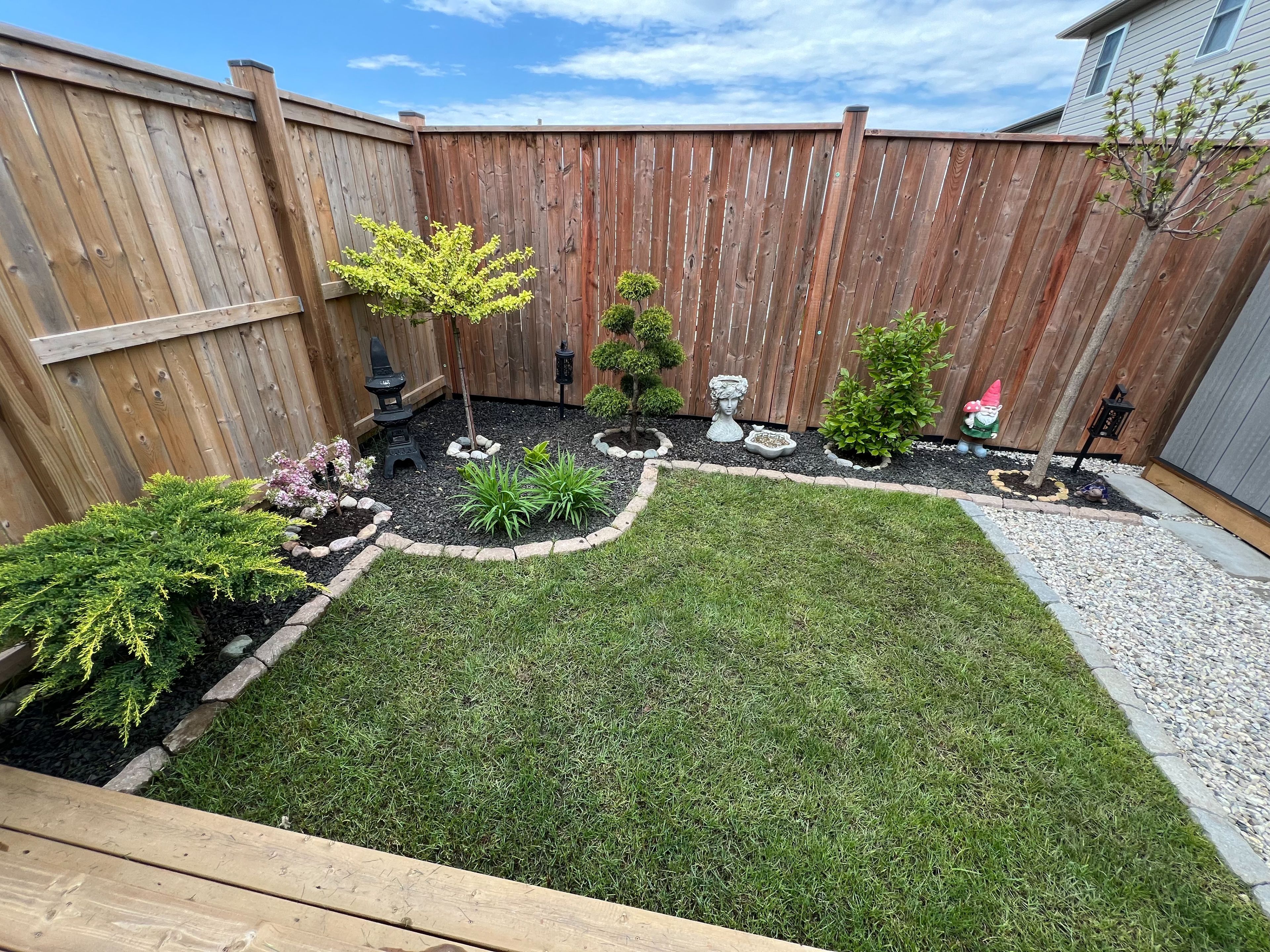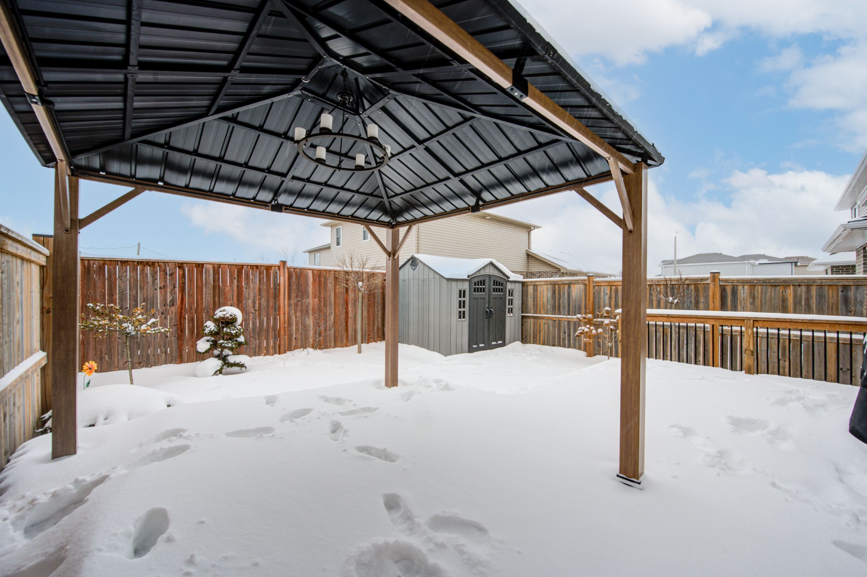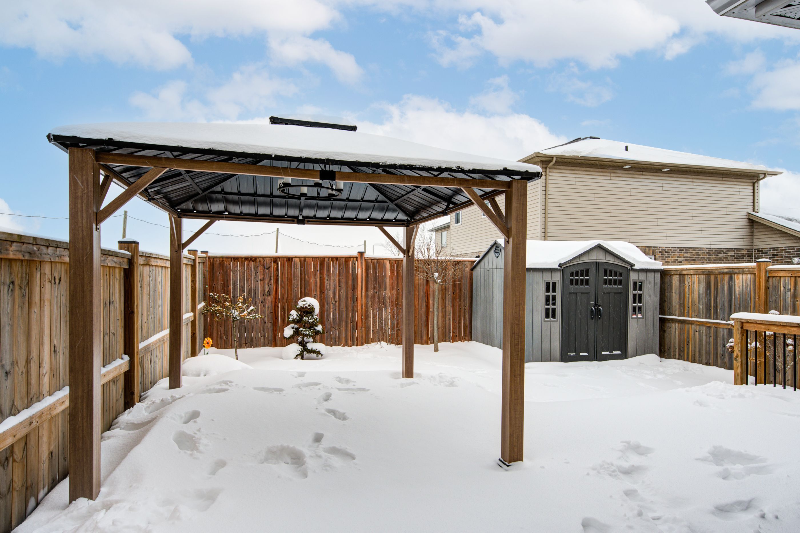 • Large fenced backyard with a deck and gazebo, perfect for relaxing.