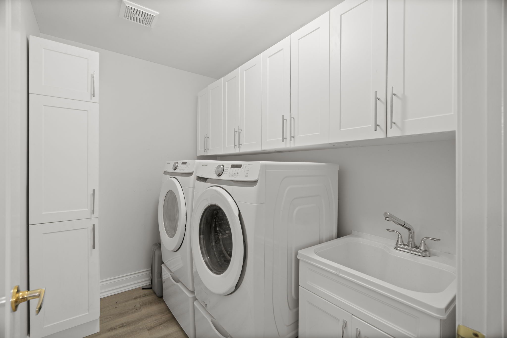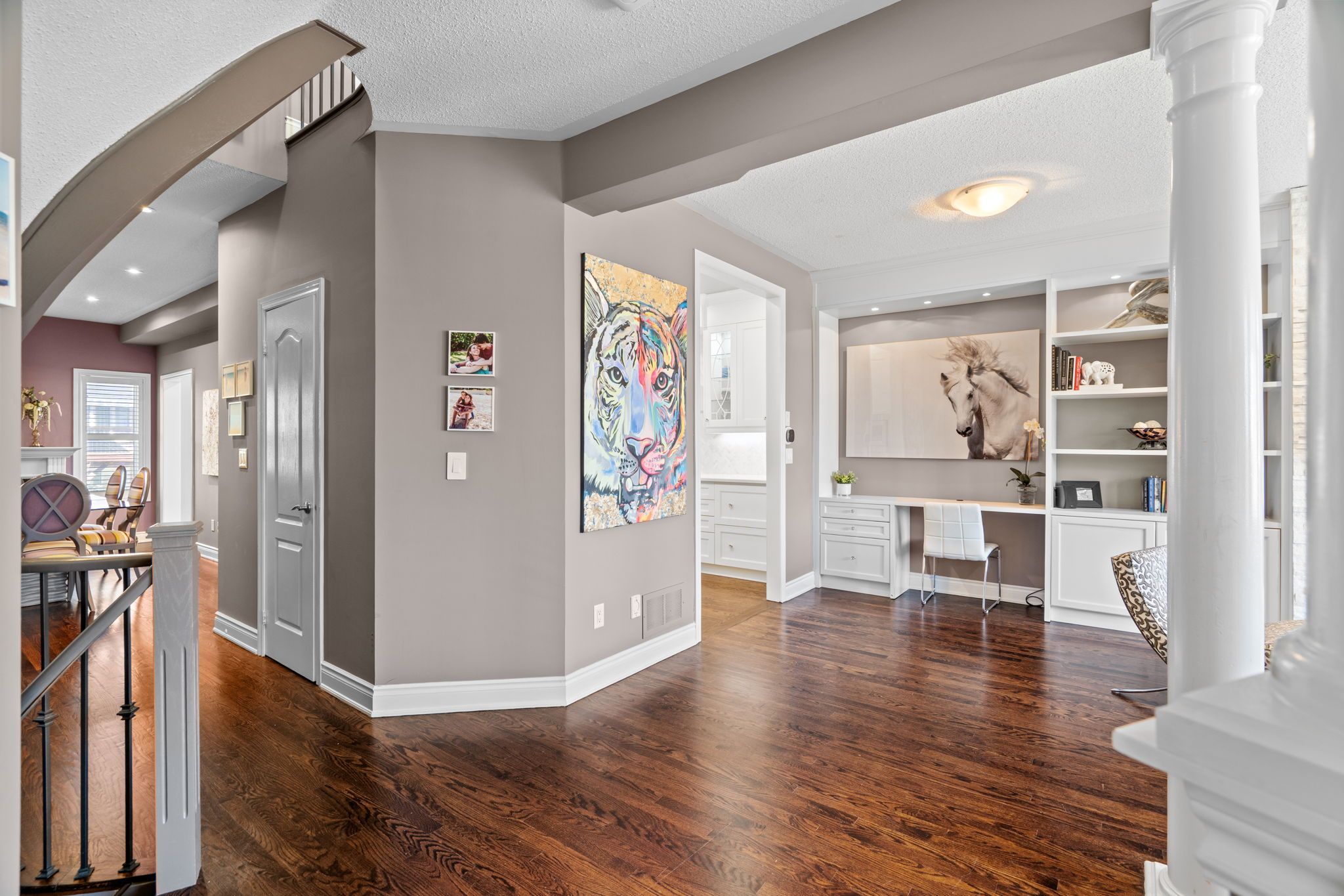The one you've been waiting for! Completely renovated and move-in ready, this stunning townhome offers over 2,000 sq. Ft. Above grade of luxurious living space. A rare double-car garage sets the tone for this exceptional home. The custom kitchen (2022) is a chef's dream, featuring state-of-the-art appliances, sleek finishes, ample storage space, and a large breakfast area with a walk-out to deck/bbq. The open-concept great room is perfect for entertaining, showcasing wall-to-wall built-ins,a built-in desk area and a striking floor-to-ceiling stone-mantle fireplace. Upstairs, the primary suite impresses with an oversized walk-in closet and a lavish 5-piece ensuite (2022) complete with his and her vanity, deep soaker tub, separate shower enclosure and toto toilet. Additional bedrooms provide comfort and versatility for the whole family. The finished lower level (2021) offers a cozy recreation space, a convenient 3-piece bath, garage access and direct walkout to a fully fenced backyard. Located just steps to shopping centres, restaurants, top-rated schools and public transit, this home combines style, function, and location in one perfect package.