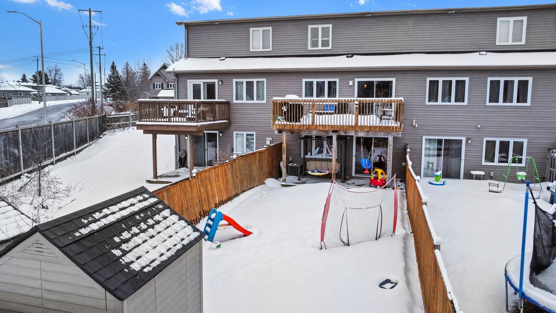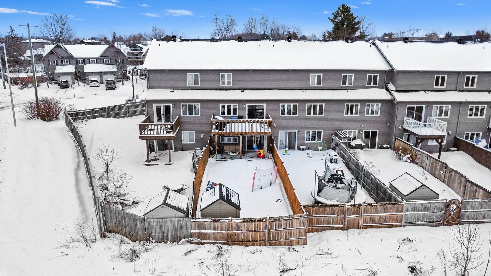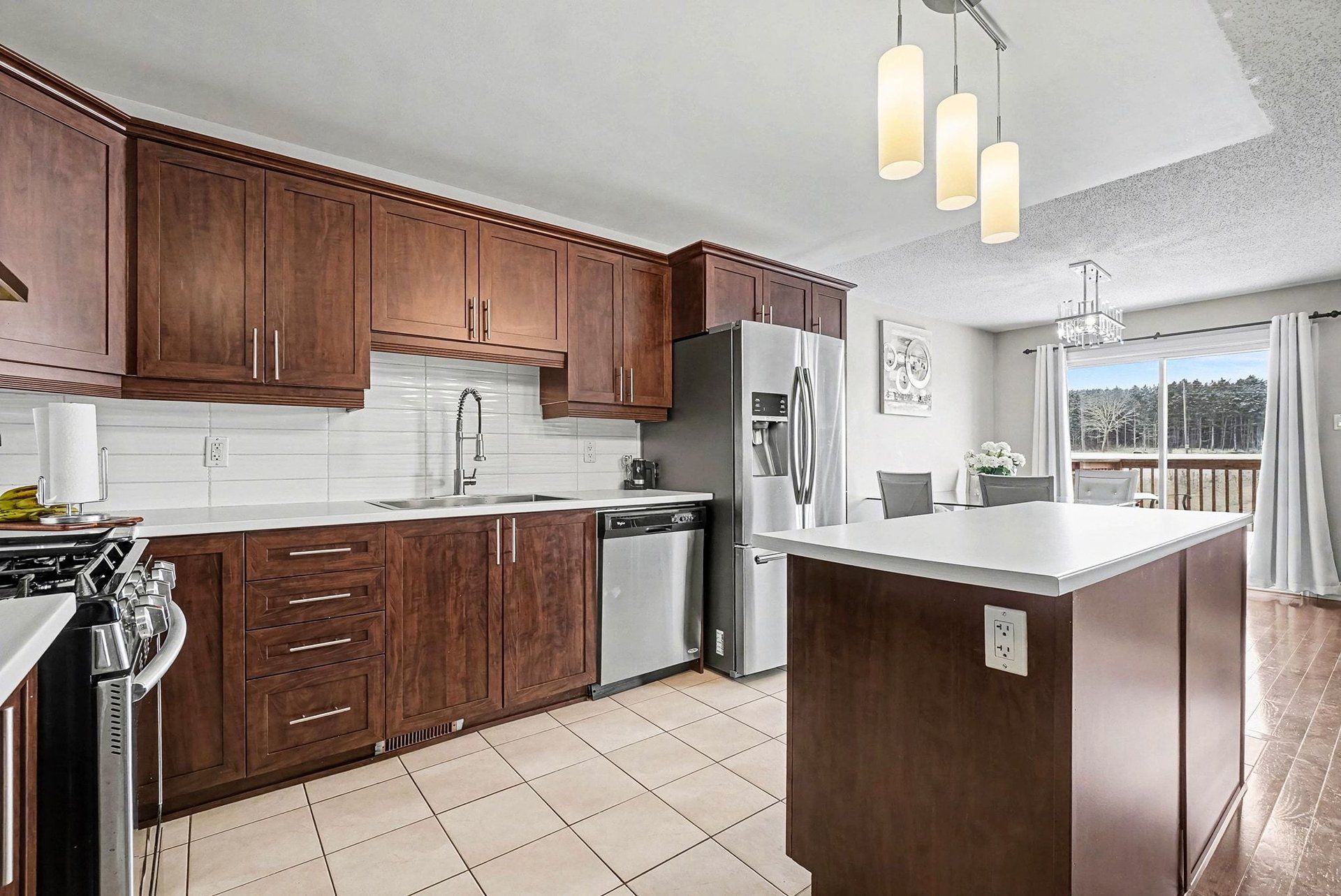 Welcome to 28 nathalie street, a beautifully maintained townhome located on a quiet cul-de-sac, offering exceptional privacy with no rear neighbours and a desirable walkout lower level. This home showcases true pride of ownership and features a modern, functional layout. The main level offers a spacious foyer leading into a bright, open-concept living and dining area with gleaming hardwood floors and large windows that fill the space with natural light. The kitchen is perfect for both everyday living and entertaining, featuring stainless steel appliances, rich cabinetry, a stylish backsplash, and an oversized island overlooking the main living space. Updated light fixtures in 2023 add a fresh, modern touch. A patio door off the dining room leads to a generous upper-level deck, ideal for relaxing or hosting. A convenient powder room completes this level. Upstairs, you will find a large primary bedroom with a walk-in closet, along with two additional spacious bedrooms. A well-appointed 5-piece cheater ensuite featuring a separate shower, soaker tub, and double sinks completes the second floor. The fully finished lower level offers a large recreation room with a walkout patio door leading to the private, fully fenced backyard with no rear neighbours. This level also includes a laundry area and a bathroom completed in 2019. The basement was fully repainted in march 2026, giving the space a fresh and updated feel. With inside access to the single-car garage and situated on an extremely quiet street, this home is just a short drive to highway 17 and only 15 to 20 minutes to orléans. Close to schools, parks, shopping, restaurants, and everyday amenities, this home offers the perfect blend of comfort, style, and convenience. Book your showing today. This home shows beautifully and is move-in ready!
