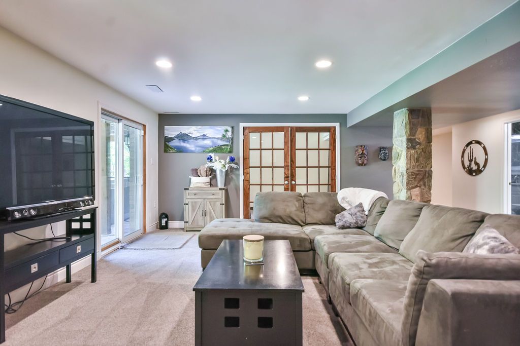 • Comfortable lower level with family room, fireplace, and hot tub access.