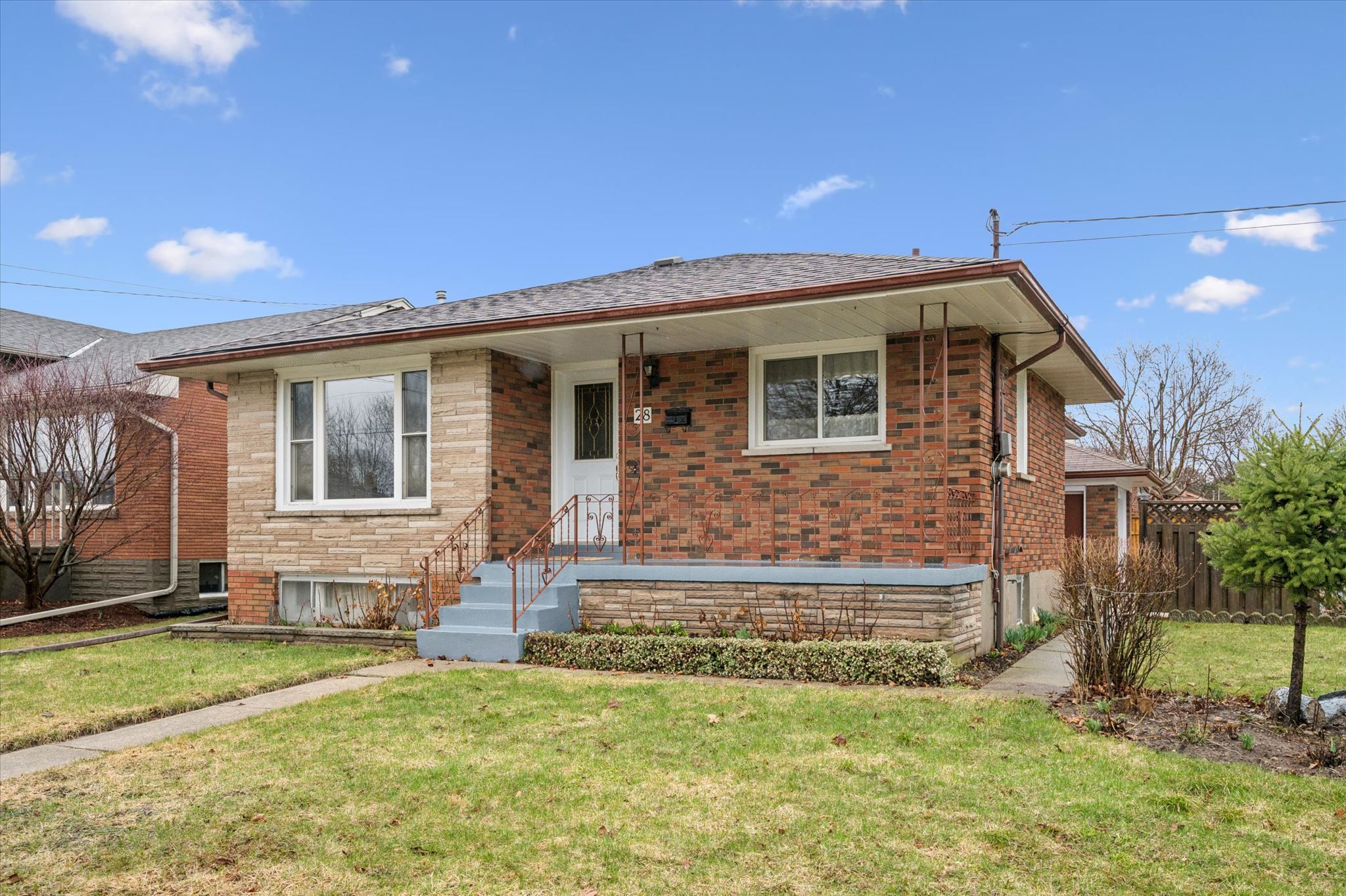 Welcome to 28 normandy drive, a solid brick bungalow that has been proudly cared for by the same family for over 30 years. Set on a quiet street directly across from franchetto park, this home offers a warm and functional layout with green space right at your doorstep. The main floor features three well sized bedrooms, a bright living area, and original hardwood floors that add character and timeless appeal. A four piece bathroom serves the main level, while the layout flows easily into the kitchen and everyday living spaces. Downstairs, the finished basement expands your options with a spacious rec room, an additional bedroom that works well for guests or a home office, and a convenient powder room. Outside, enjoy a private yard perfect for relaxing or entertaining, along with a detached garage offering great storage or hobby space. A well loved home in a great neighbourhood, steps to the park and ready for its next chapter.