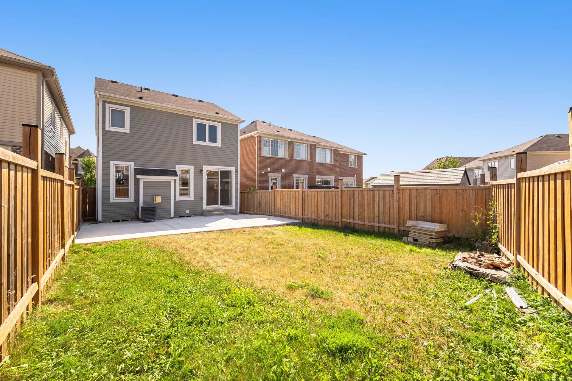 • Large backyard patio, perfect for outdoor gatherings and relaxation.