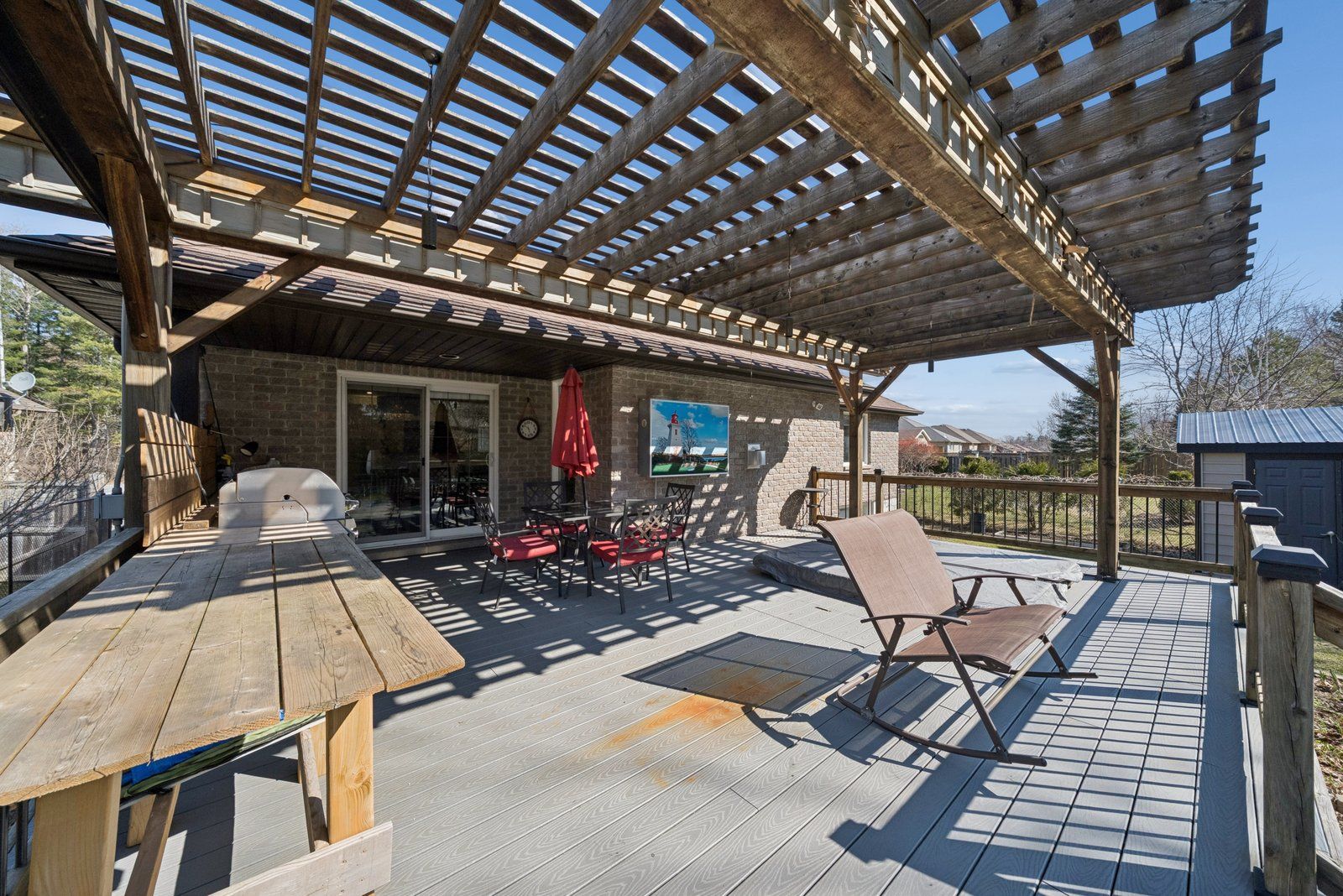 This absolutely stunning 1,790 sq ft bungalow, plus a finished basement, is located at the end of a quiet cul-de-sac in a desirable neighbourhood on the outskirts of trenton. It's just a short drive to cfb trenton & highway 401 - making it an excellent choice for those working with the canadian armed forces. This beautifully maintained home offers a bright open-concept layout with thoughtful upgrades throughout, creating a warm and inviting space perfect for everyday living and entertaining. The main level features a spacious living and dining area, a well-appointed eat-in kitchen, and two generously sized bedrooms including a primary retreat with a walk-in closet and 3-piece ensuite. The finished lower level adds living space with 2 additional bedrooms, a large recreation room, and ample storage space. Enjoy the private backyard oasis complete with a covered composite deck, hot tub, outdoor kitchen, and a cozy natural gas fireplace with an outdoor tv - perfect for entertaining year-round. Families will benefit from convenient school bus service, including routes for the pine ridge district school board, which adds to the home's everyday practicality. Whether you're a first-time buyer, a canadian armed forces member seeking a convenient commute, an avid angler, or someone looking to enjoy a peaceful retirement lifestyle, this property offers exceptional value in a sought-after location. Don't miss your opportunity to call this beautiful trenton home your own!