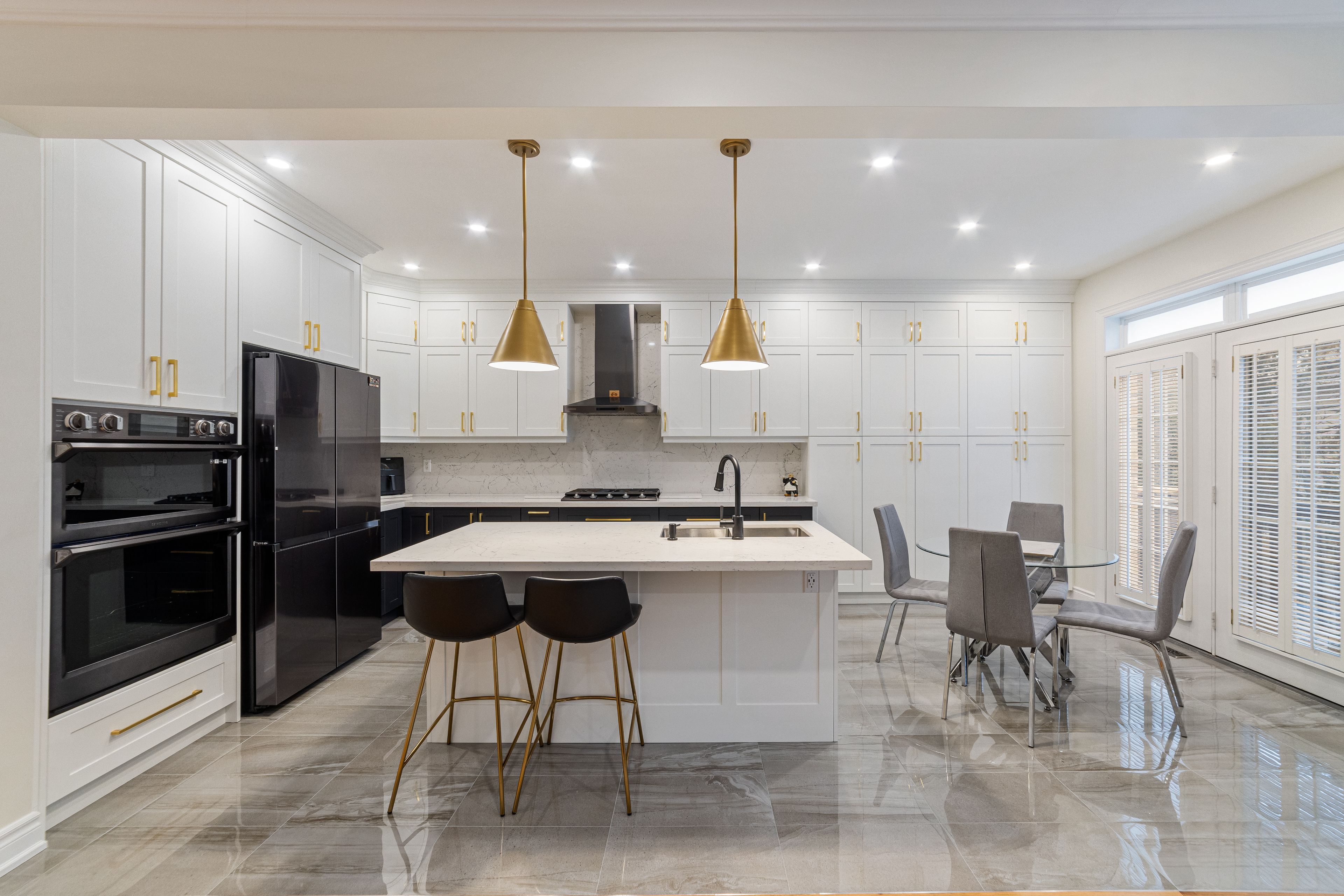 • Renovated gourmet kitchen with large island and high-end appliances.